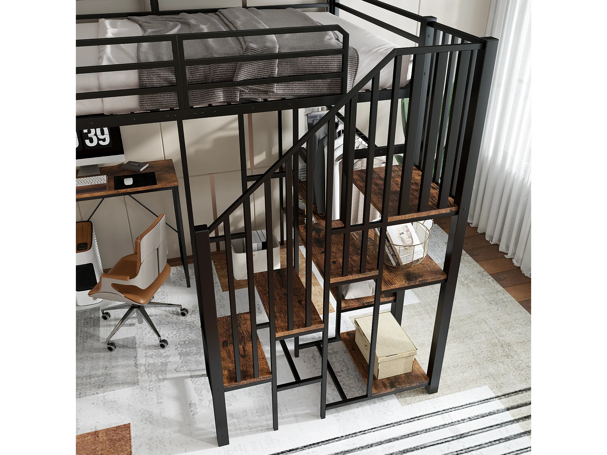 Lit superposé 120x200 cm combiné moderne avec coin bureau MDF et métal noir (Sans matelas)
