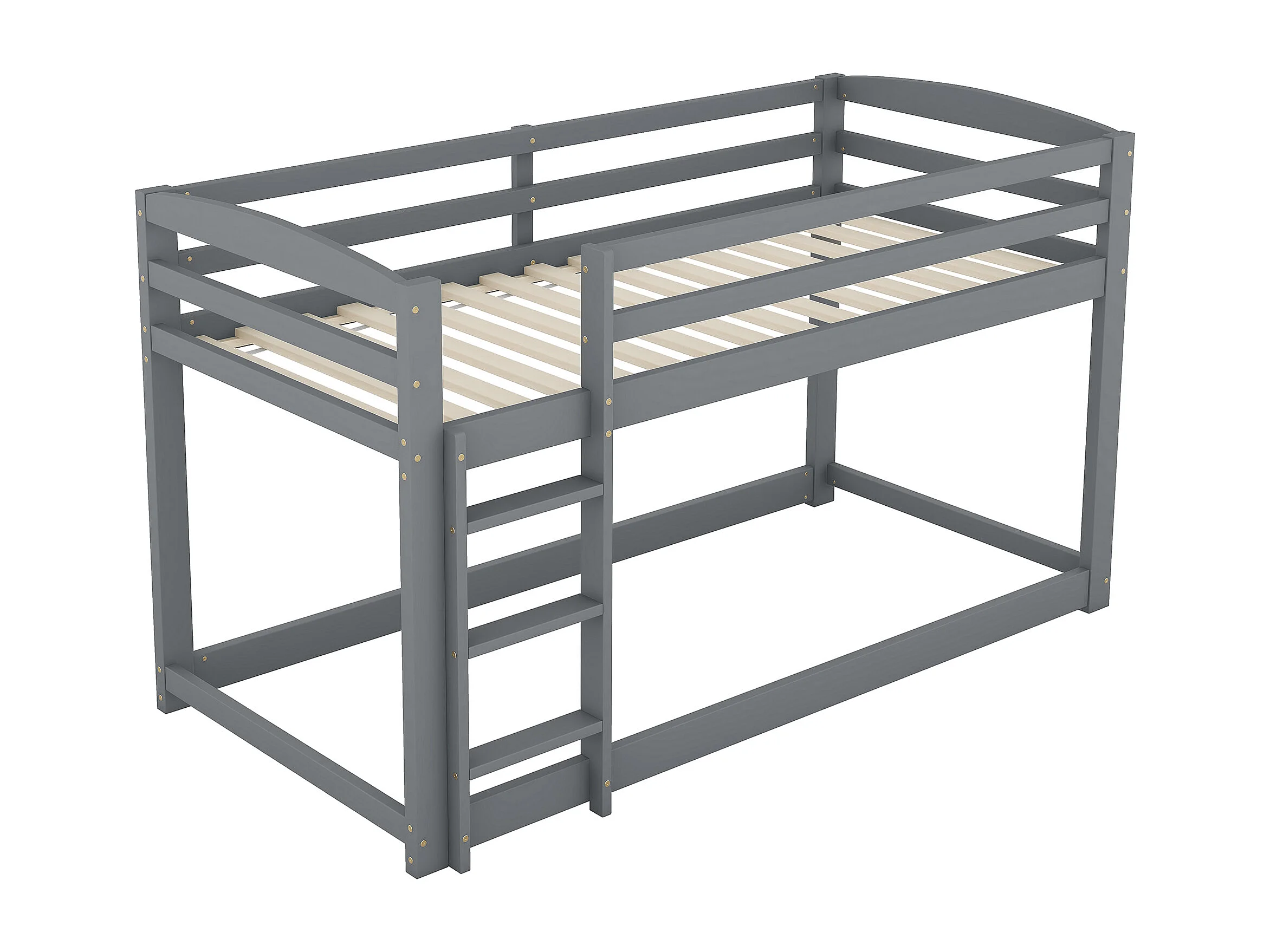 Lit superposé 90x200cm pour enfants avec échelle, 2 sommiers, style simple, Pin et MDF, gris, sans matelas