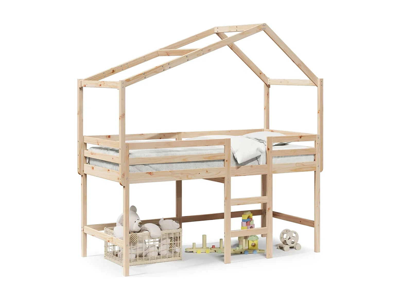 Lit superposé avec échelle et toit sans matelas 90x200 cm