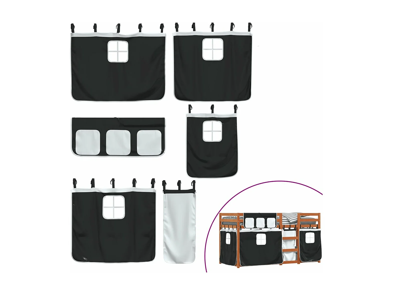 Lit superposé avec rideaux blanc-noir 75x190 bois pin massif