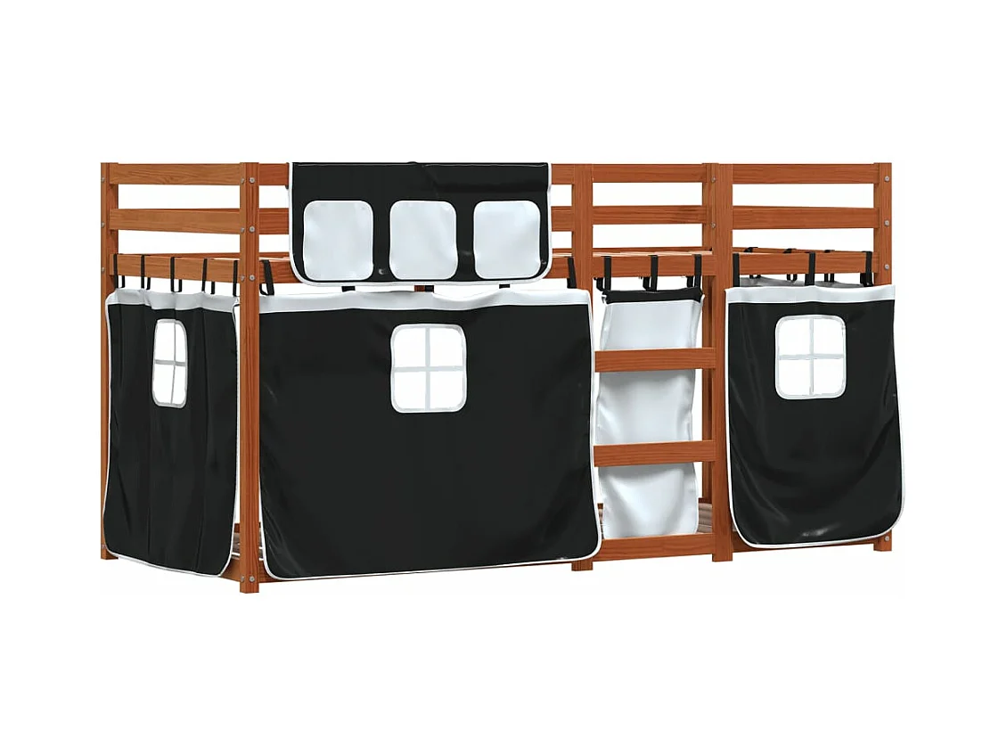Lit superposé avec rideaux blanc-noir 80x200 bois pin massif