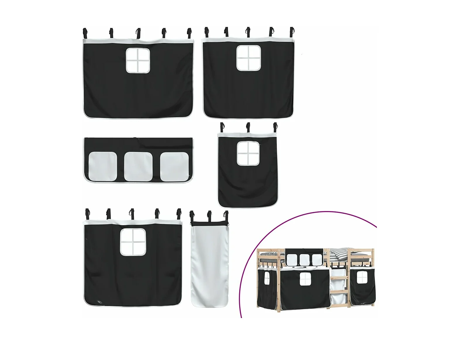 Lit superposé avec rideaux blanc-noir 90x190 bois pin massif