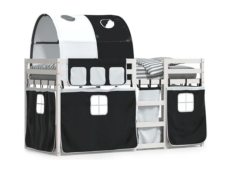 Lit superposé avec rideaux blanc-noir 90x200 bois pin massif