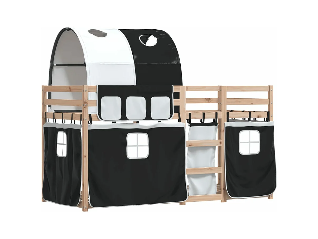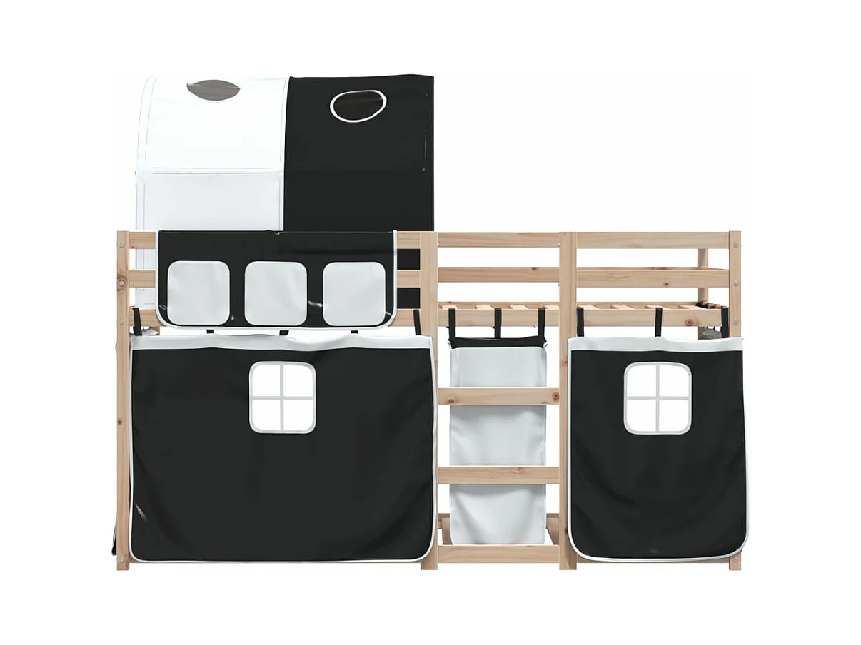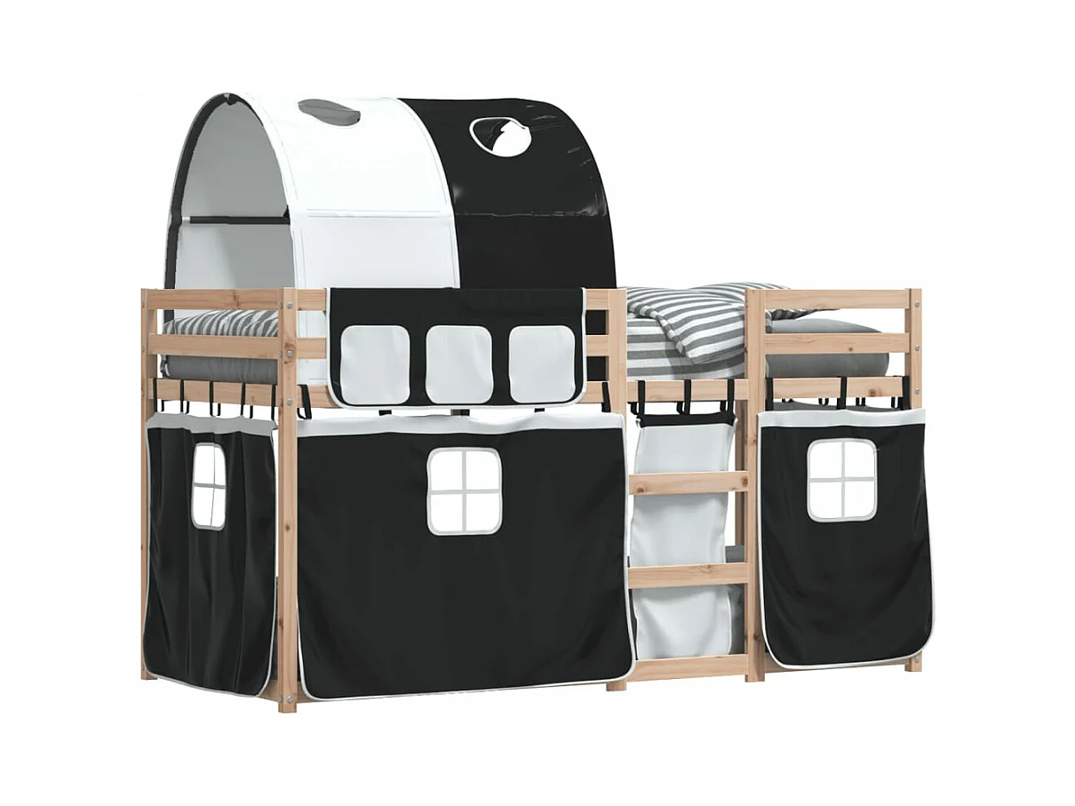 Lit superposé avec rideaux blanc/noir 90x200 cm bois pin massif FR72788