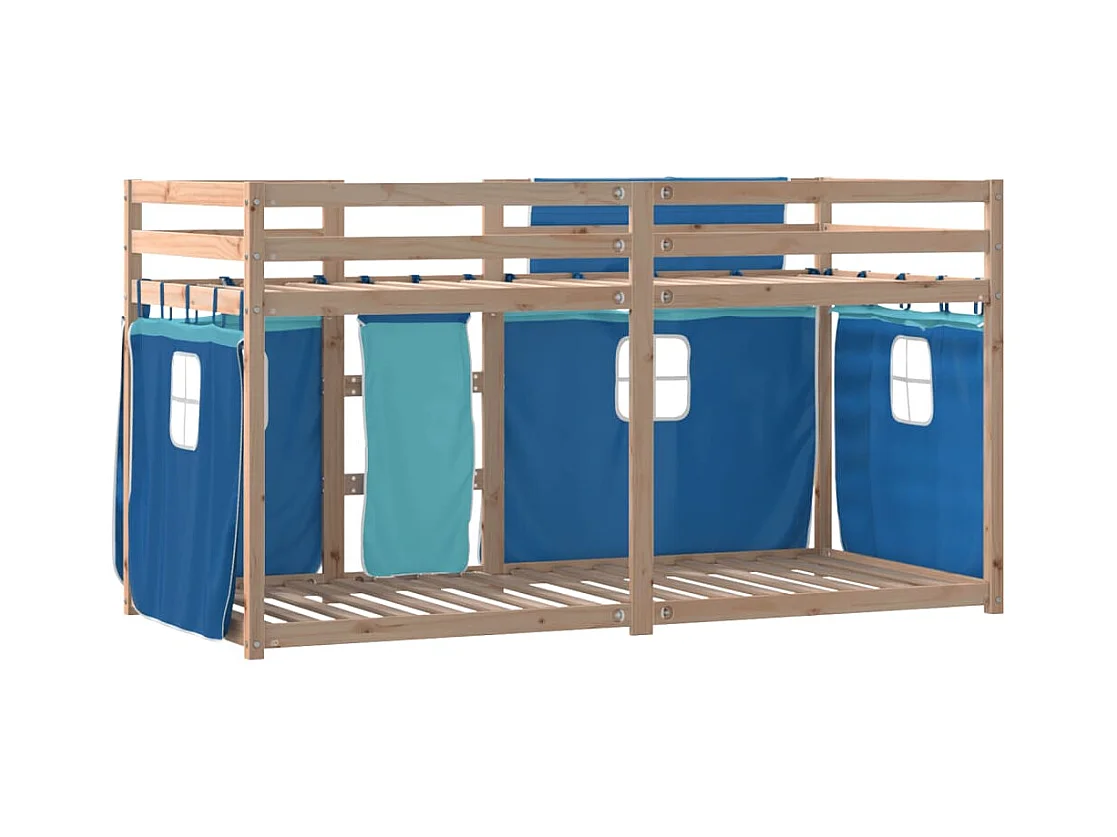 Lit superposé avec rideaux bleu 80x200 bois pin massif