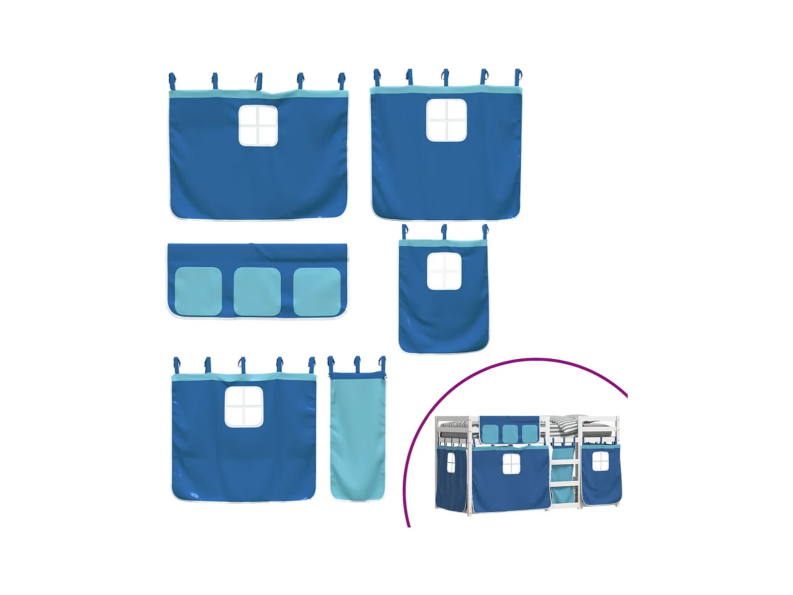 Lit superposé avec rideaux bleu 80x200 bois pin massif