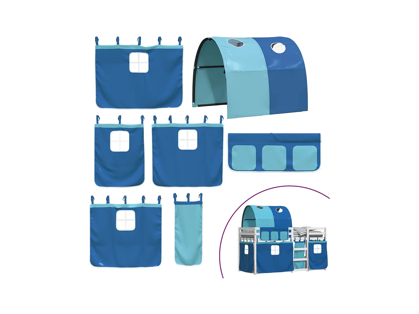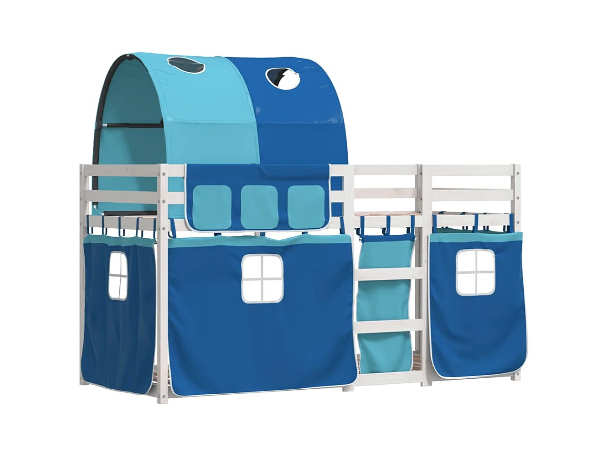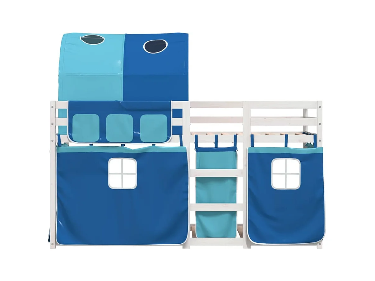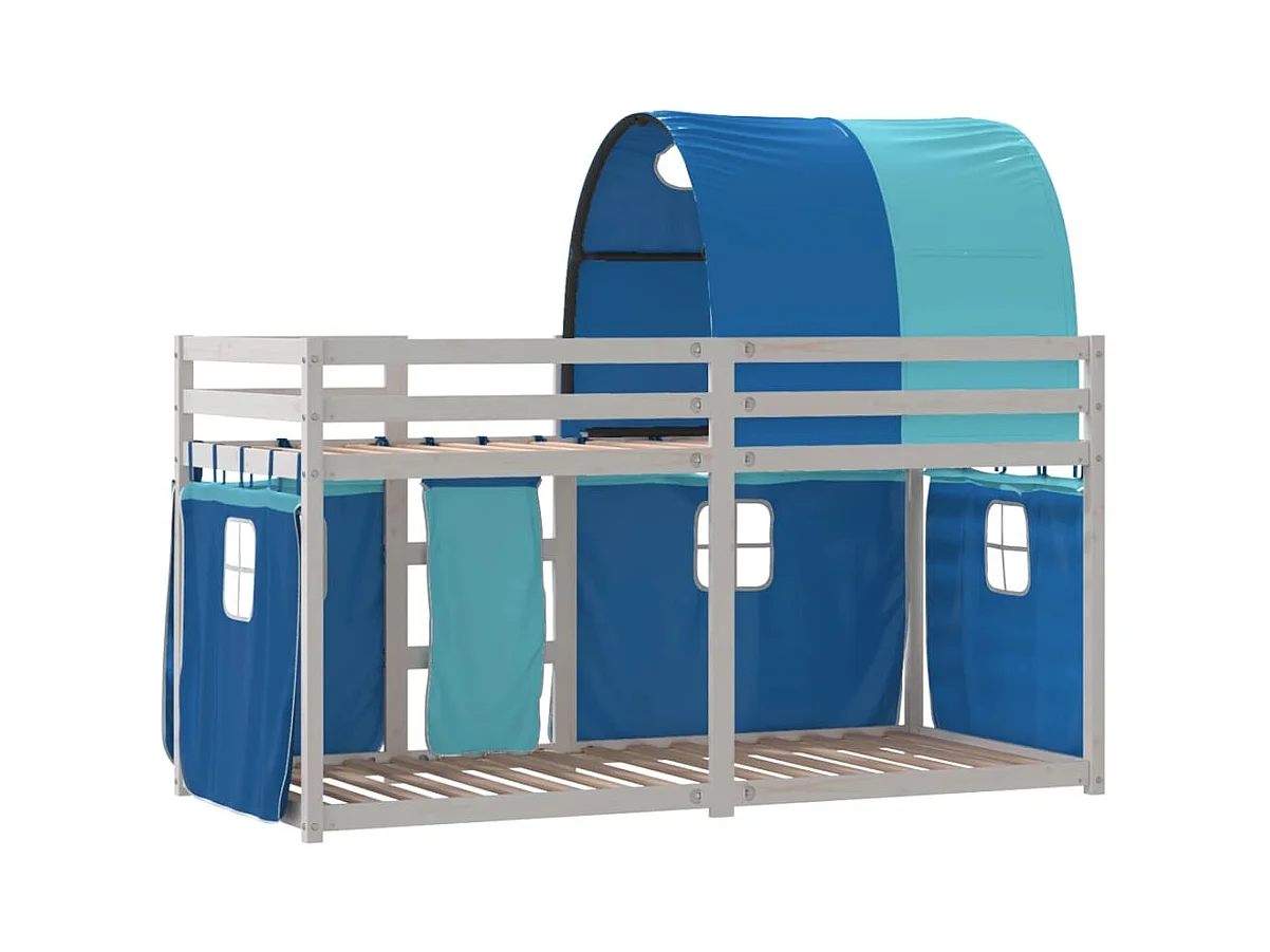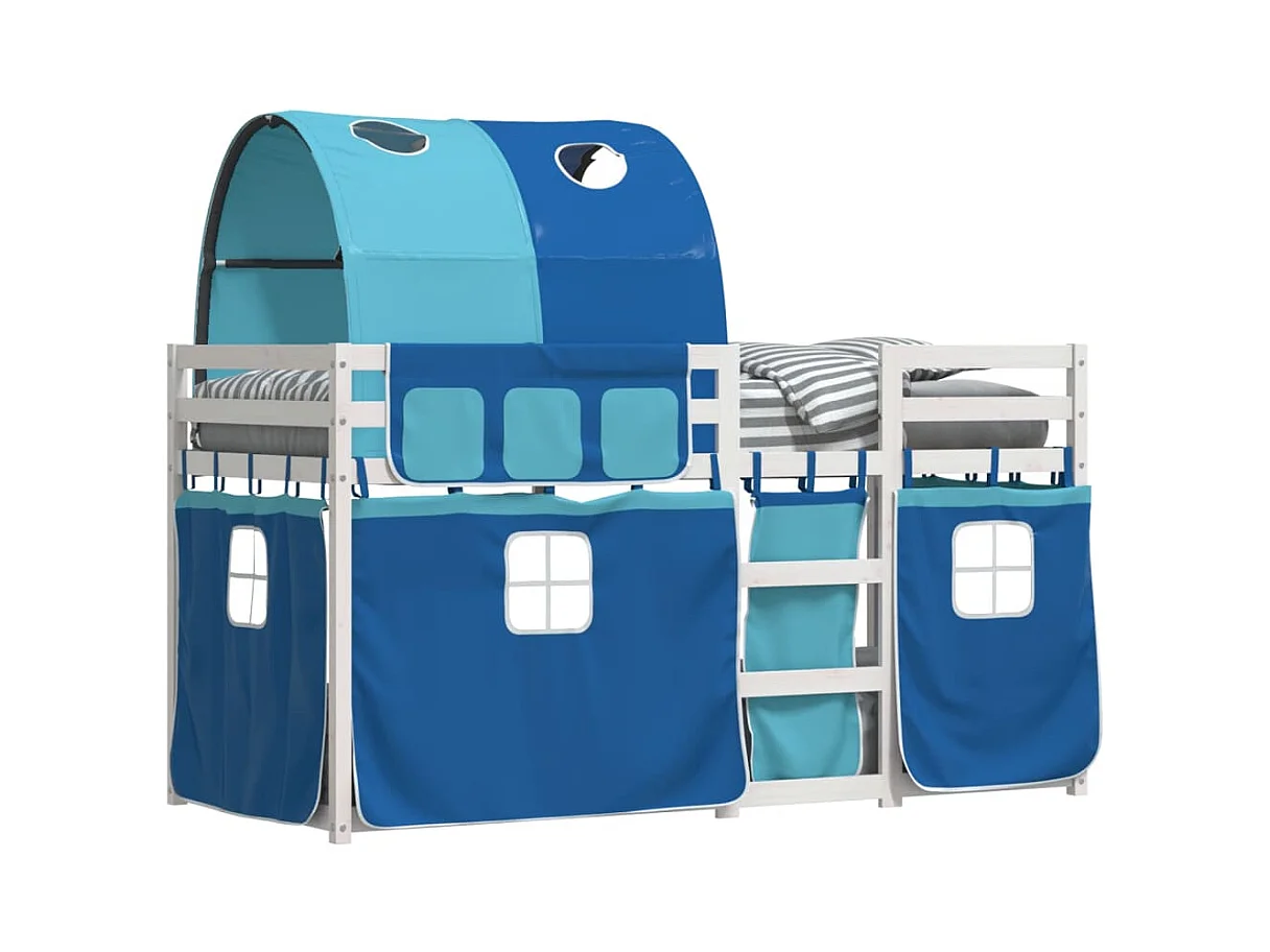Lit superposé avec rideaux bleu 80x200 bois pin massif