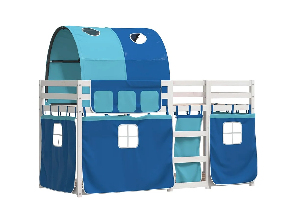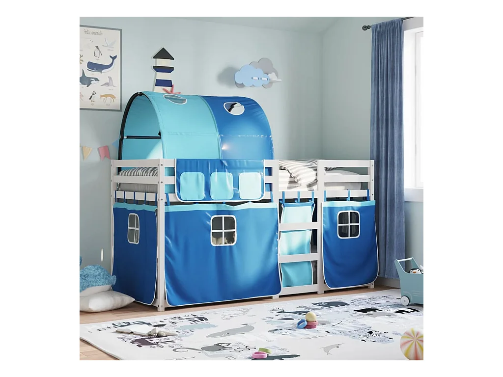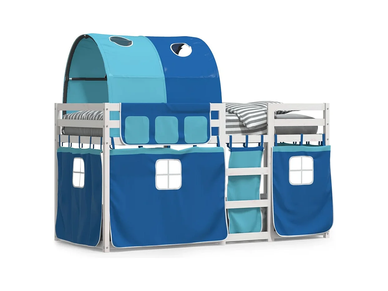 Lit superposé avec rideaux bleu 90x200 bois pin massif