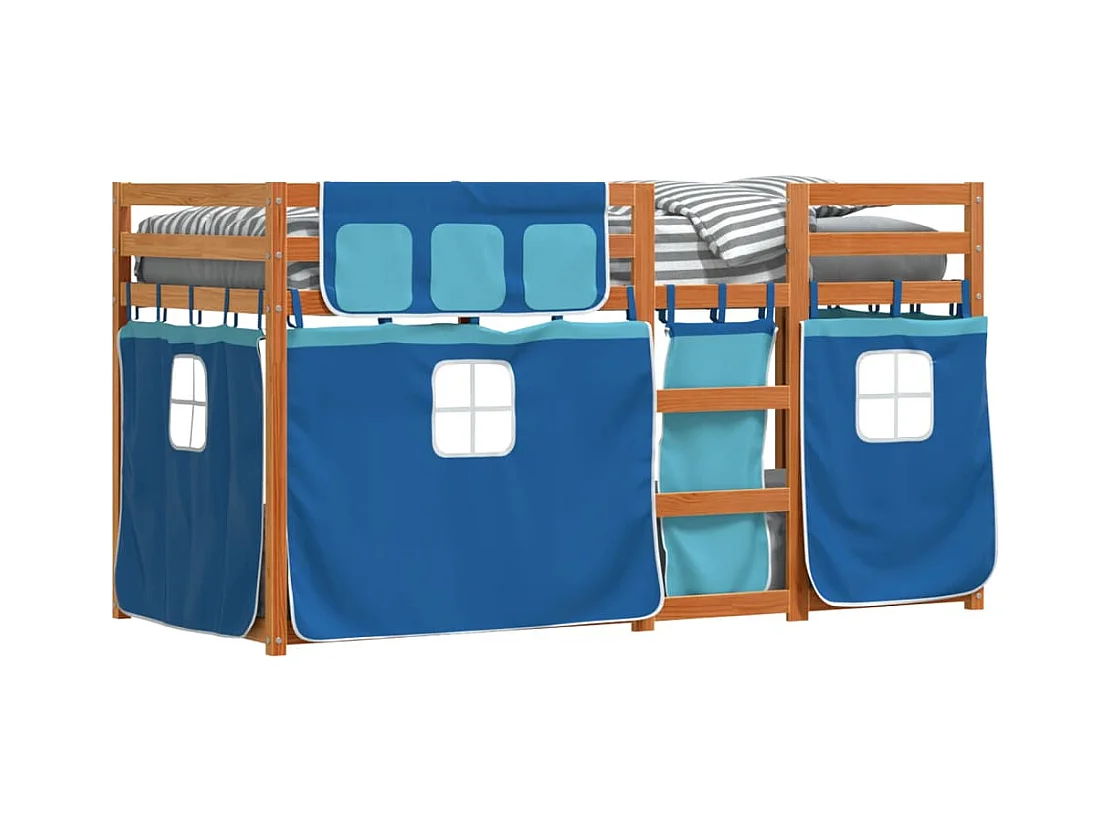Lit superposé avec rideaux bleu 90x200 bois pin massif