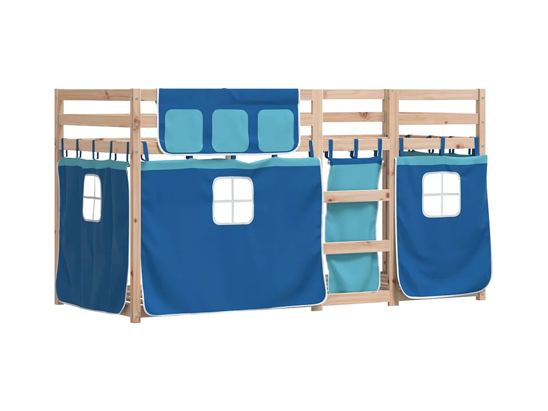 Lit superposé avec rideaux bleu 90x200 bois pin massif