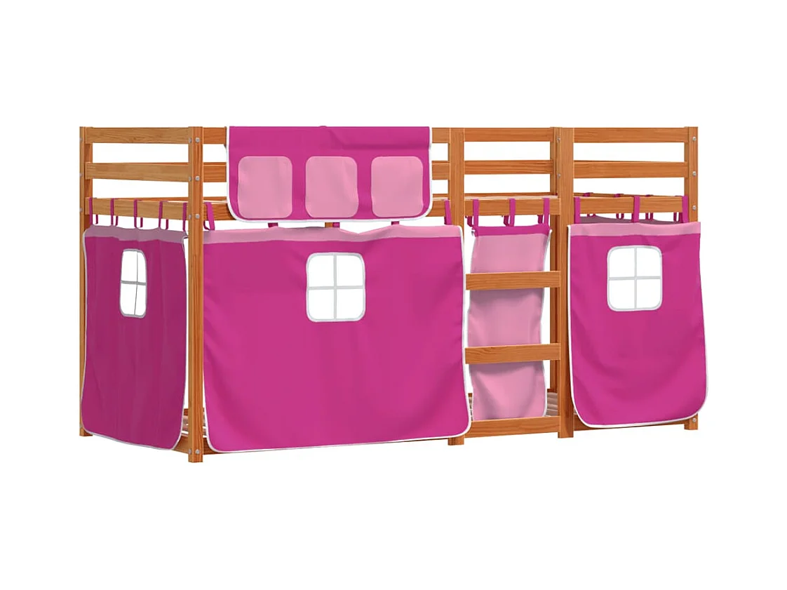 Lit superposé avec rideaux rose 80x200 bois pin massif