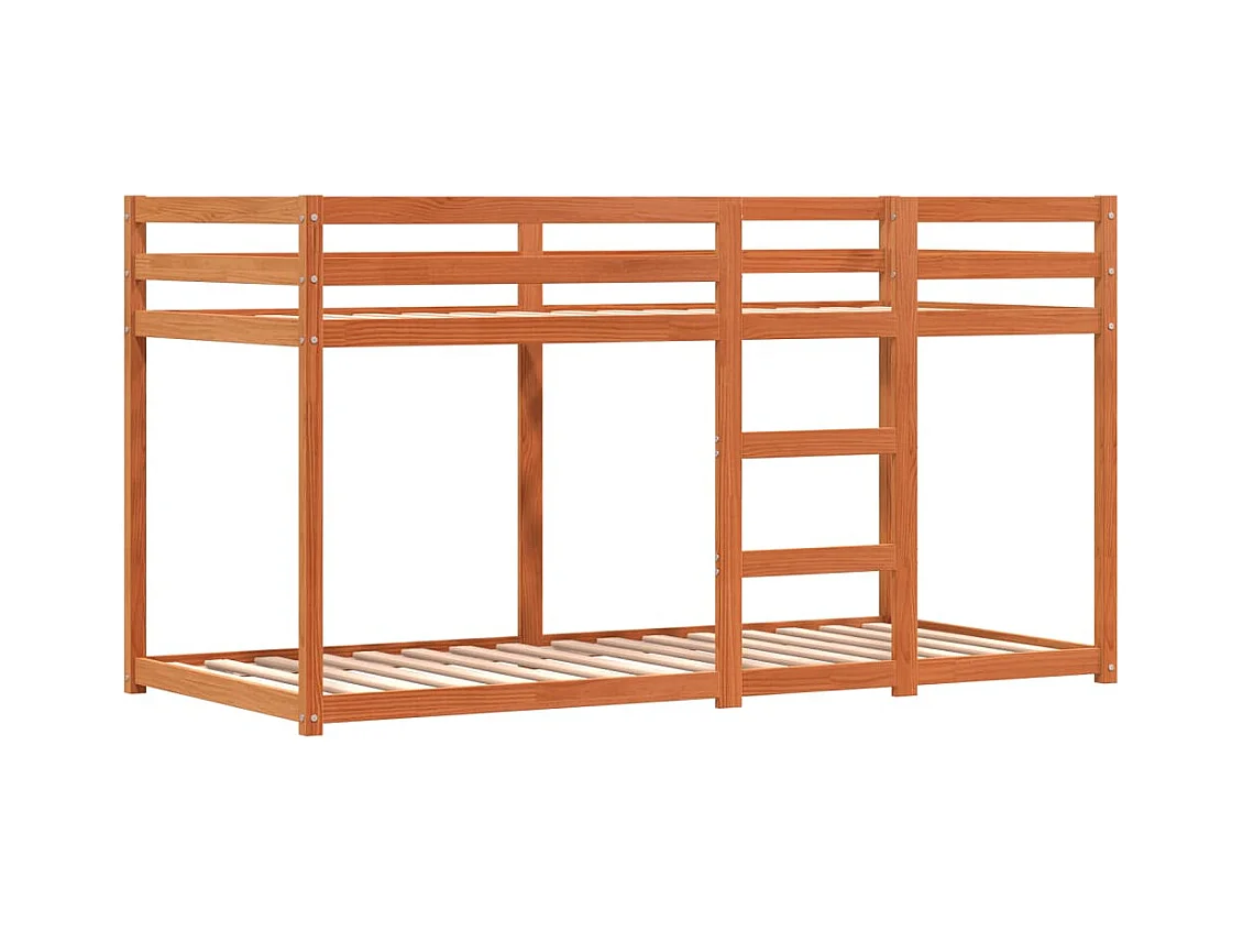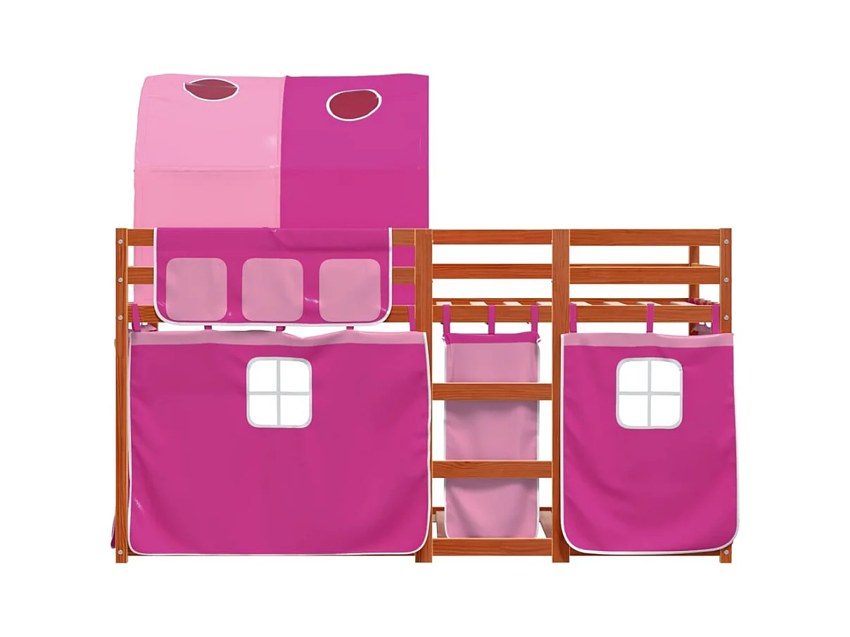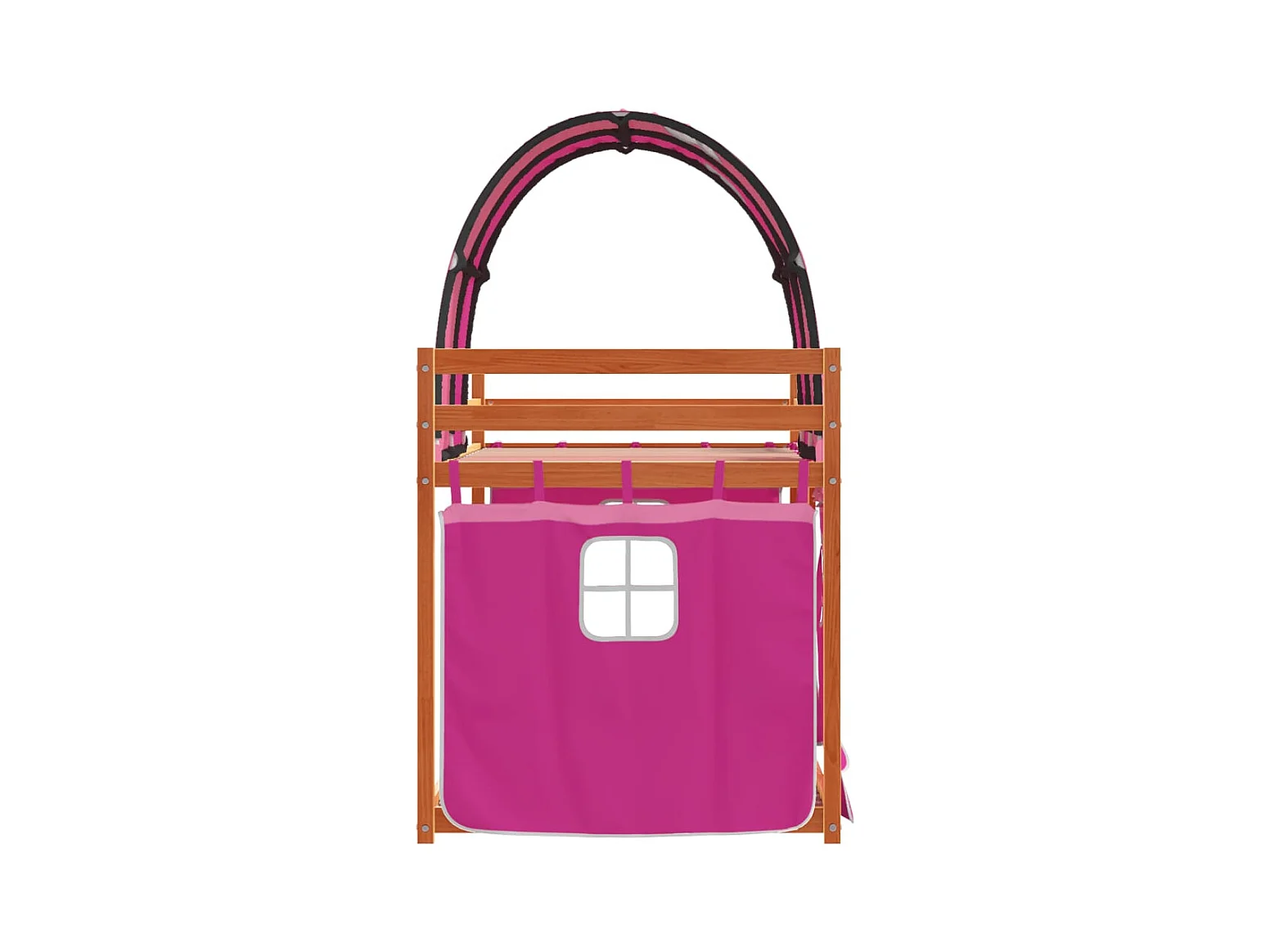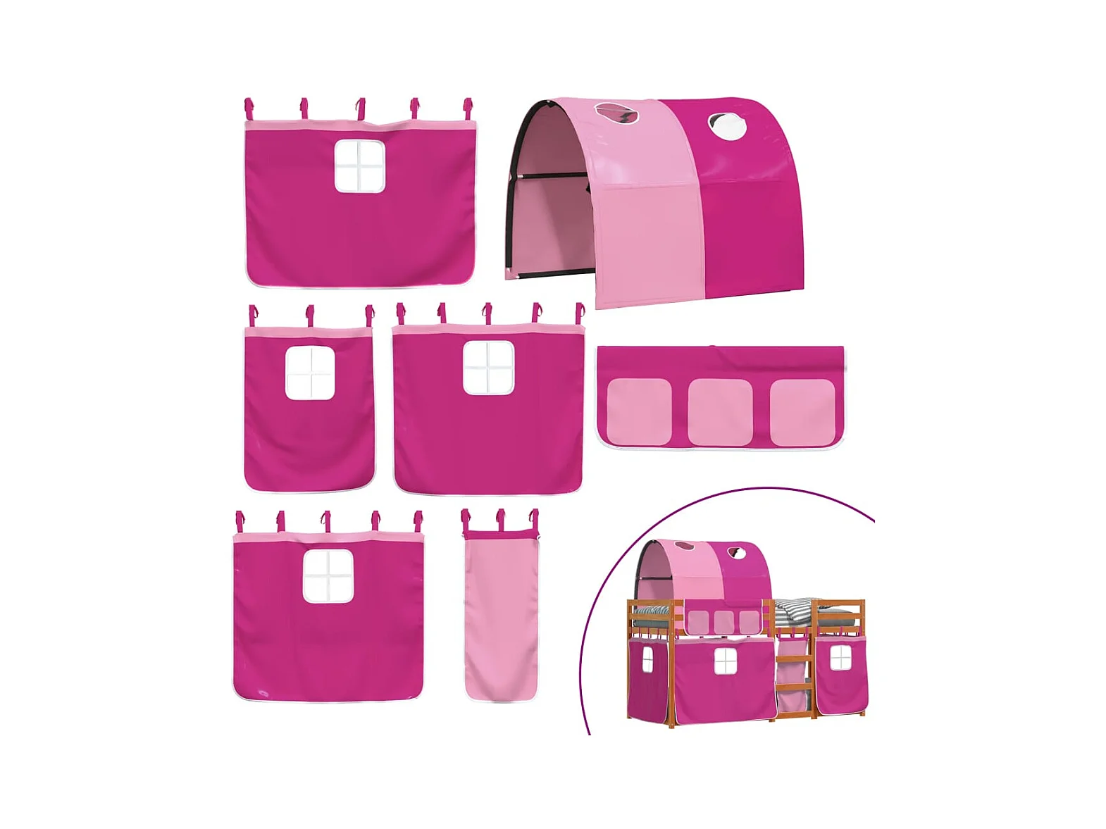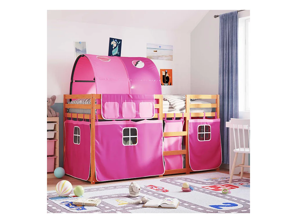 Lit superposé avec rideaux rose 80x200 bois pin massif