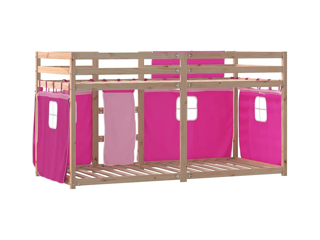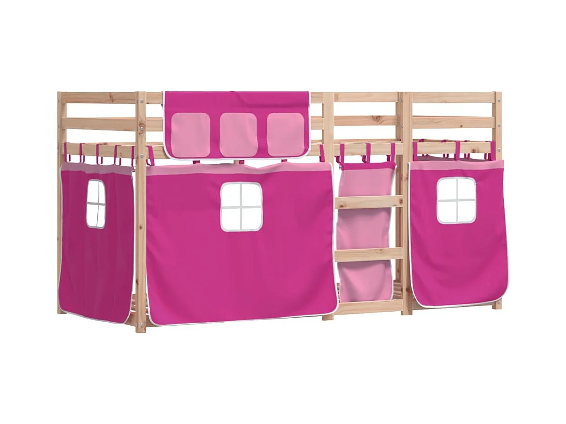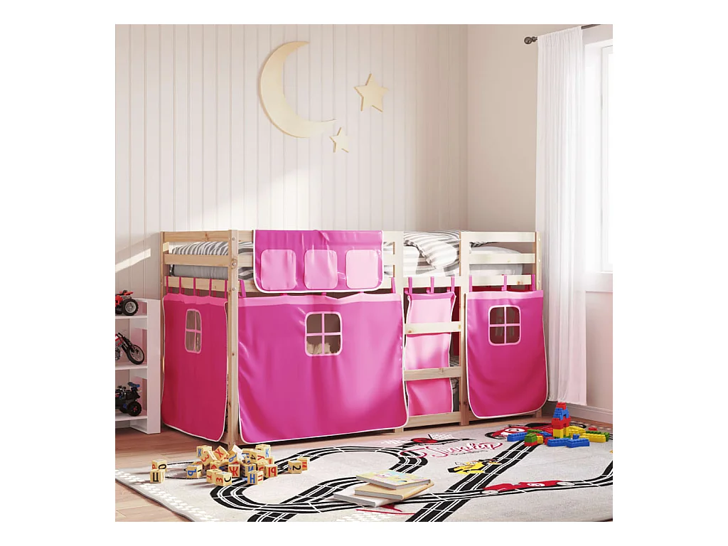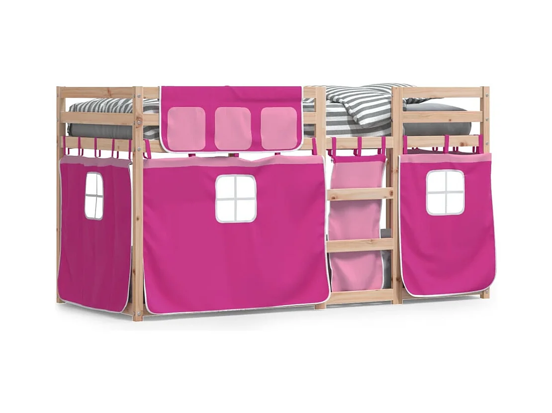 Lit superposé avec rideaux rose 90x190 bois pin massif
