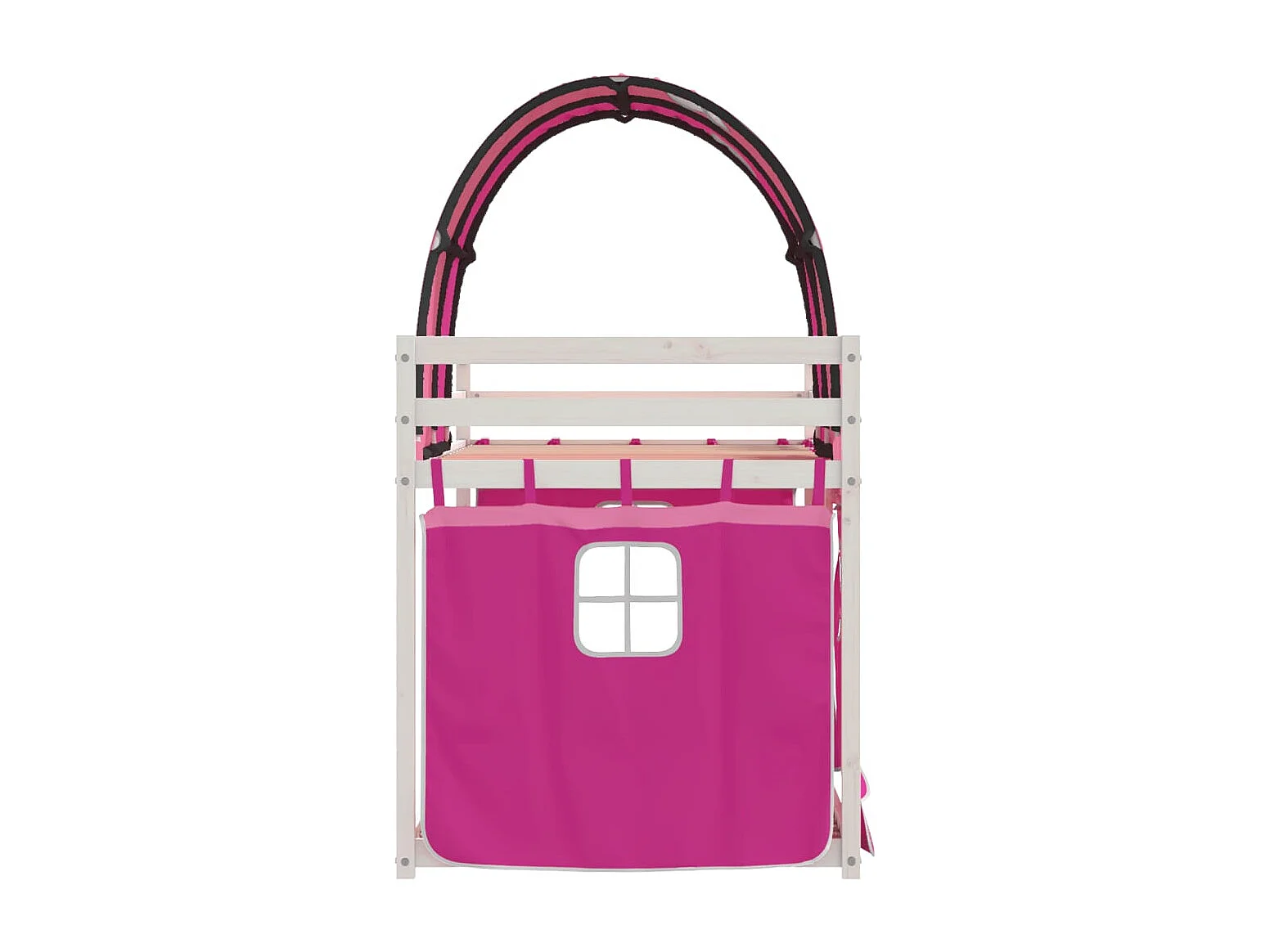 Lit superposé avec rideaux rose 90x190 bois pin massif