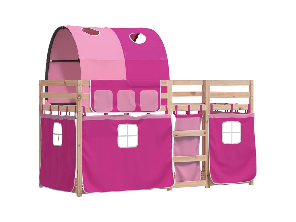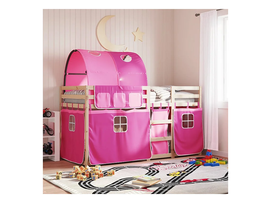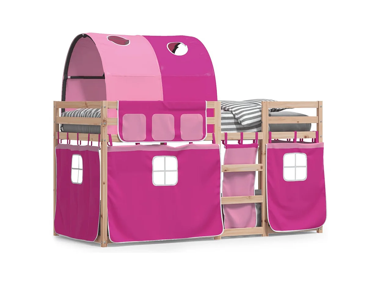 Lit superposé avec rideaux rose 90x200 bois pin massif