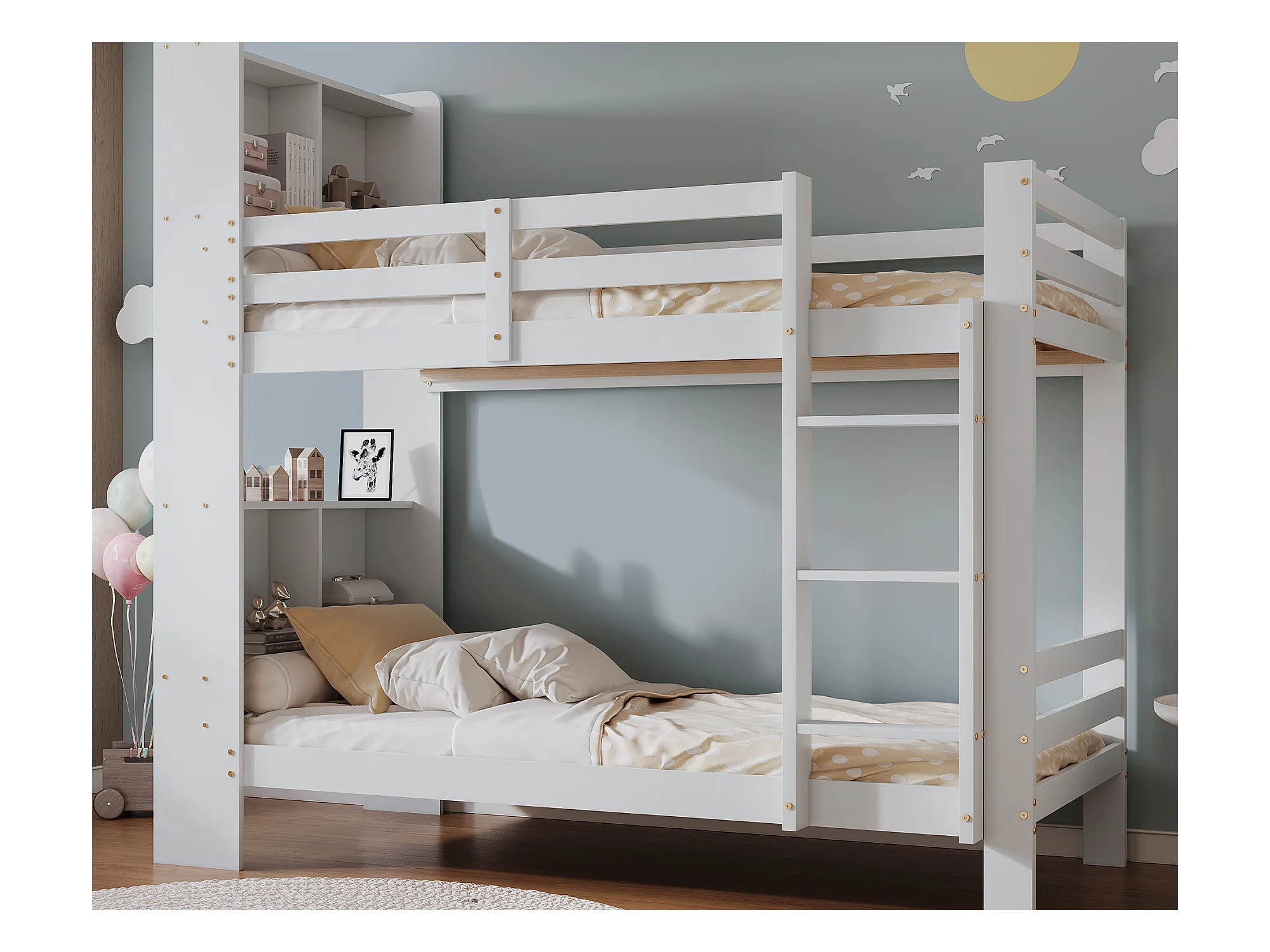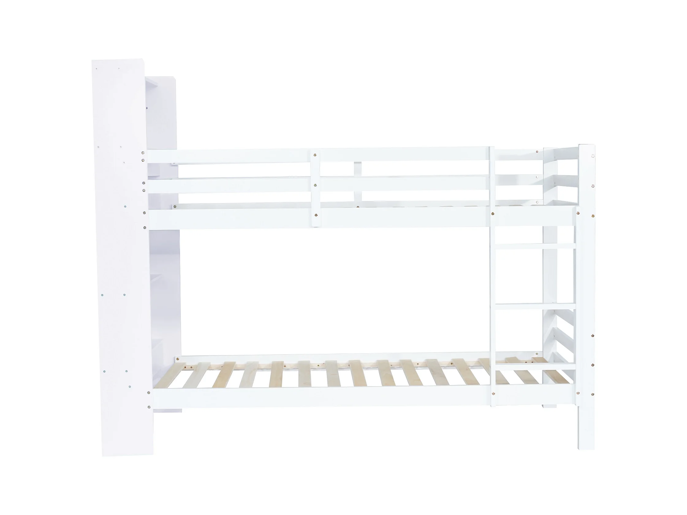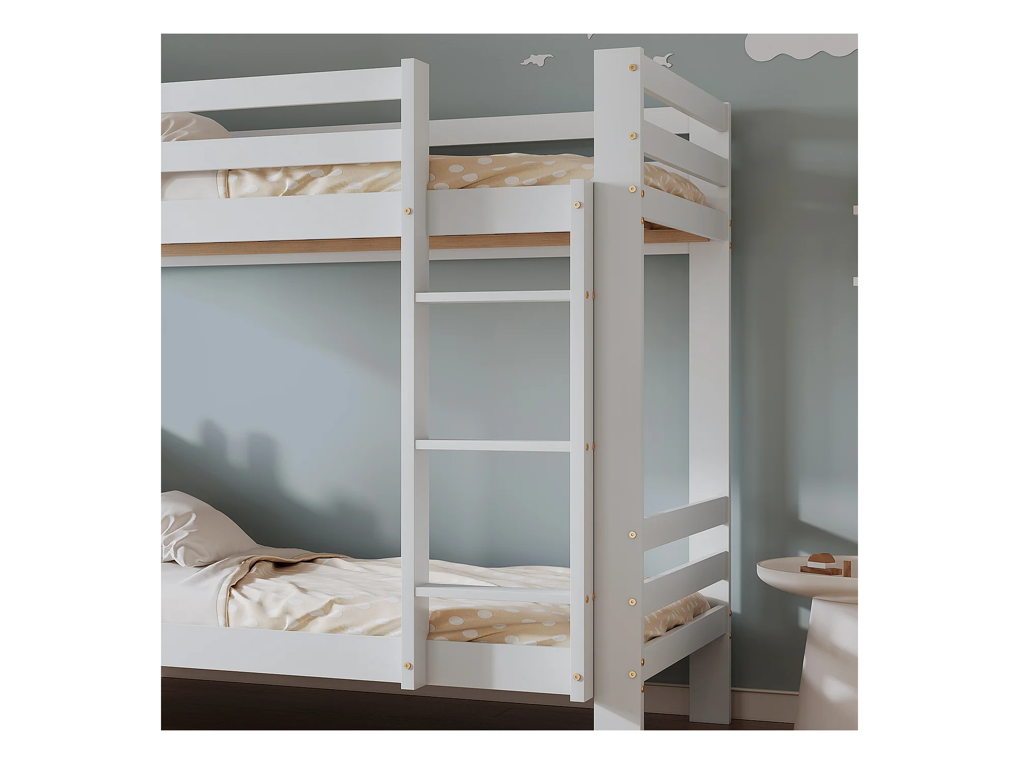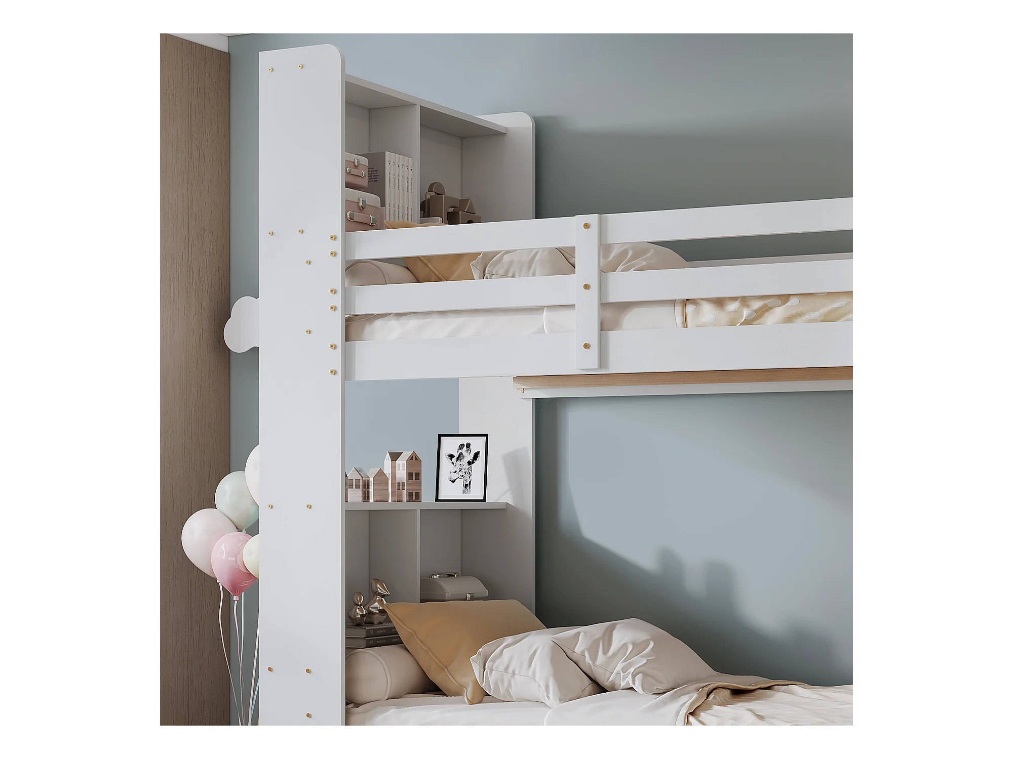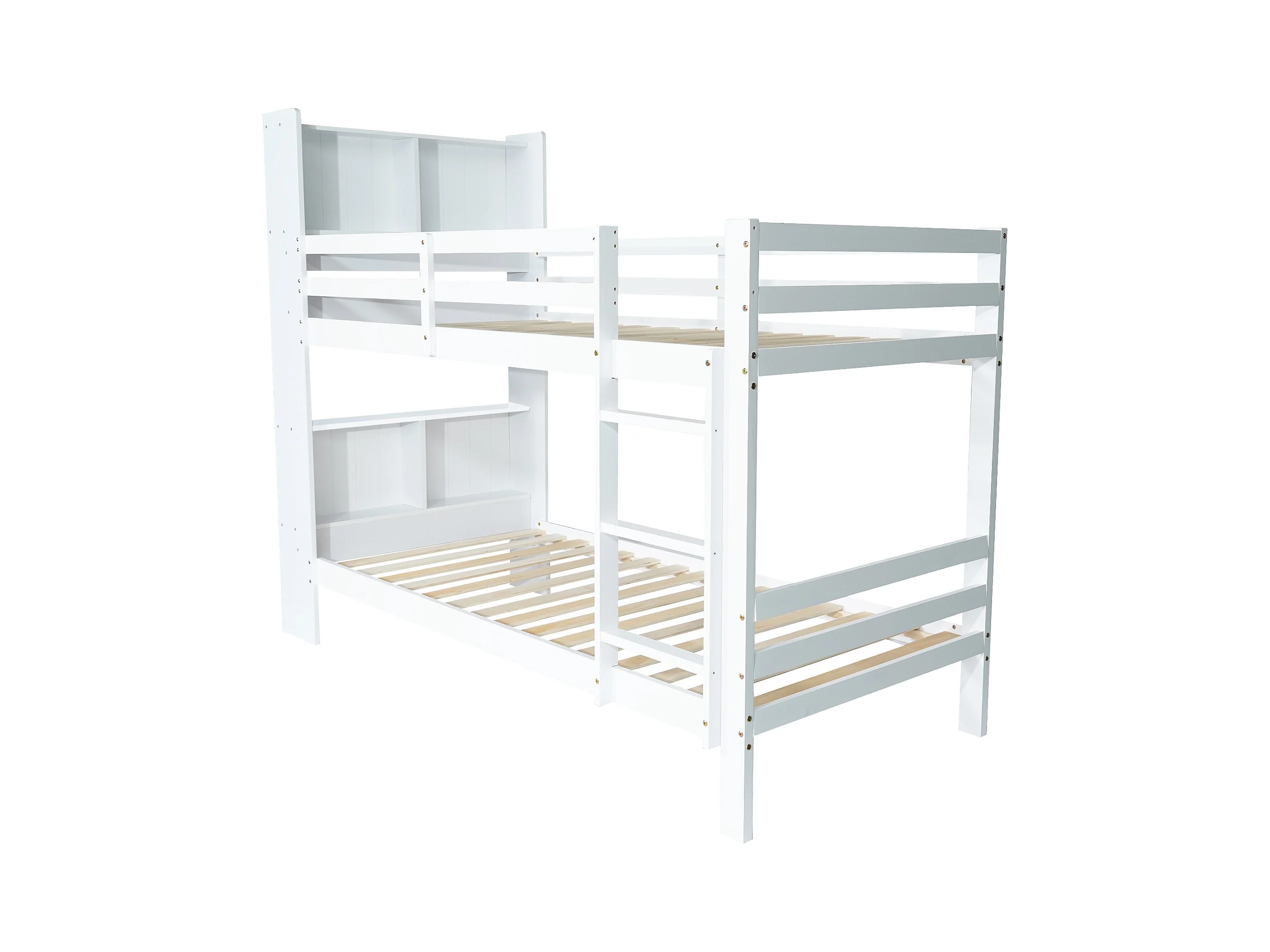 Lit superposé avec tête de lit rangement - 2 x 90 x 200 cm - bois massif - coloris blanc