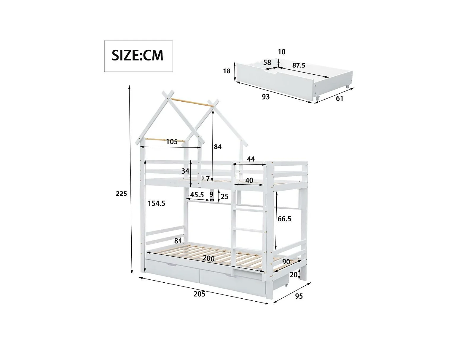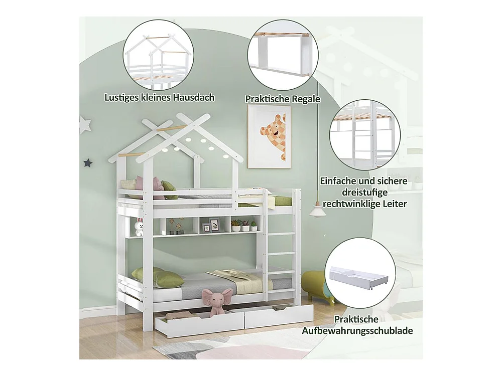 Lit superposé avec tiroirs échelle à angle droit à trois marches lit enfant avec protection blanc 90x200cm