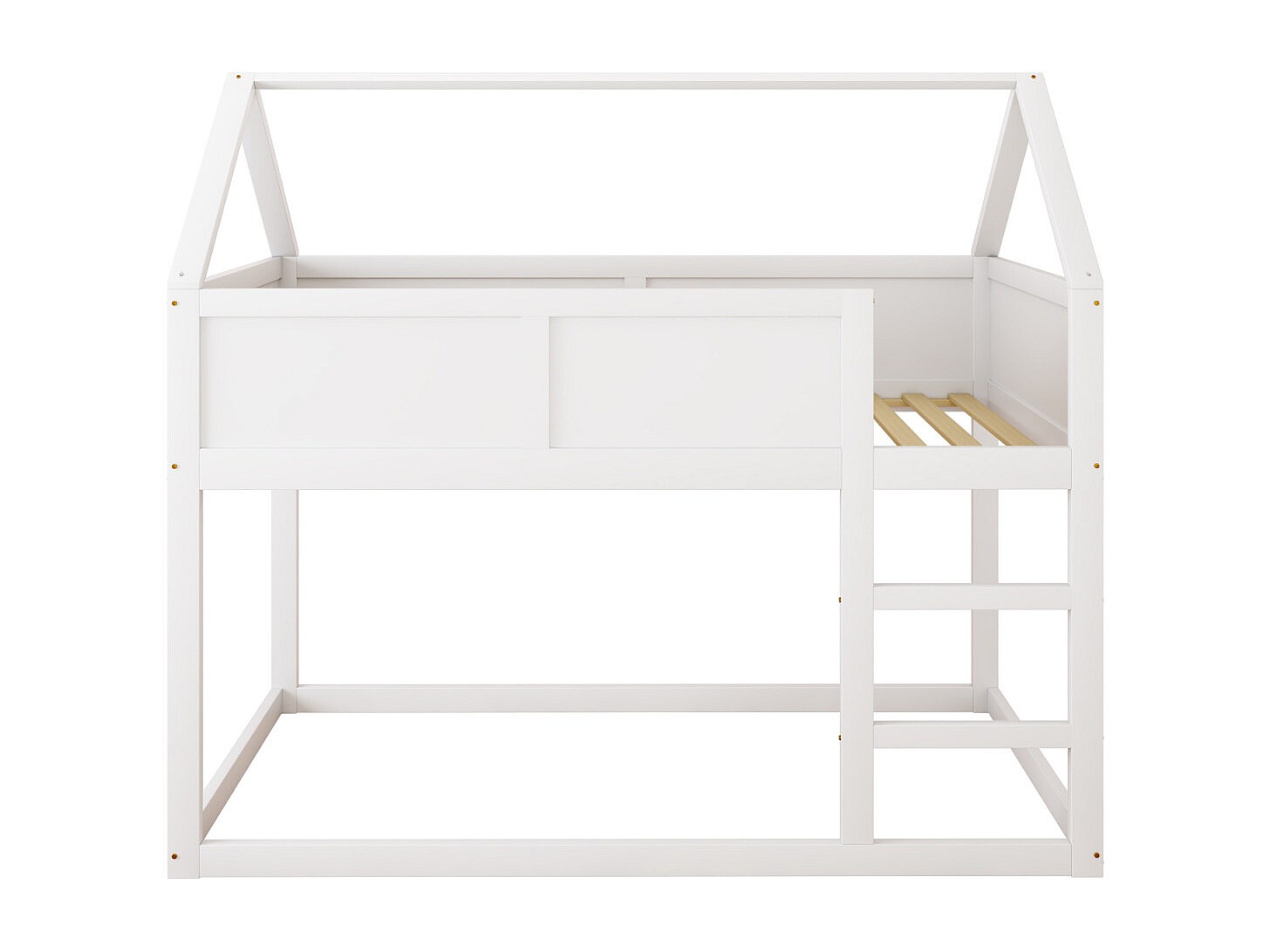 Lit superposé bas 90x200 cm pour enfants, avec échelle stable, cadre en bois massif, design épuré, idéal pour petites chambres, coloris blanc