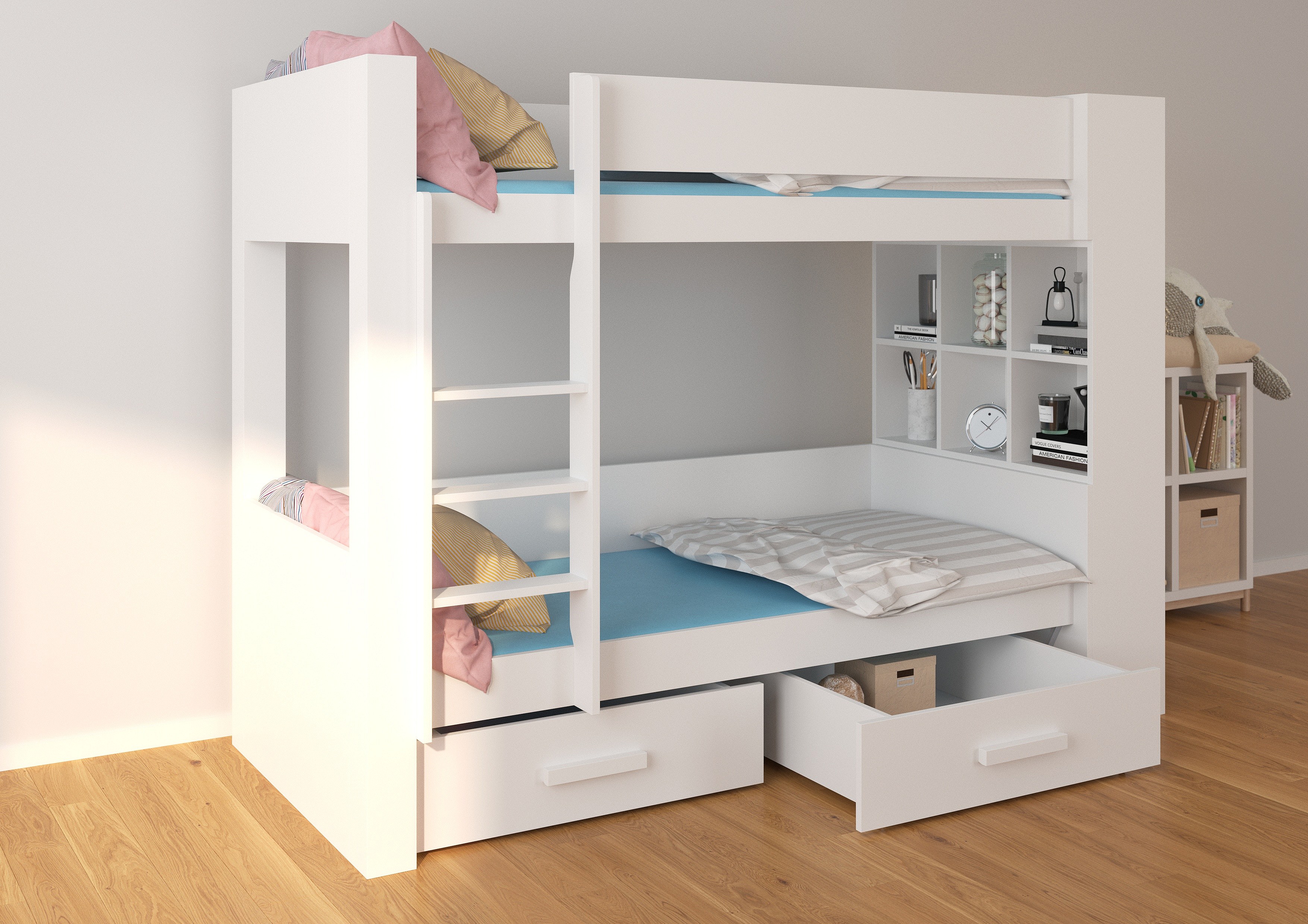 Lit superposé blanc et bois Sonoma 2 couchages 90x200 avec rangement Mila