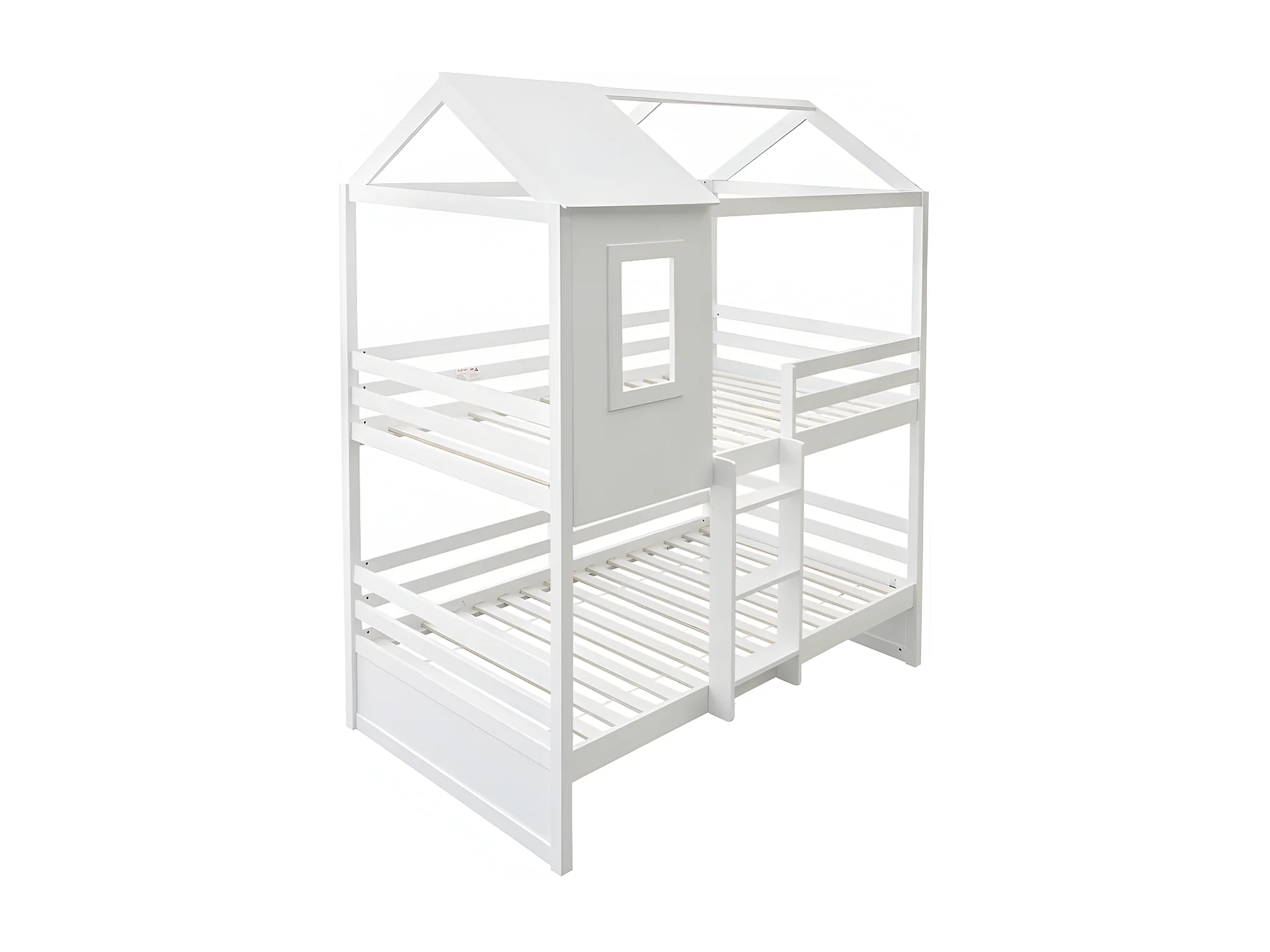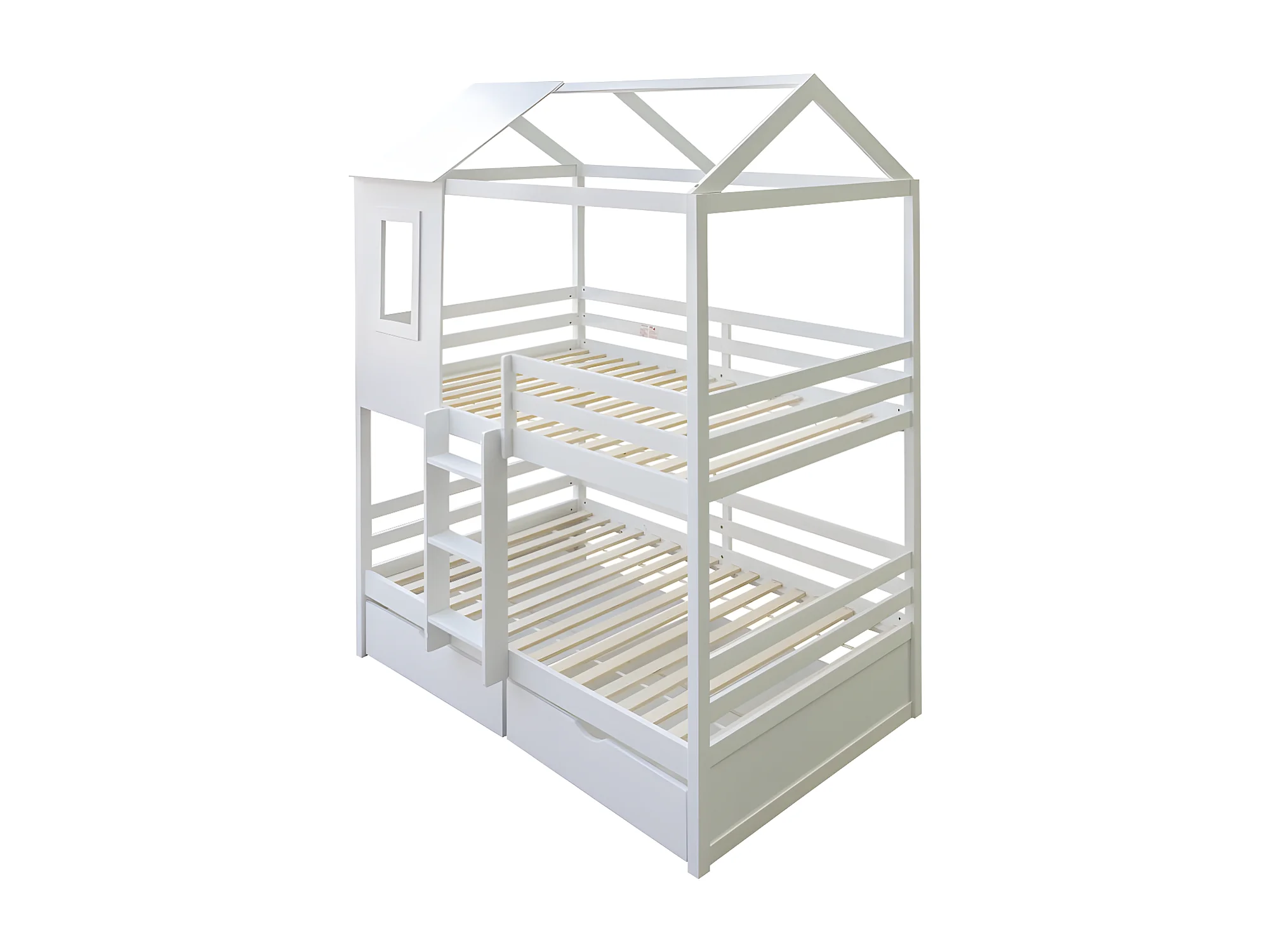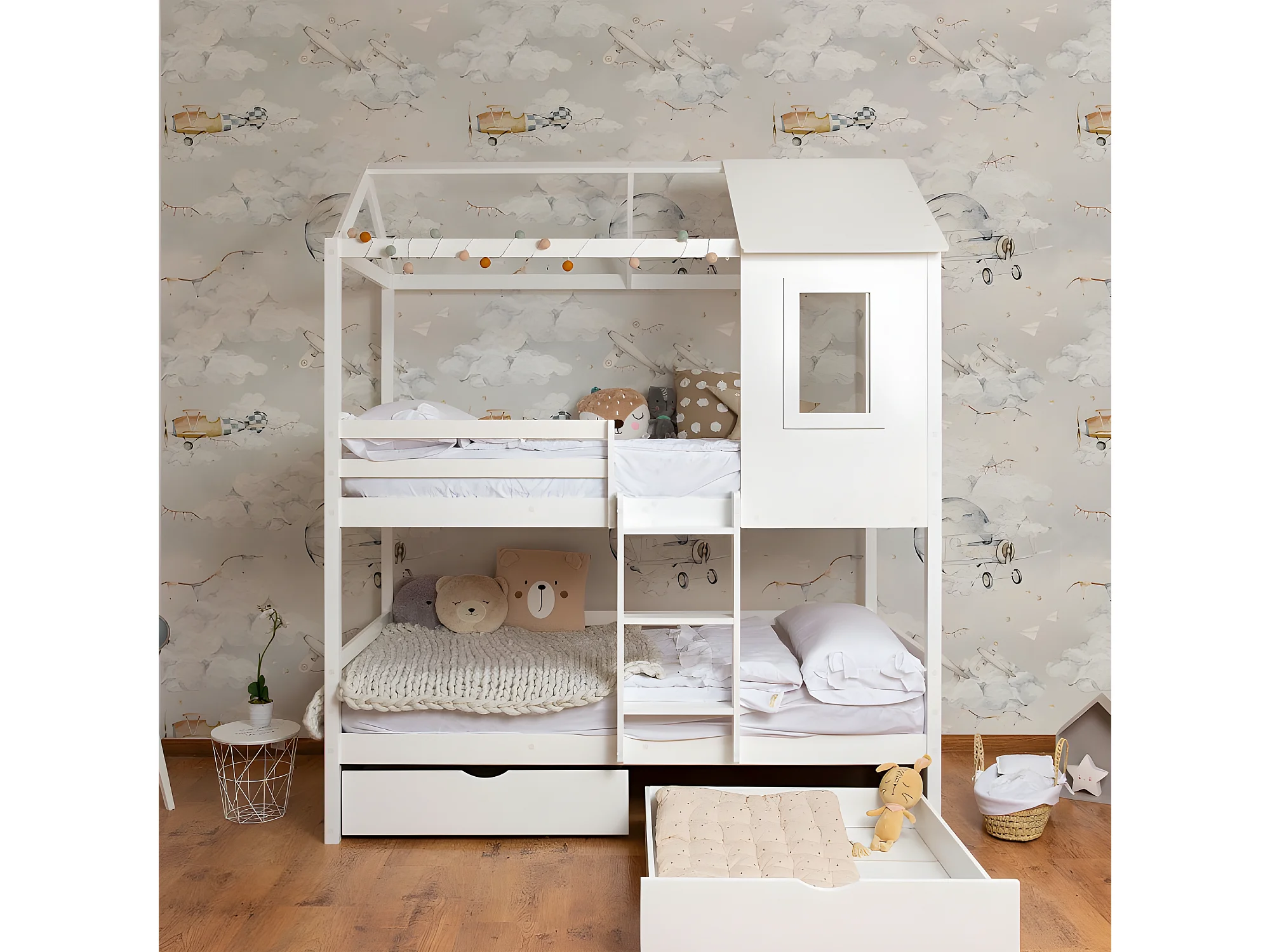 Lit superposé + tiroir de rangement bois blanc 105x190/105x190cm