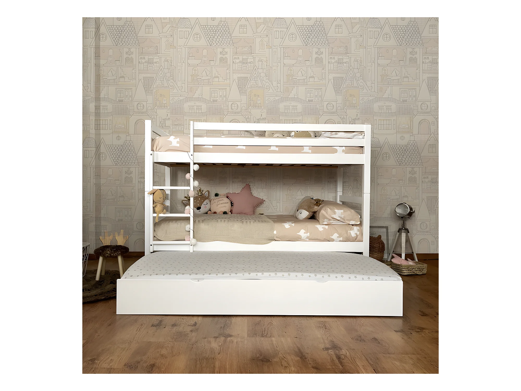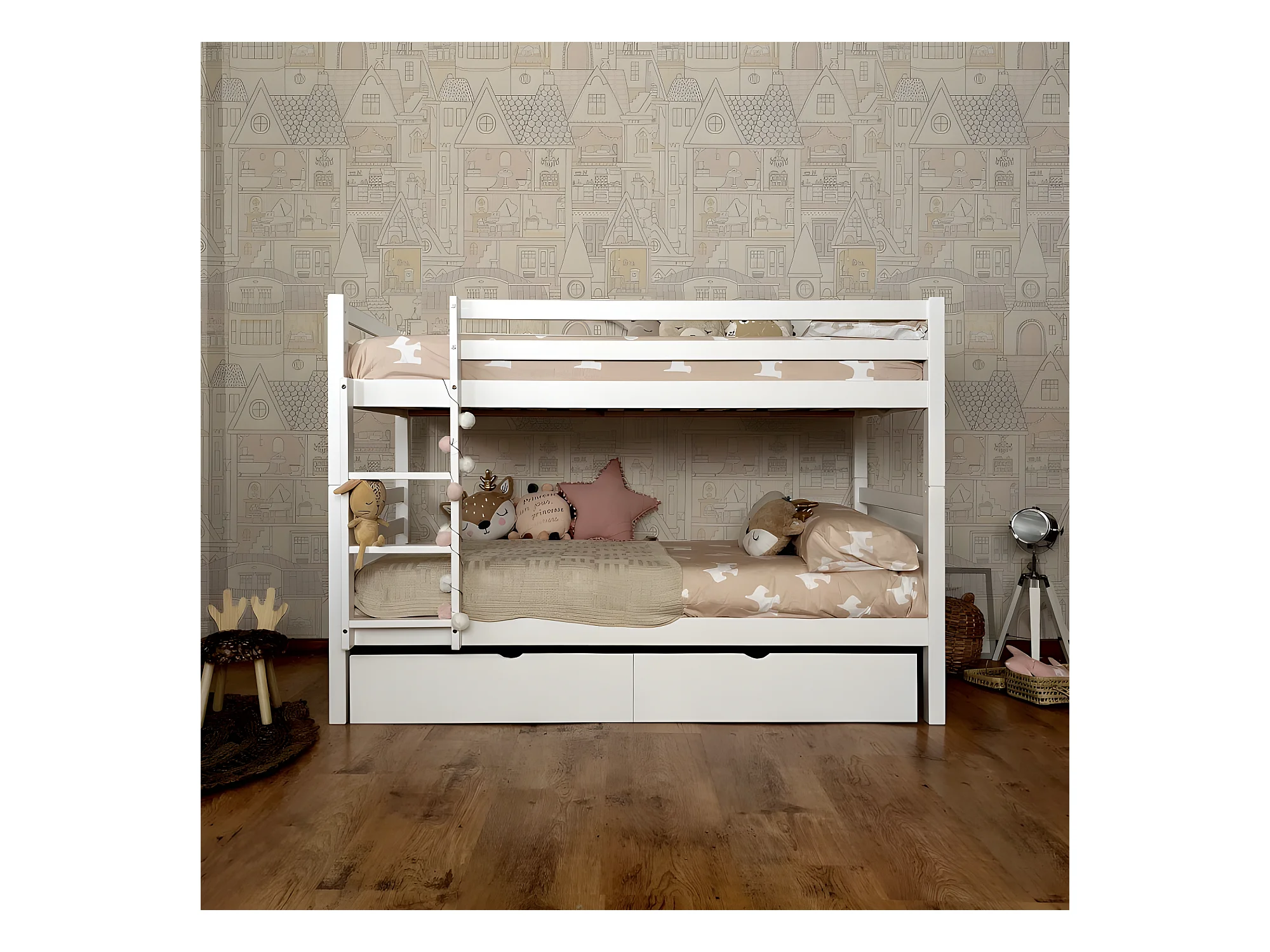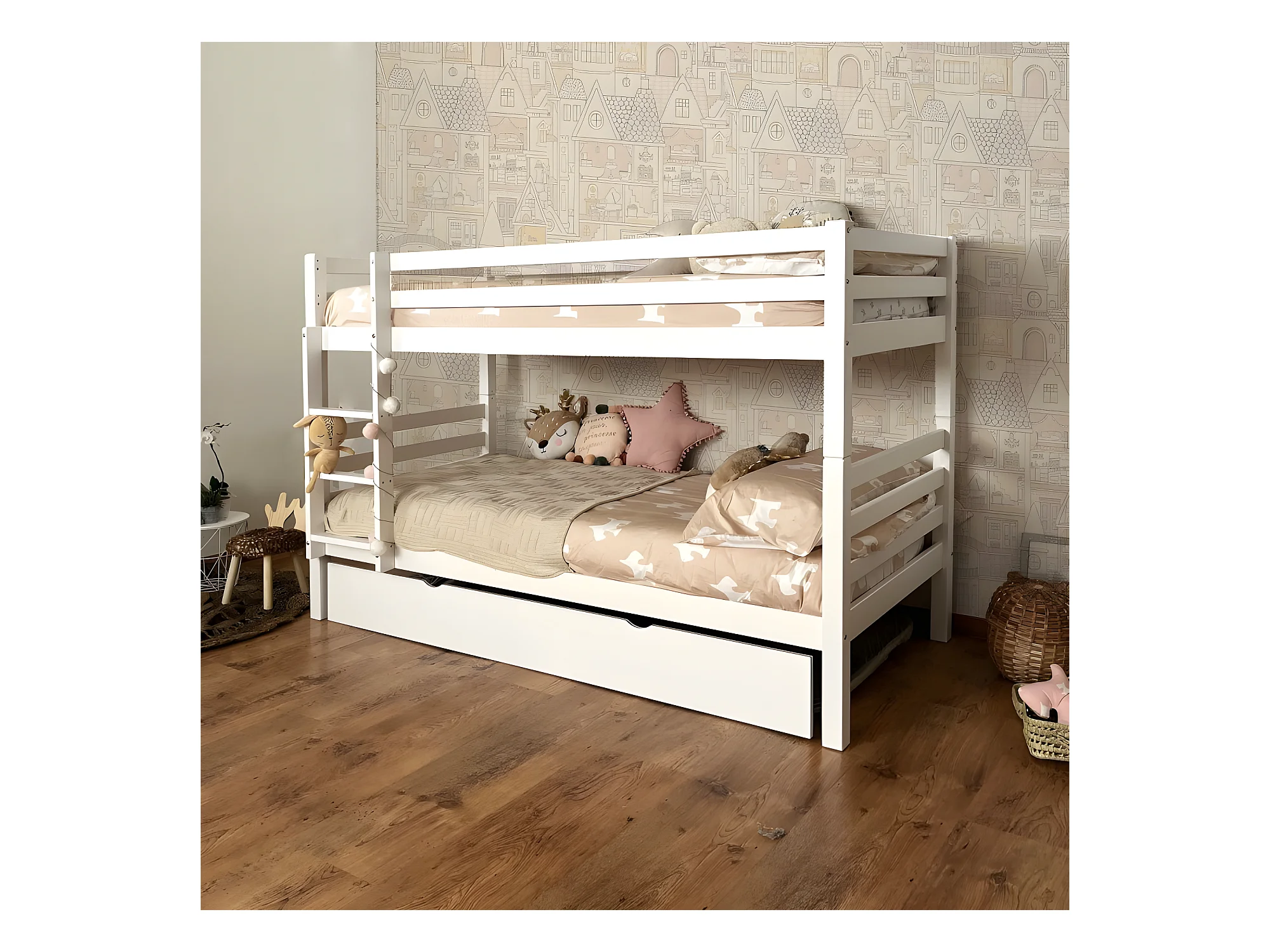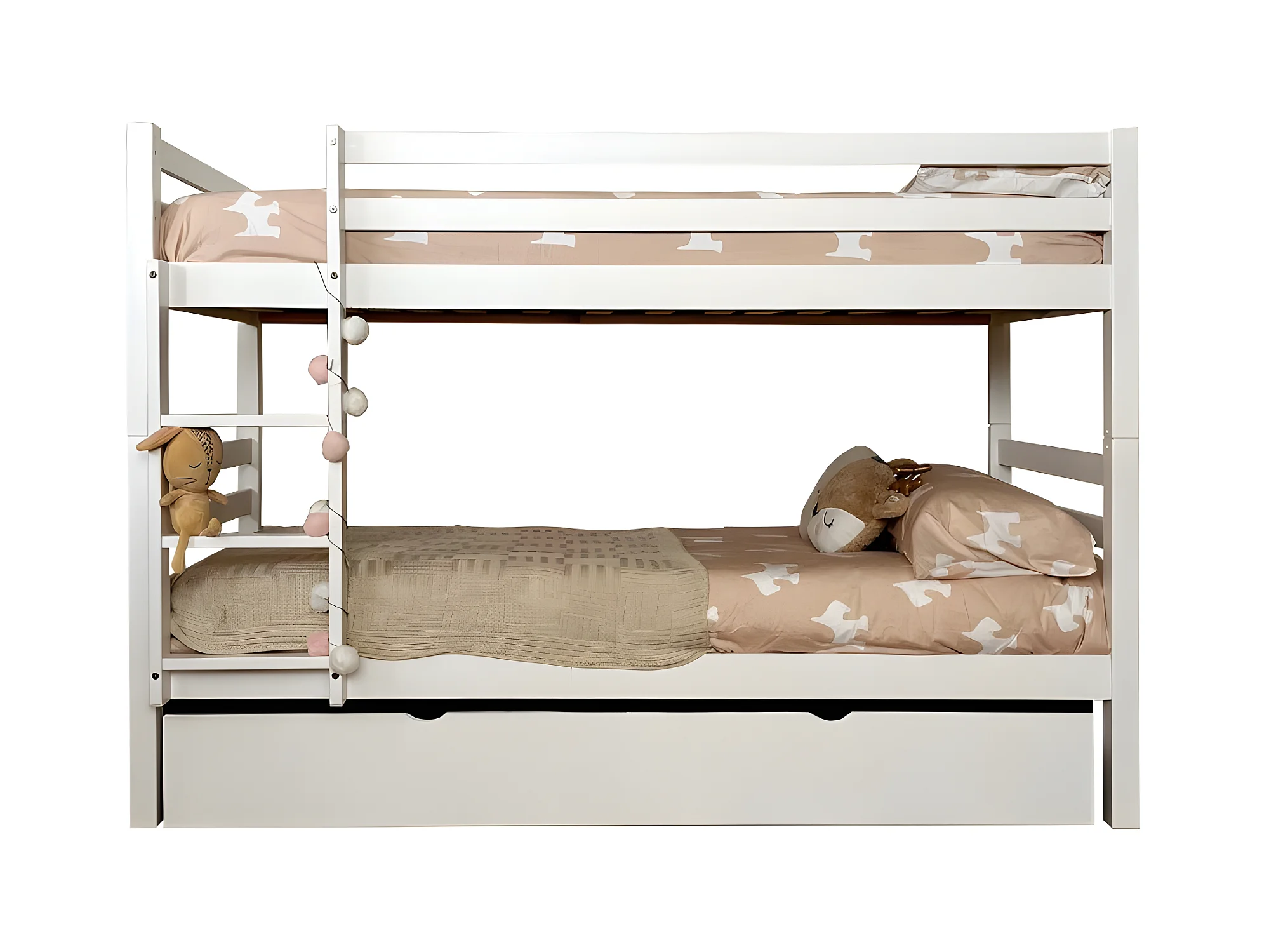 Lit superposé + tiroir de rangement bois blanc 90x195cm