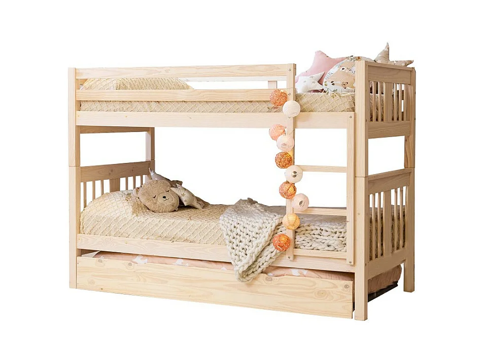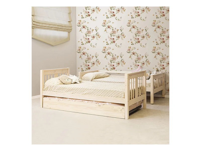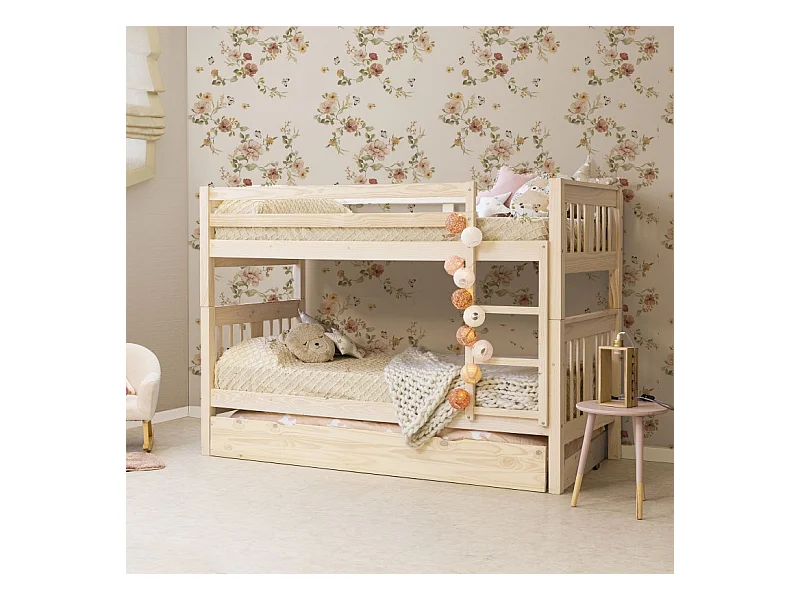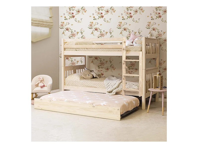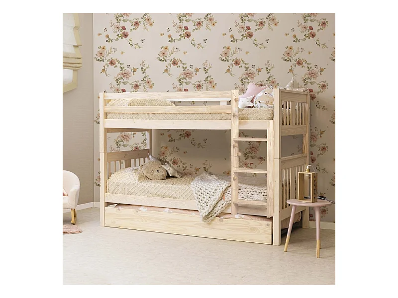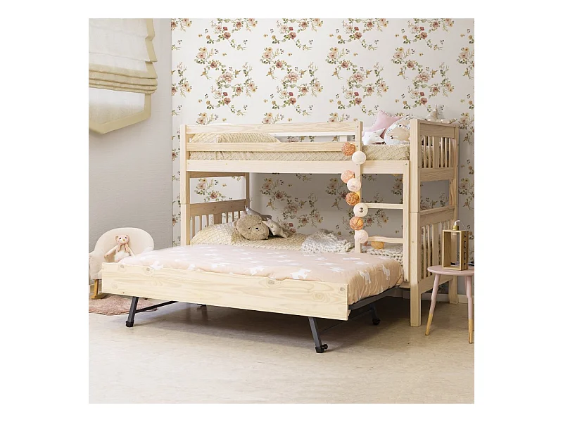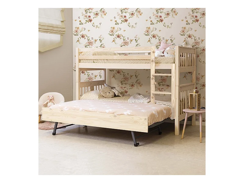 Lit superposé + lit pieds pliants bois blanc lavé 90x190cm