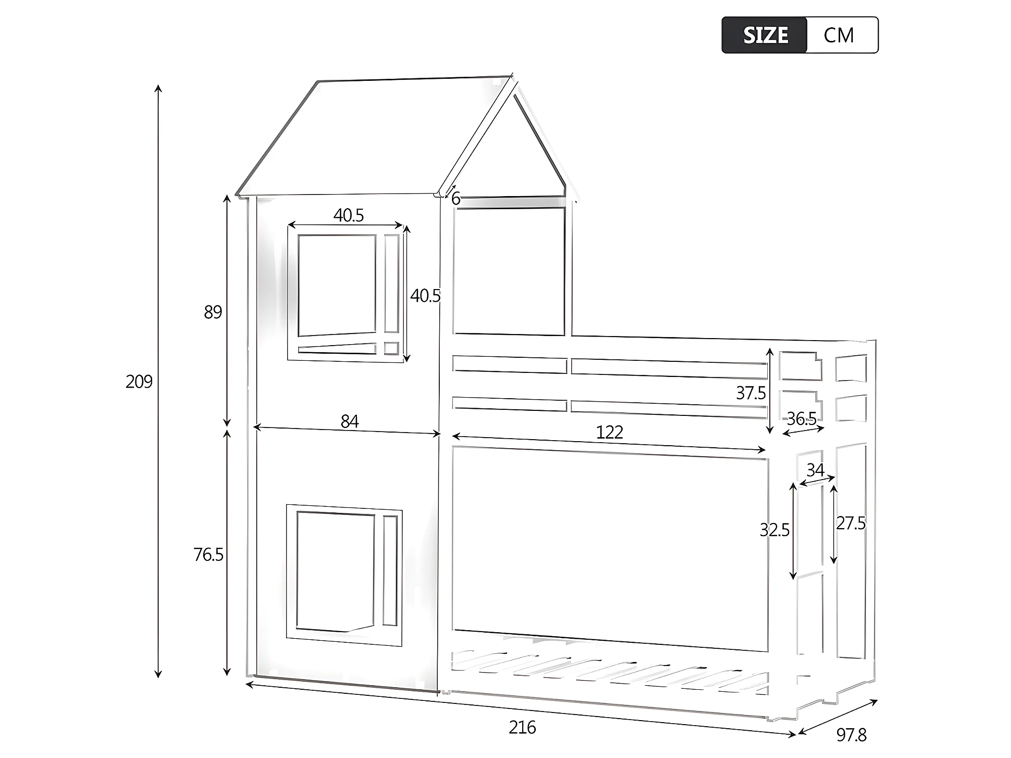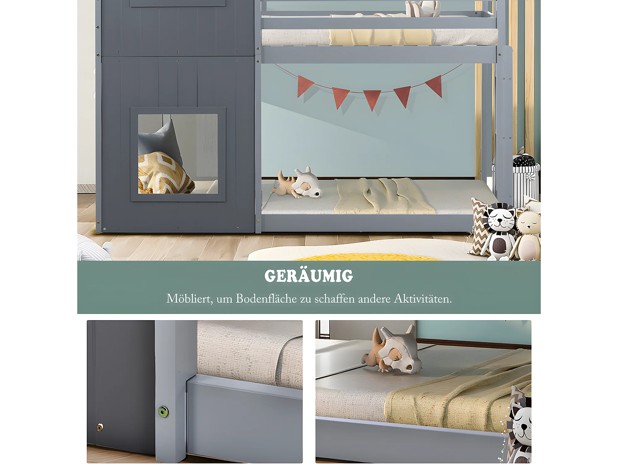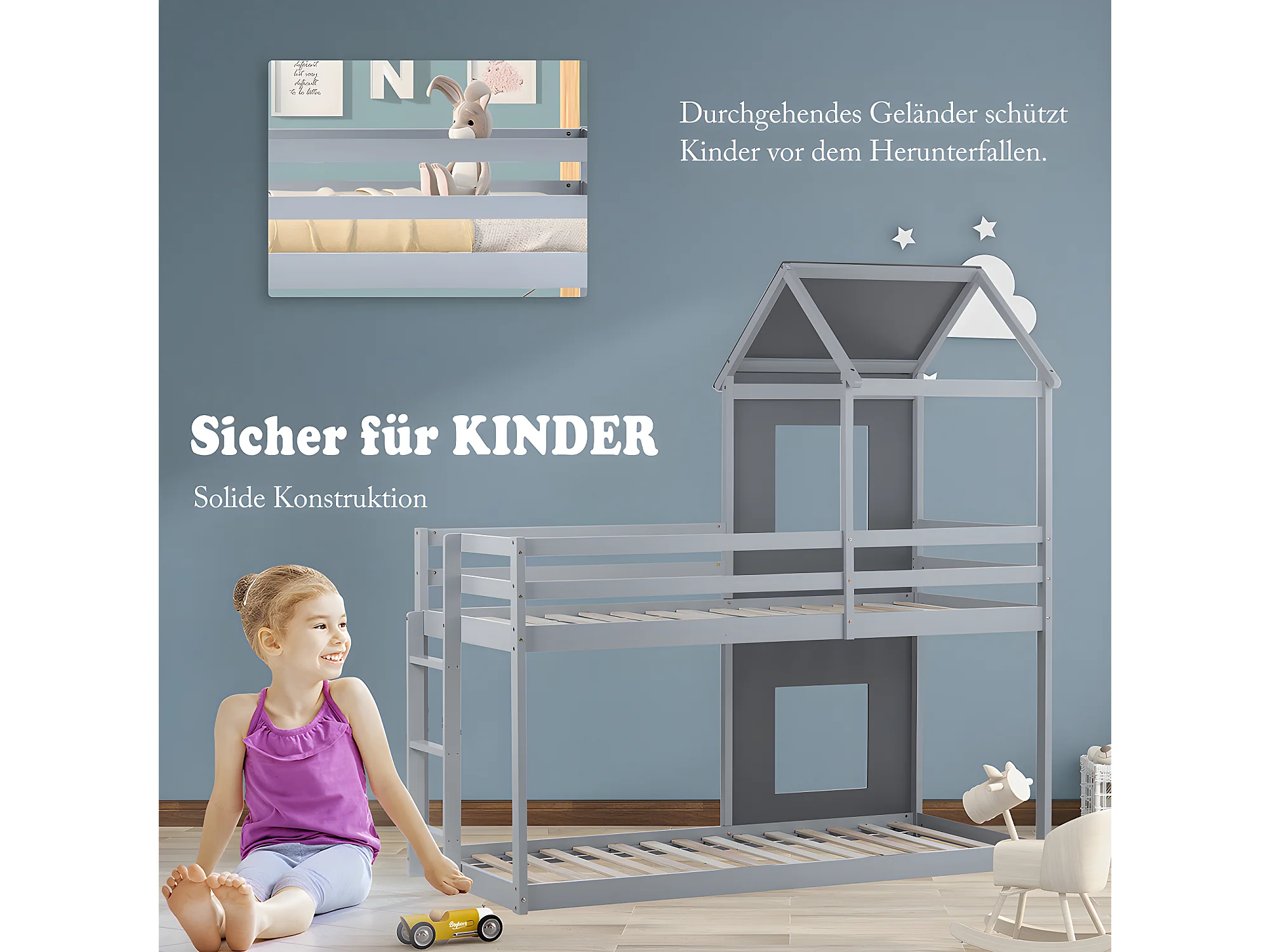 Lit superposé cabane - échelle - 90x200cm - pin massif - Gris - Sweiko