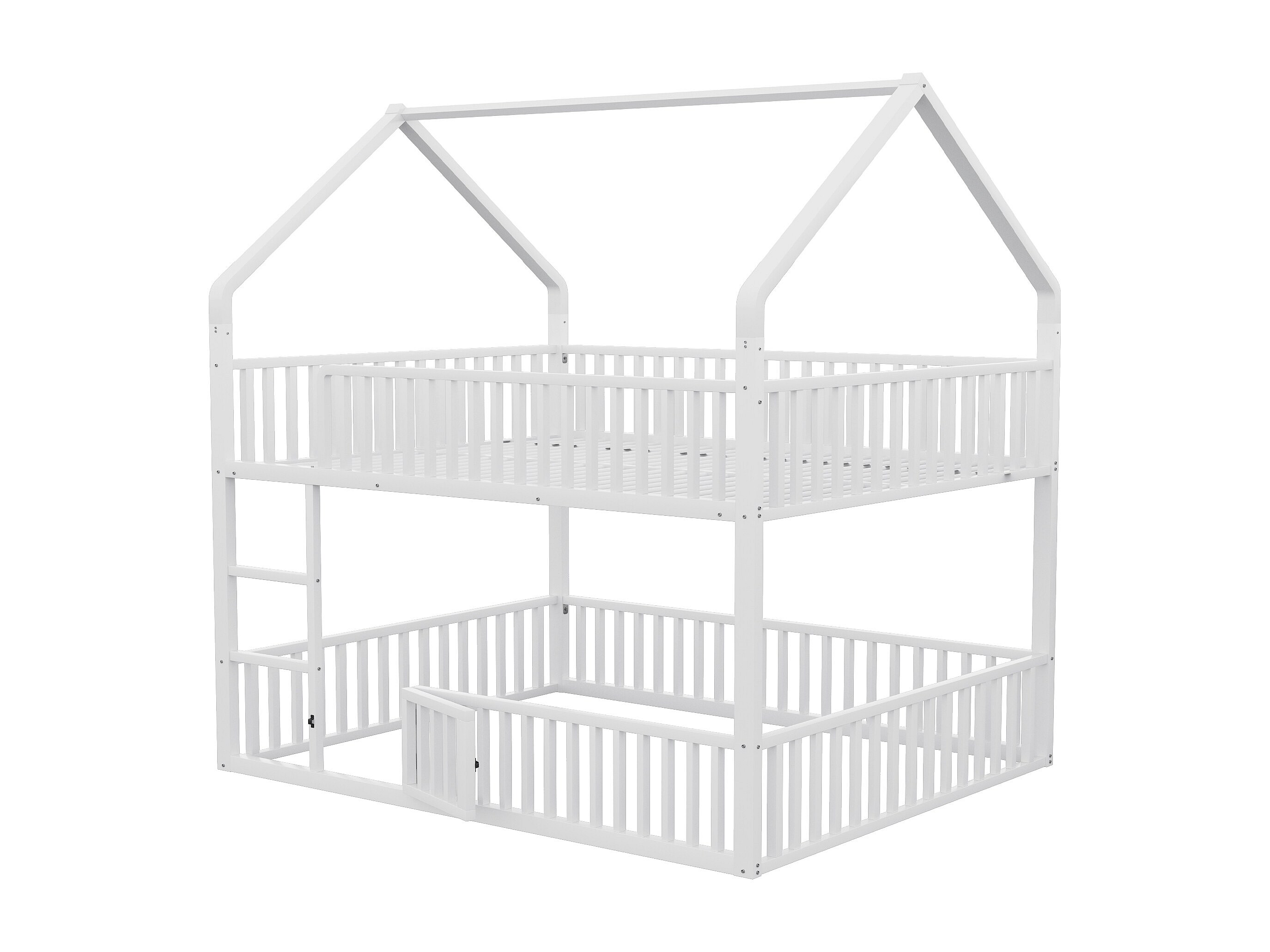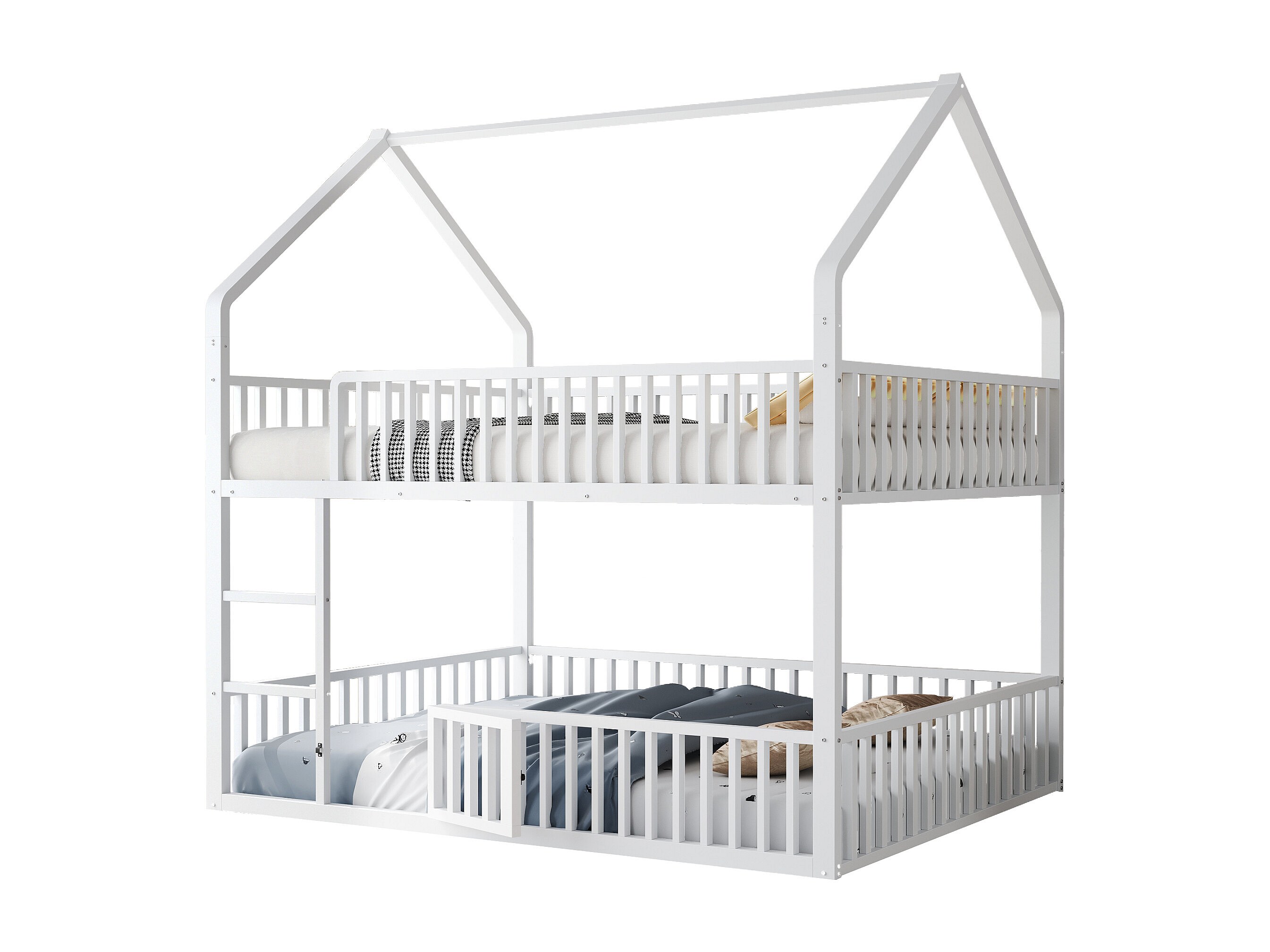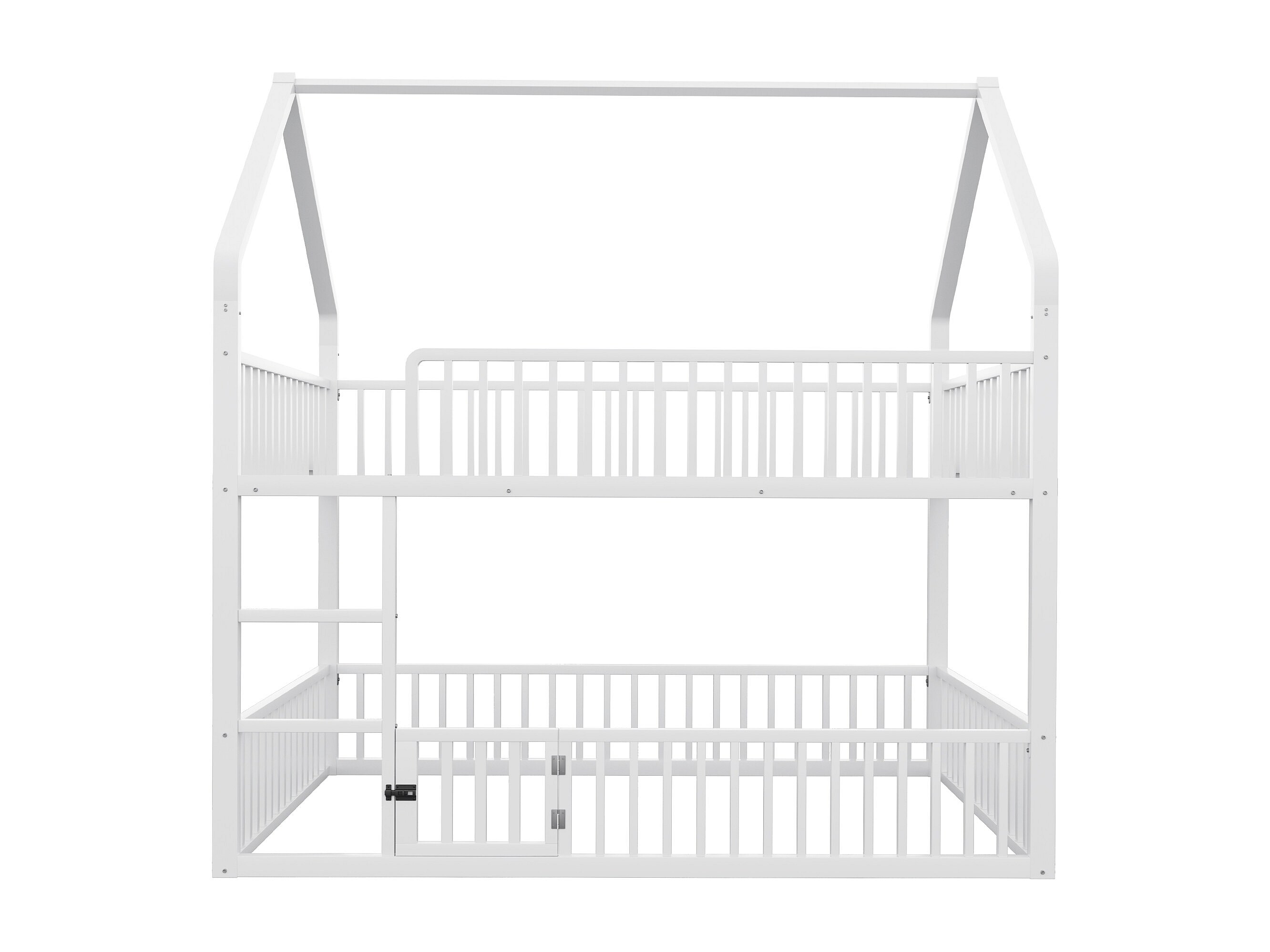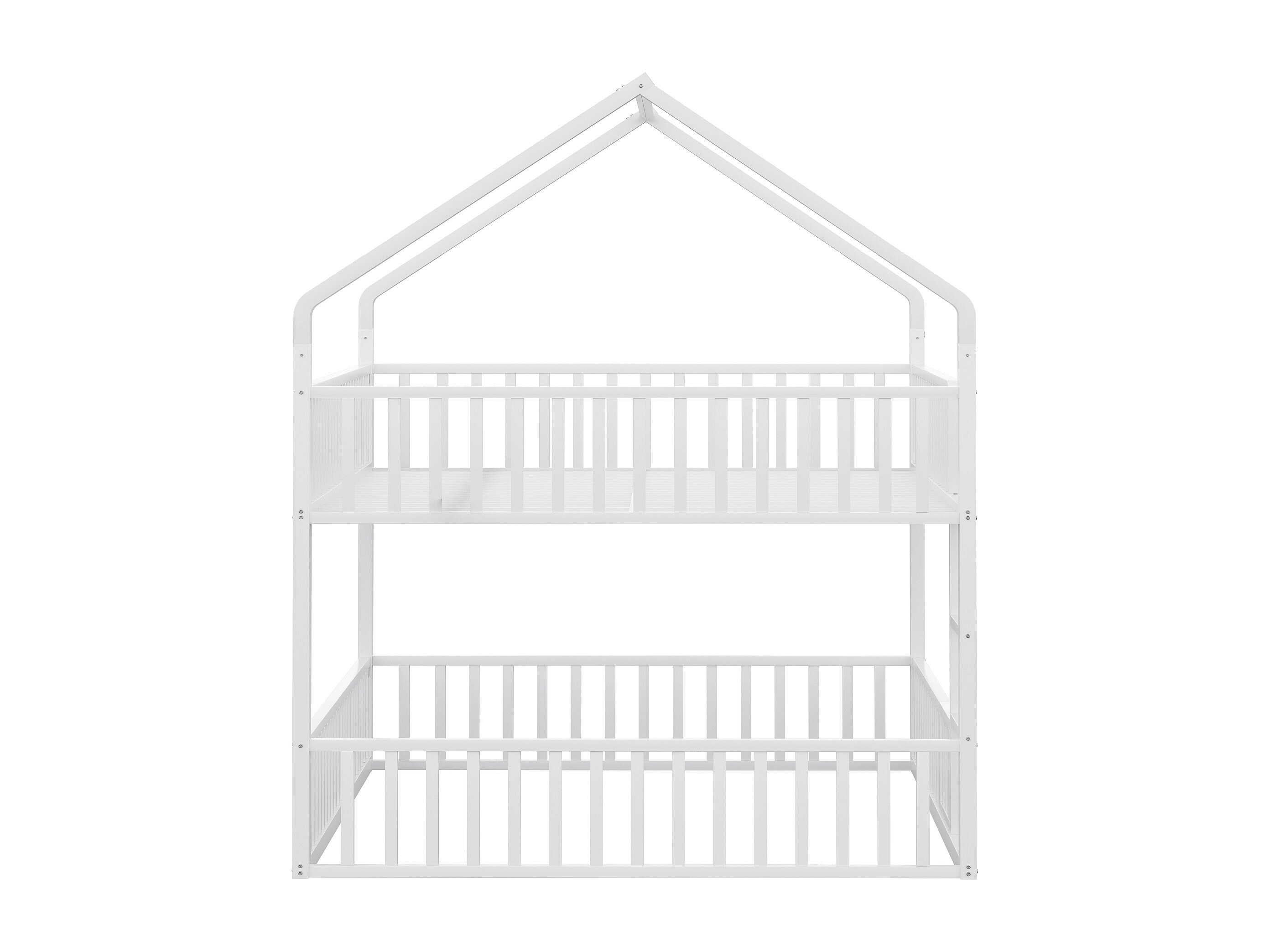 Lit superposé cabane enfant blanc 140x200cm avec échelle, structure en métal, sans matelas