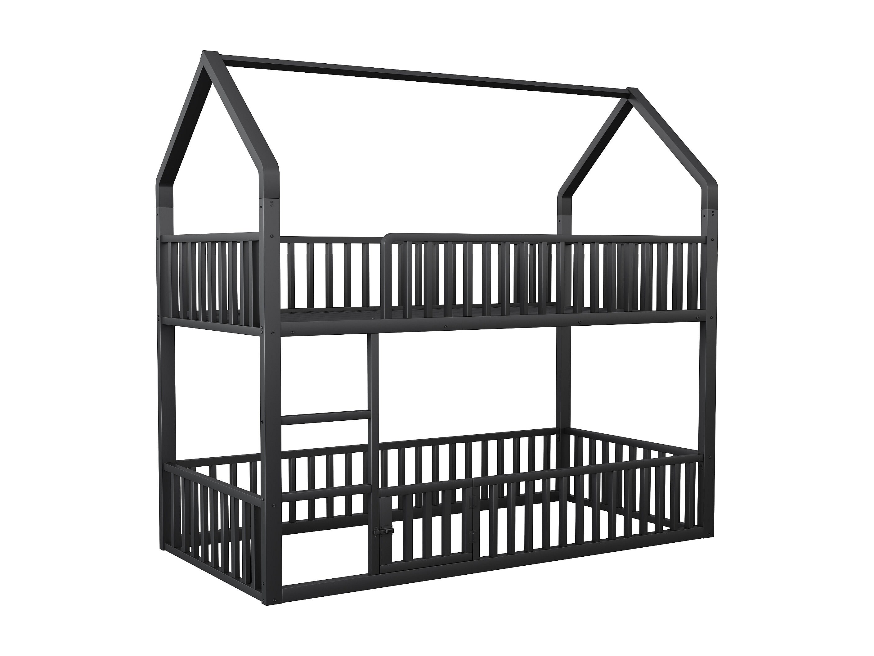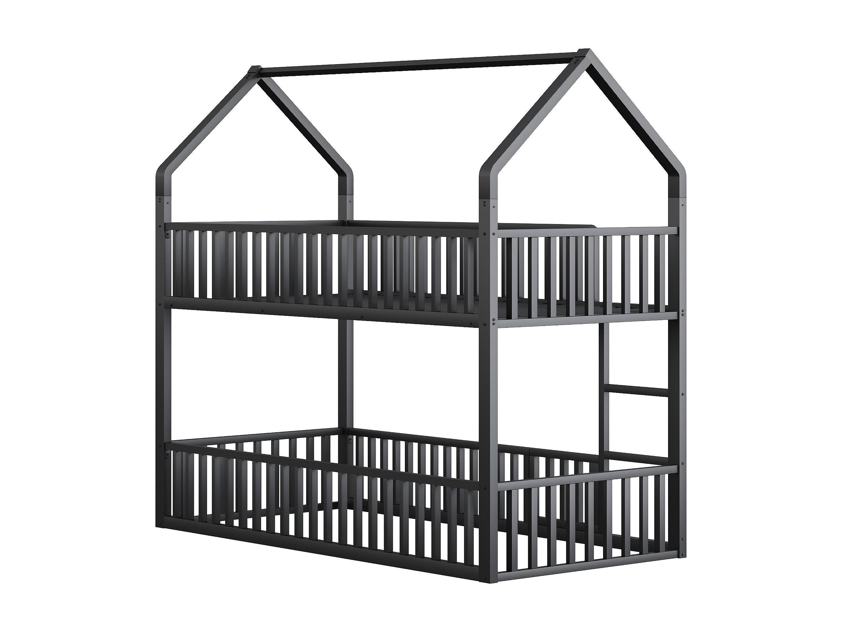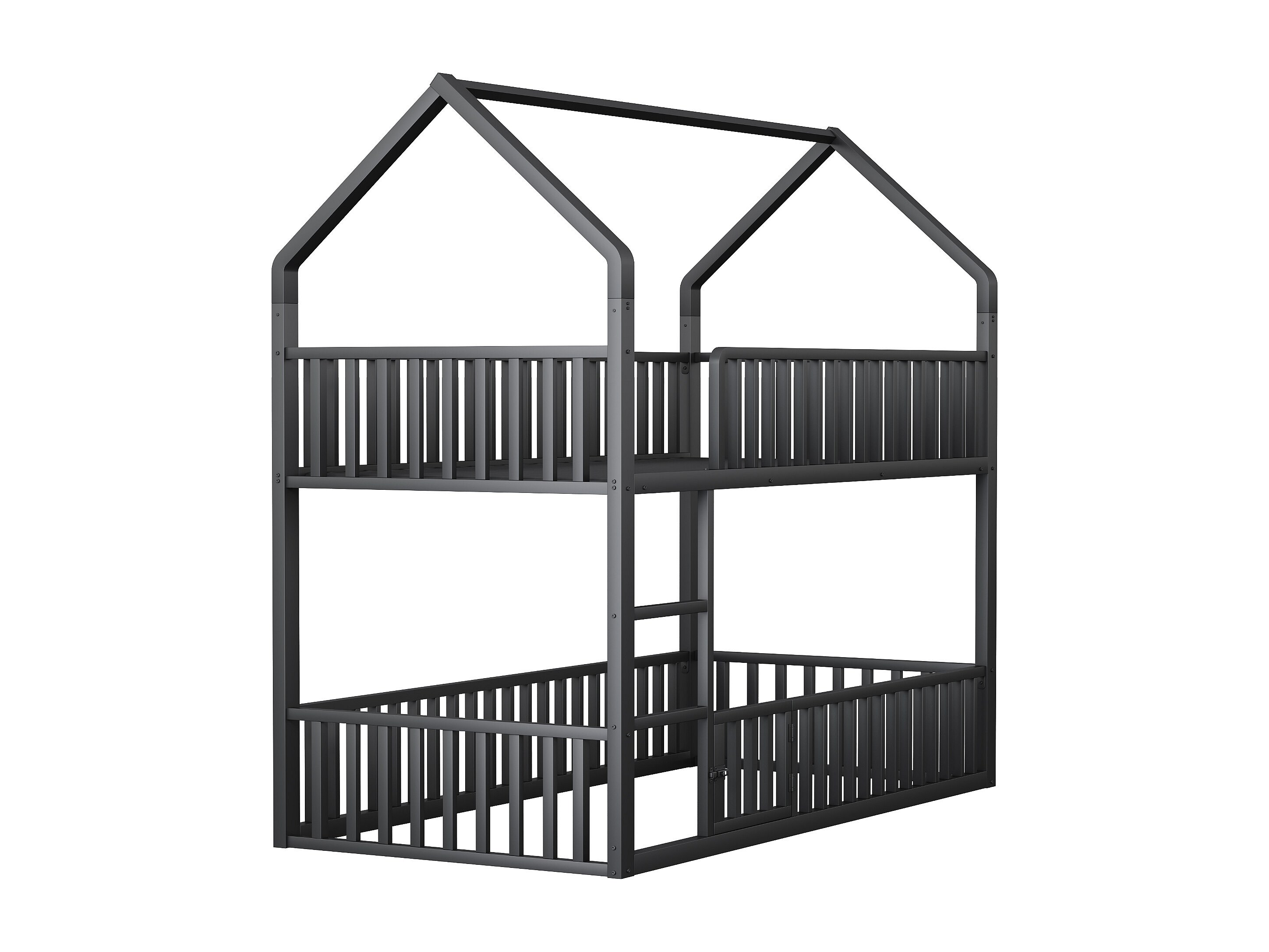 Lit superposé cabane enfant noir 90x200cm avec échelle, structure en métal, sans matelas