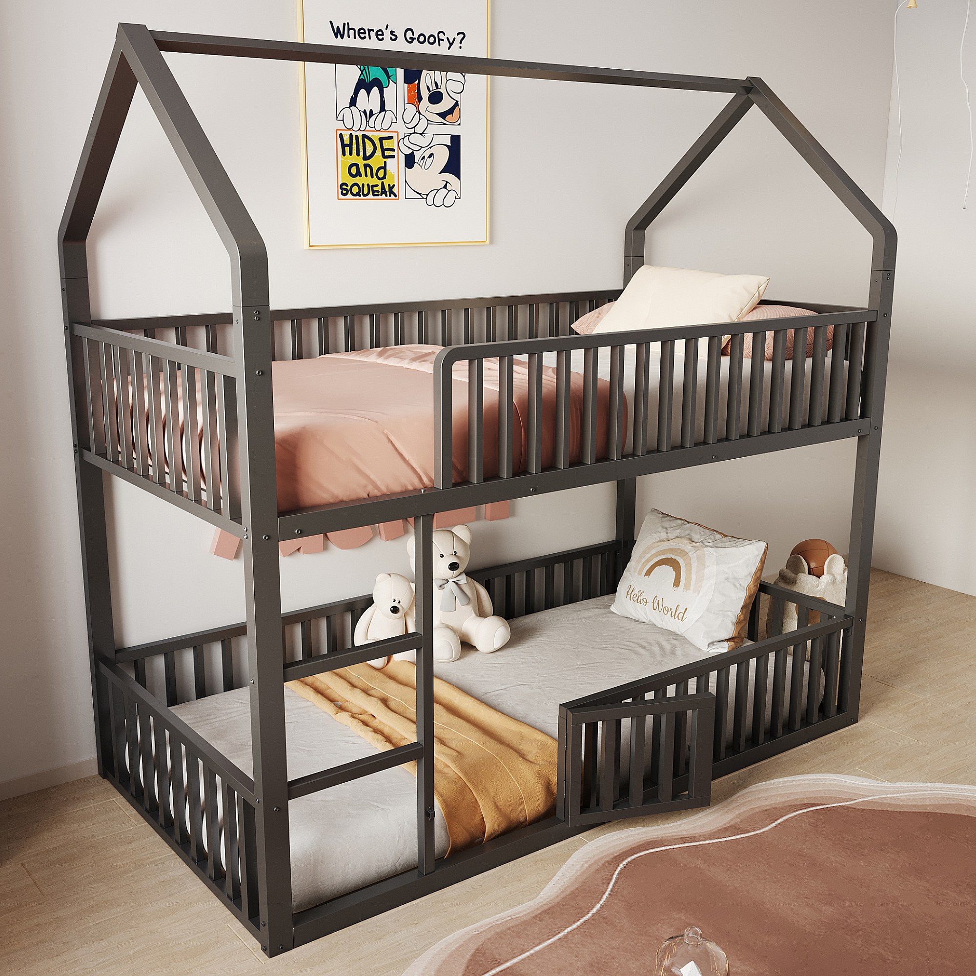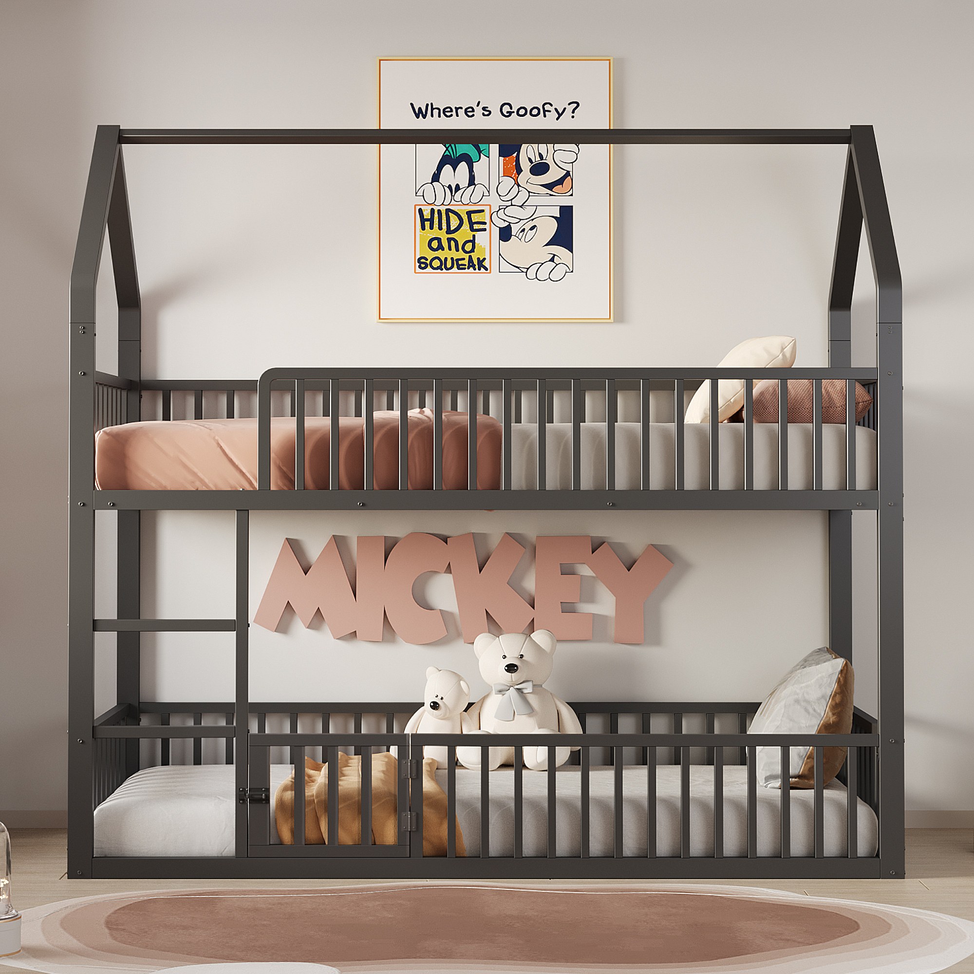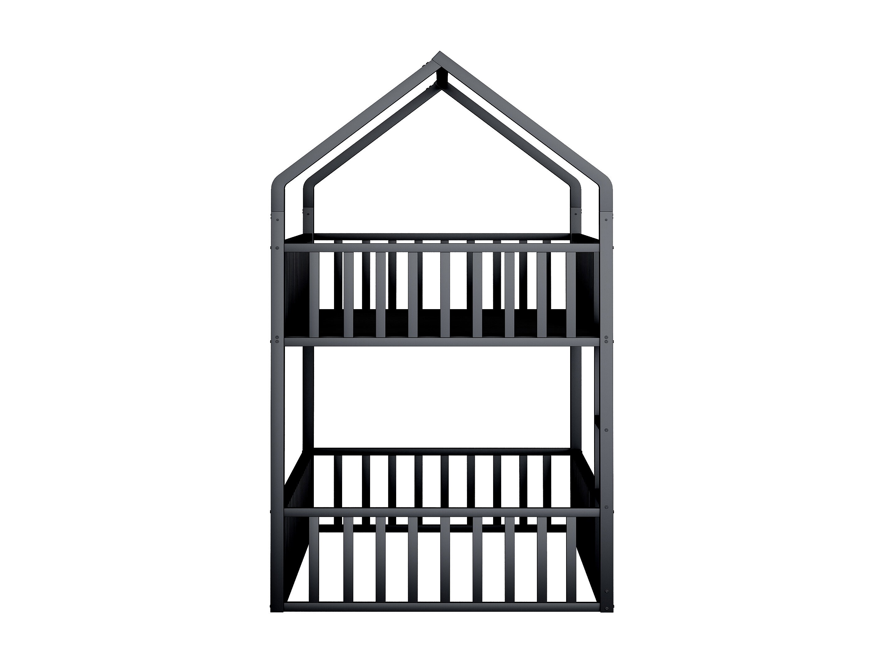 Lit superposé cabane enfant noir 90x200cm avec échelle, structure en métal, sans matelas