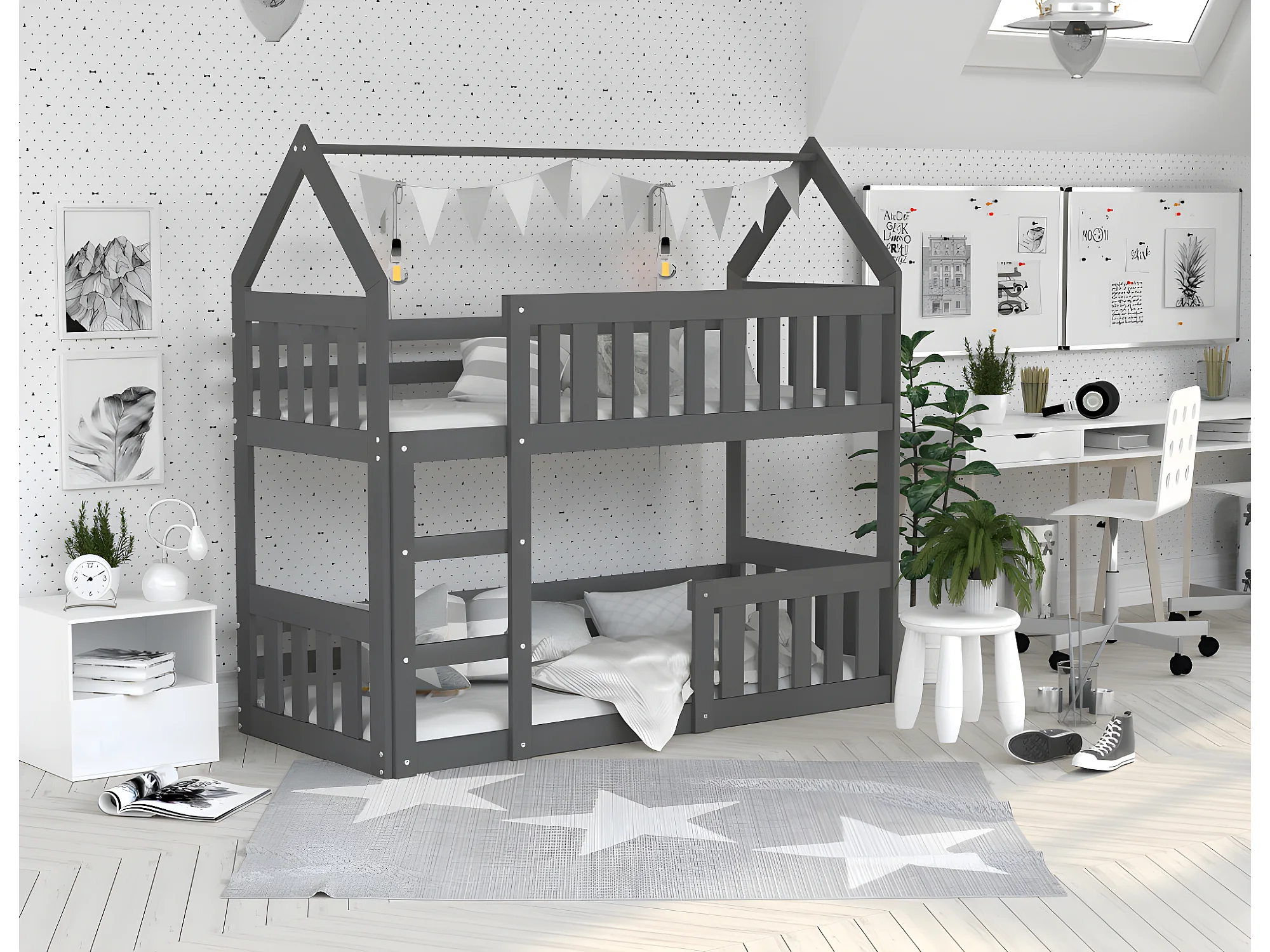 Lit Superposé Cabane Mini 90x190 Gris - gris Livré avec sommiers