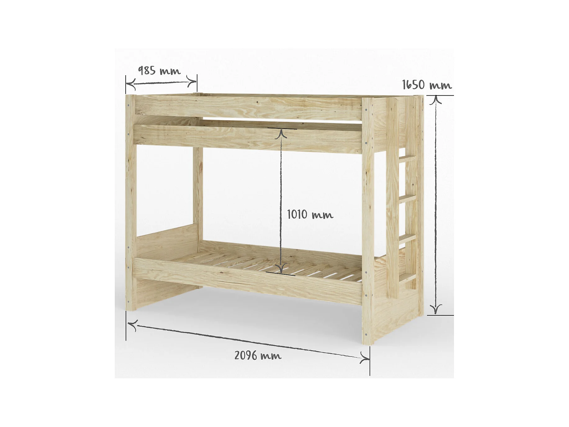Lit superposé 90x190 cm bois massif bois naturel ELORA