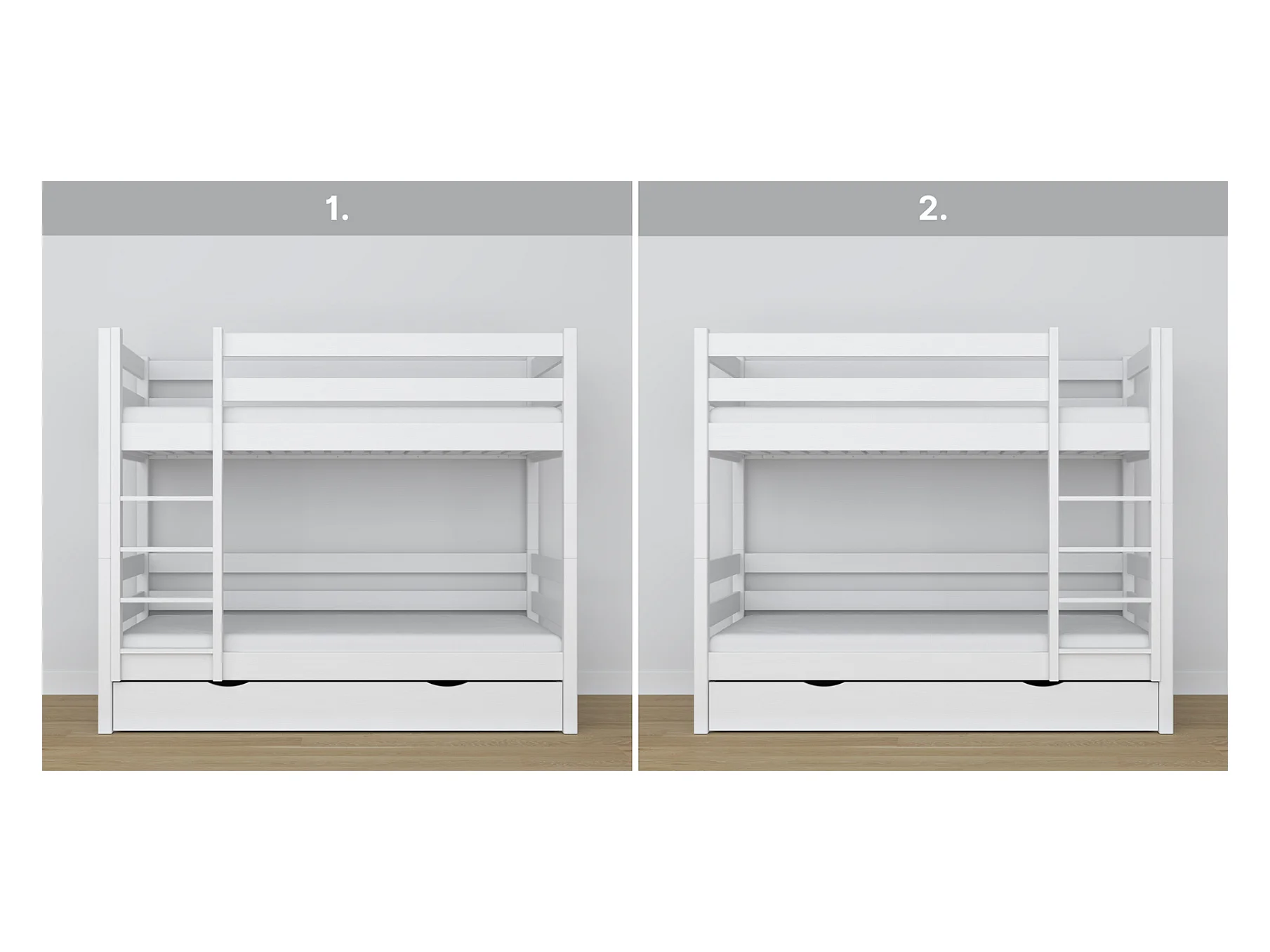 Lit superposé en bois - avec tiroir N01 Blanc 90x200