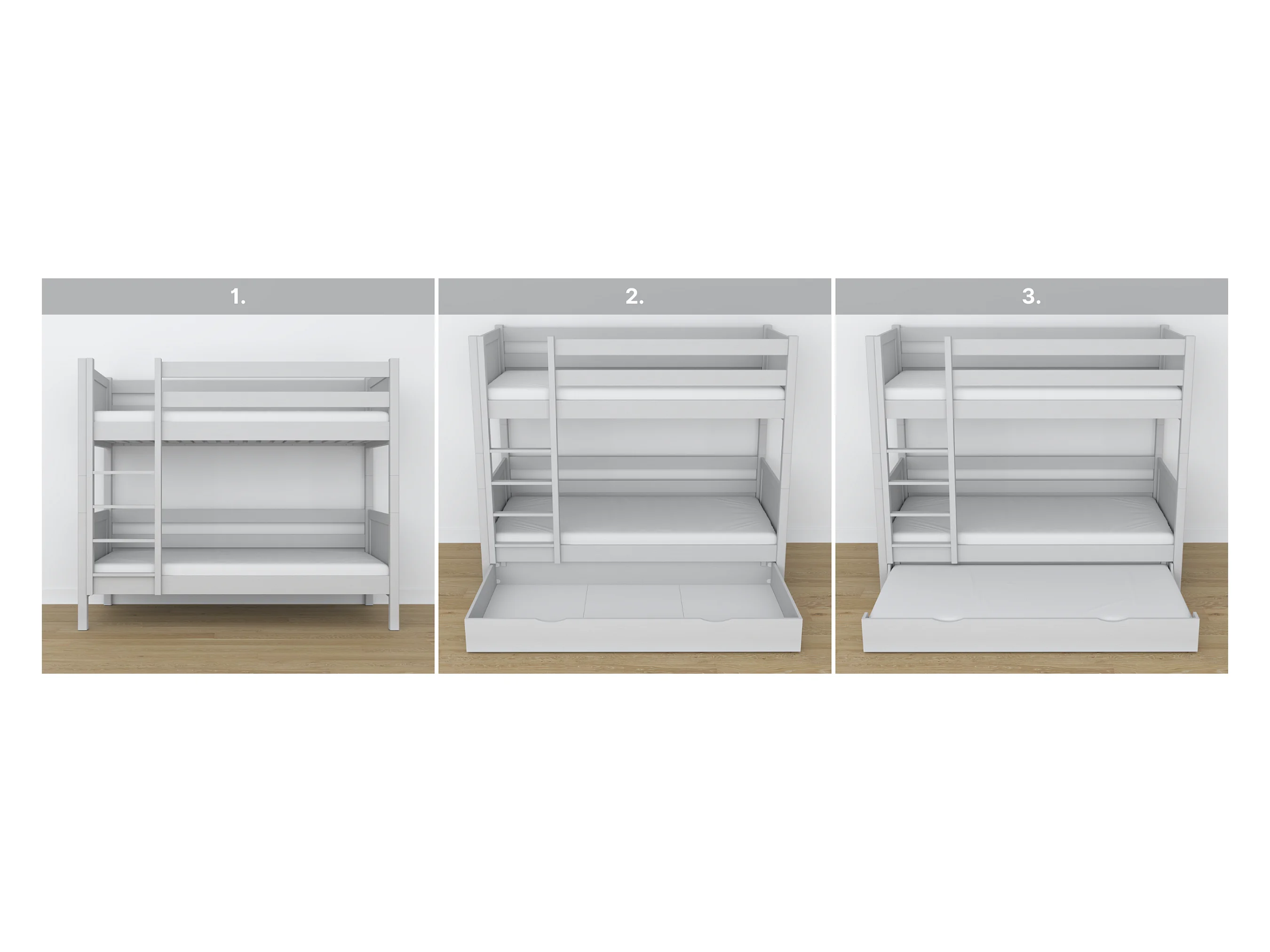 Lit superposé en bois - avec tiroir N02 Gris 90x190
