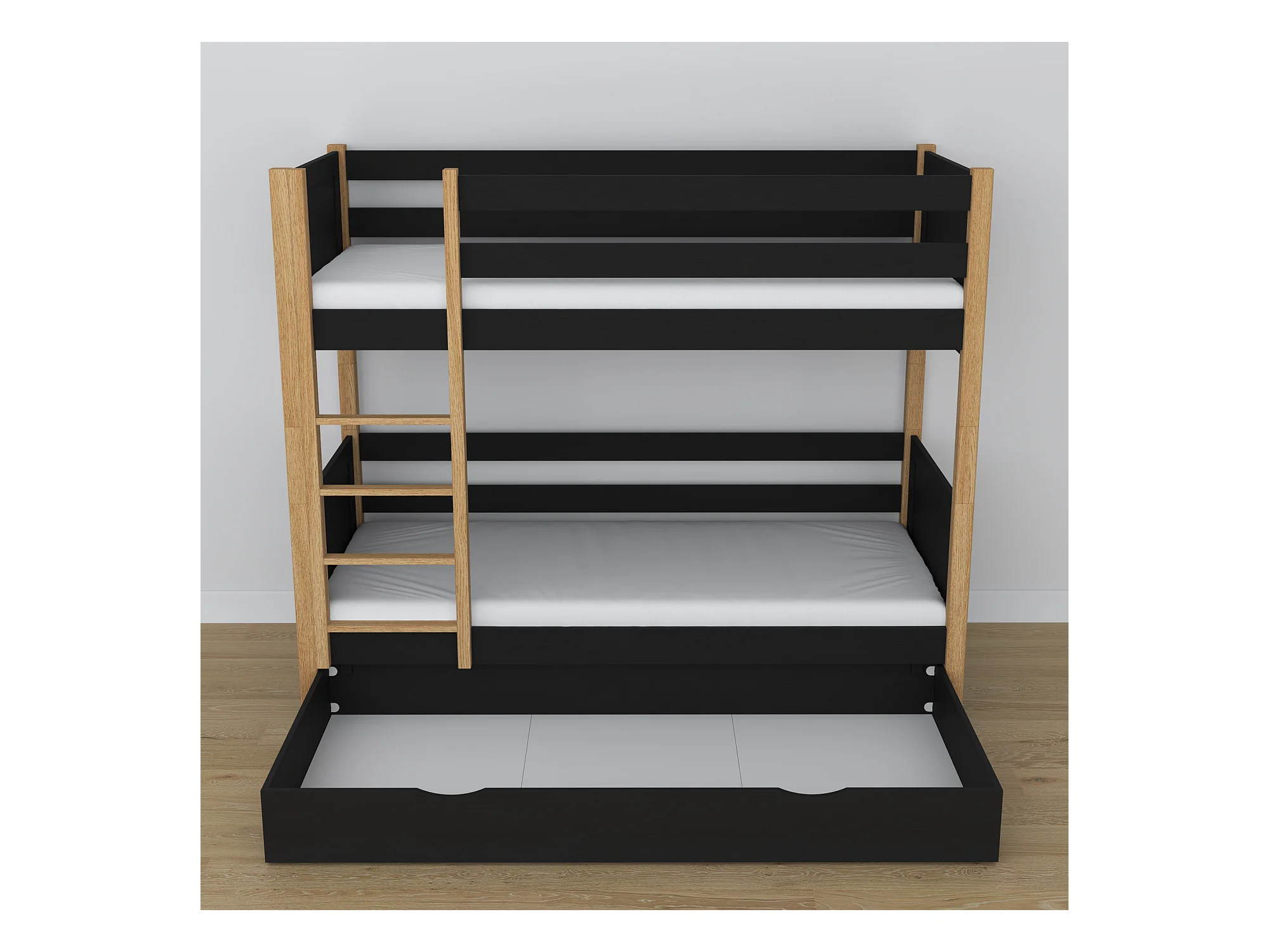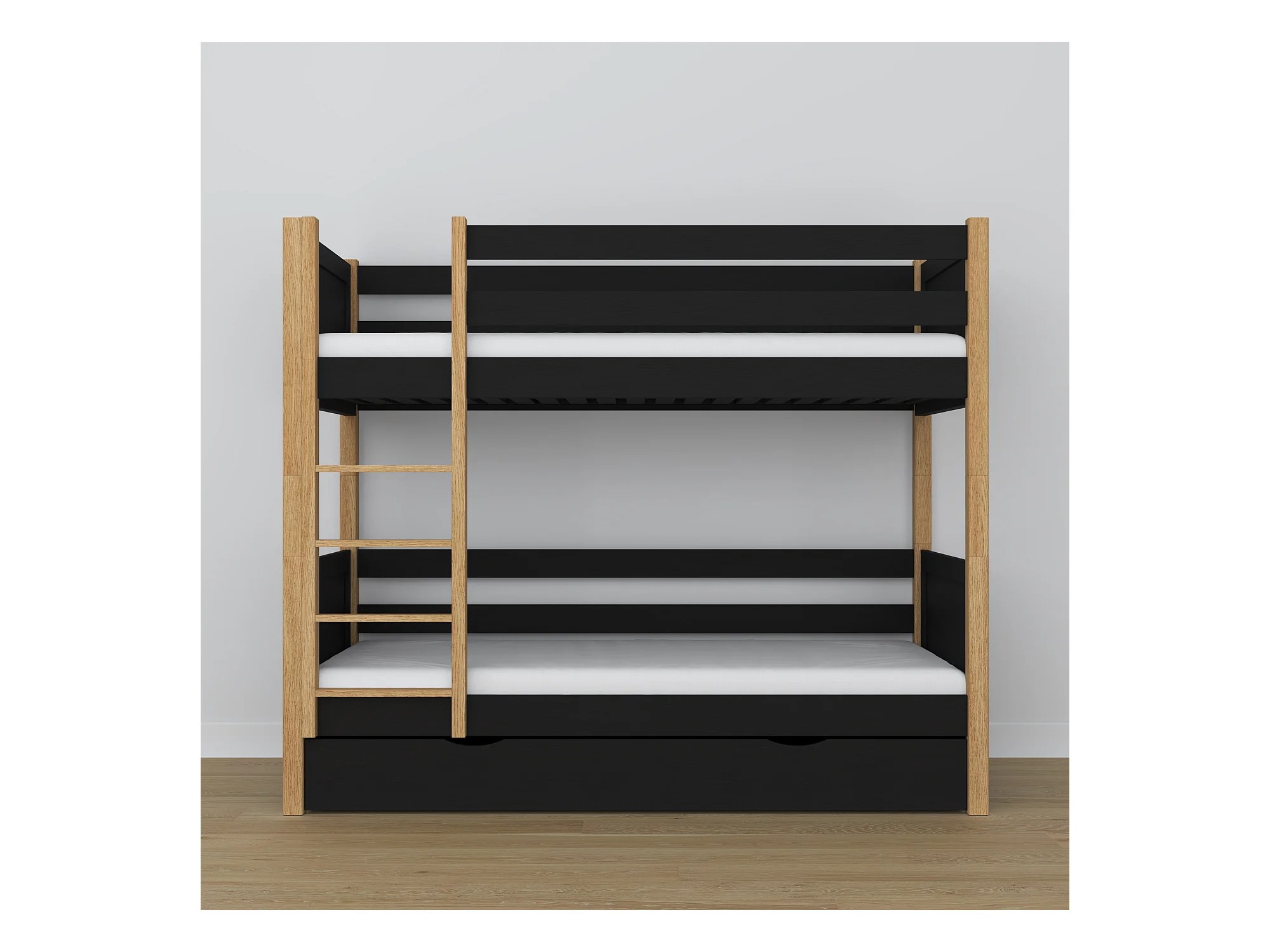 Lit superposé en bois - avec tiroir N02 Noir / Chêne Naturel 80x200
