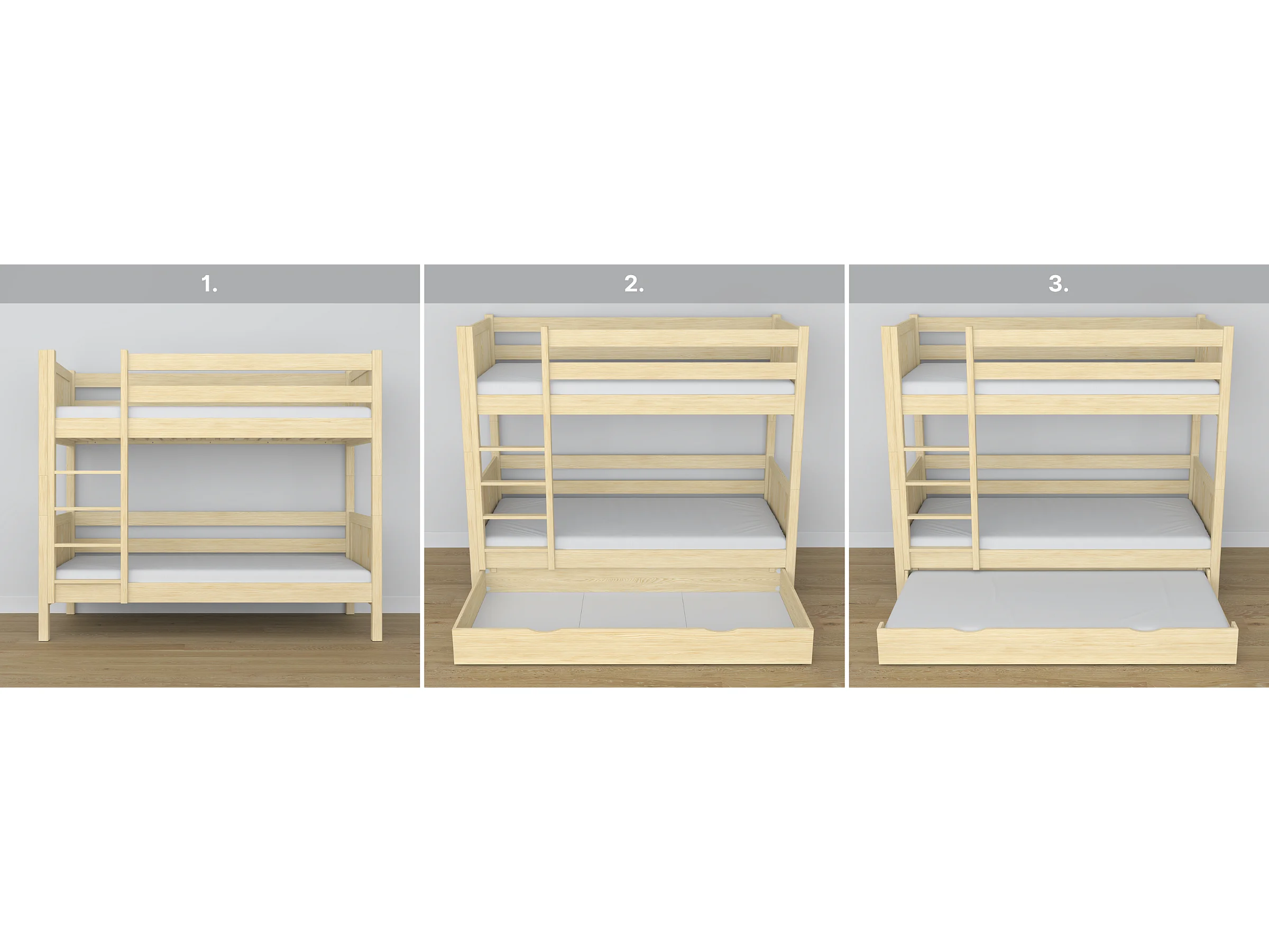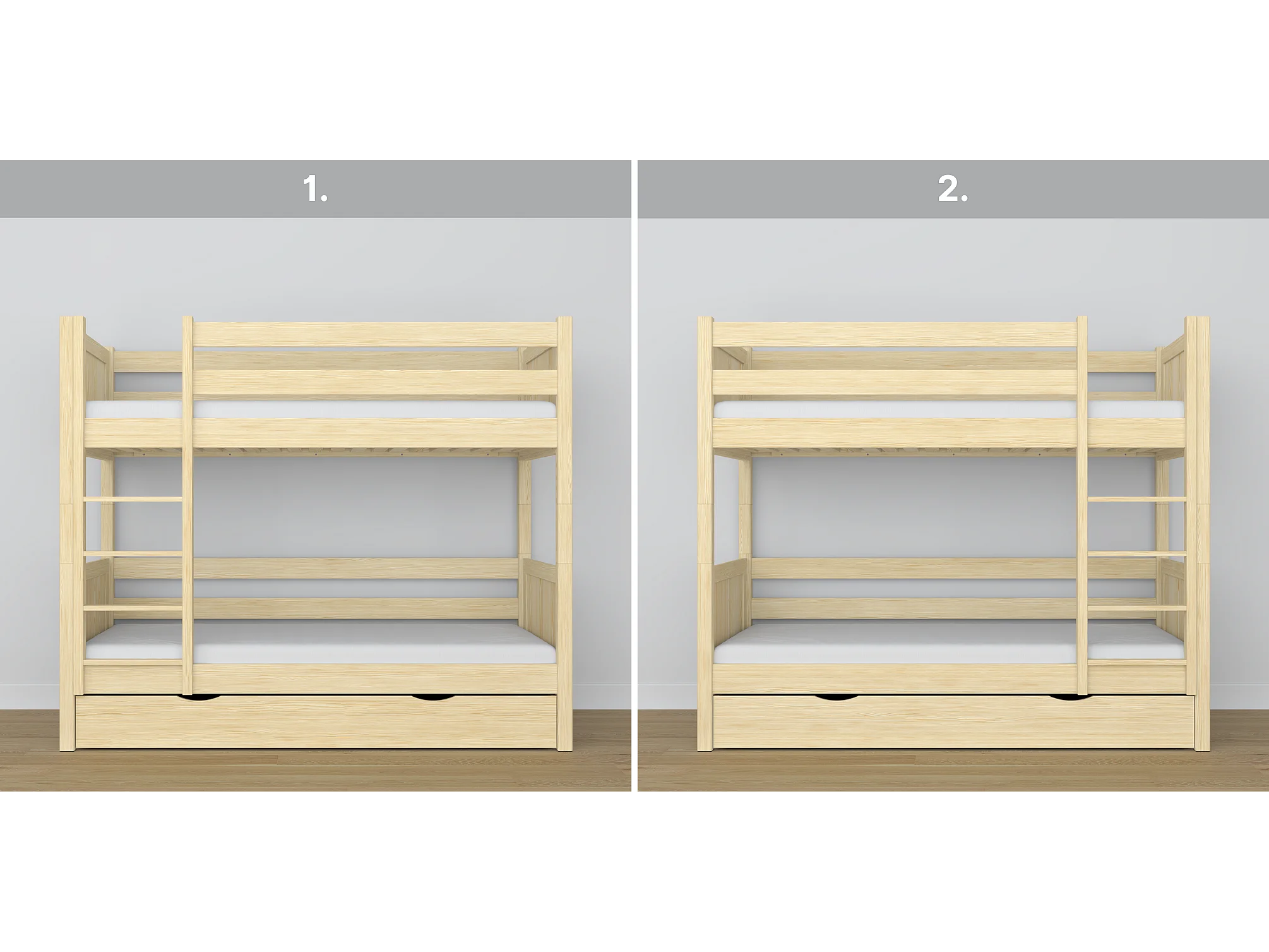 Lit superposé en bois - avec tiroir N02 Pin Clair 90x180