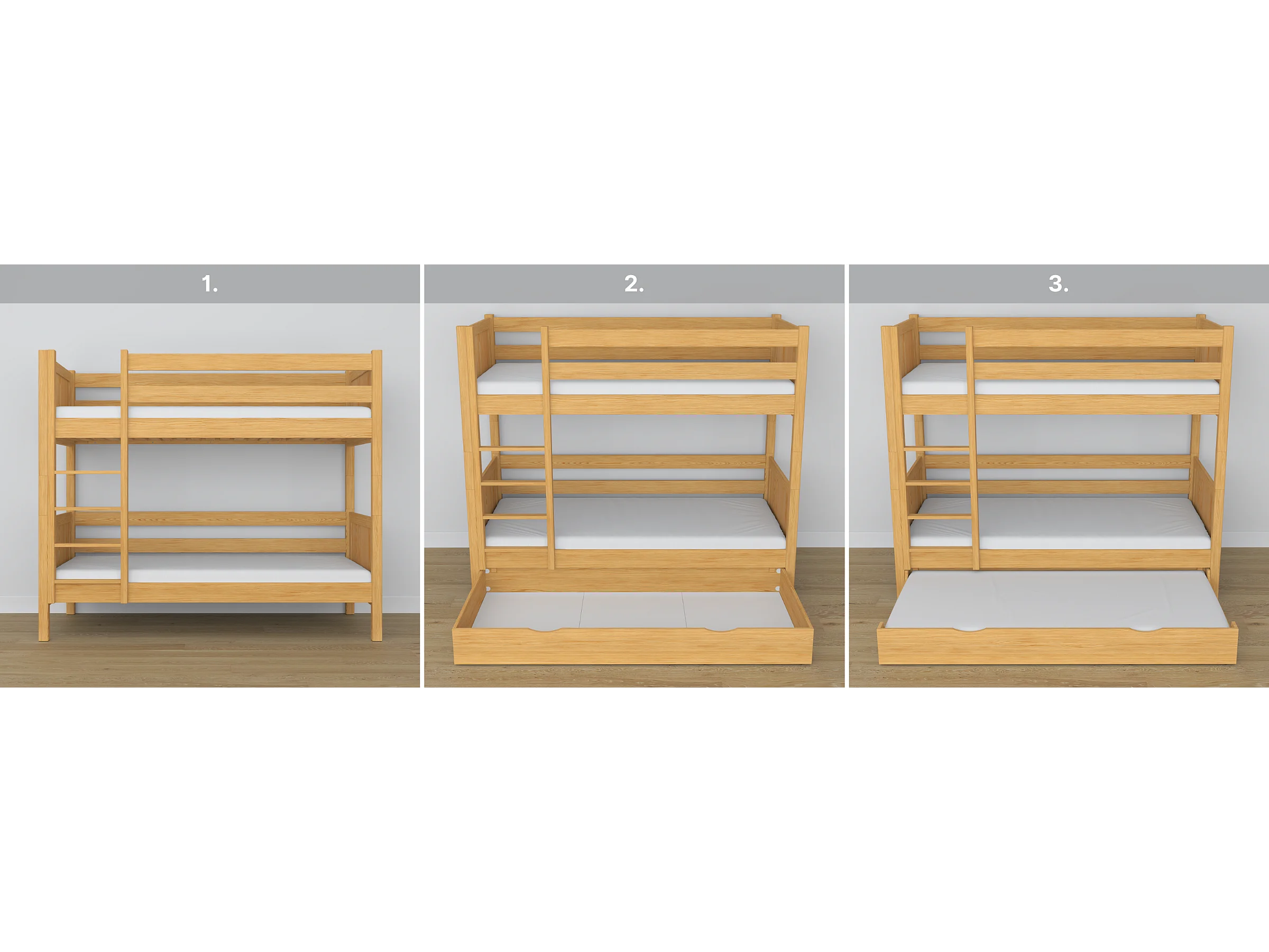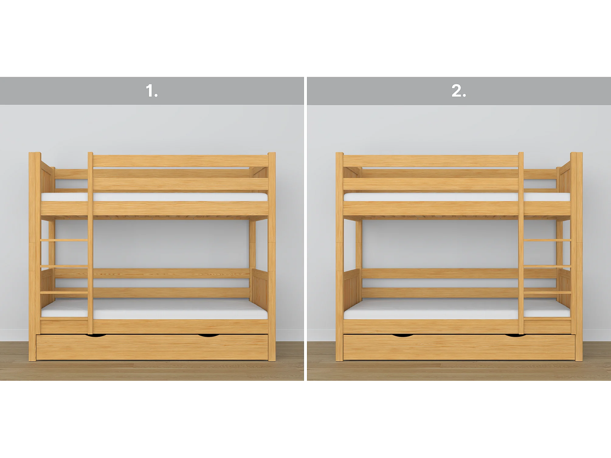 Lit superposé en bois - avec tiroir N02 Pin Naturel 100x200