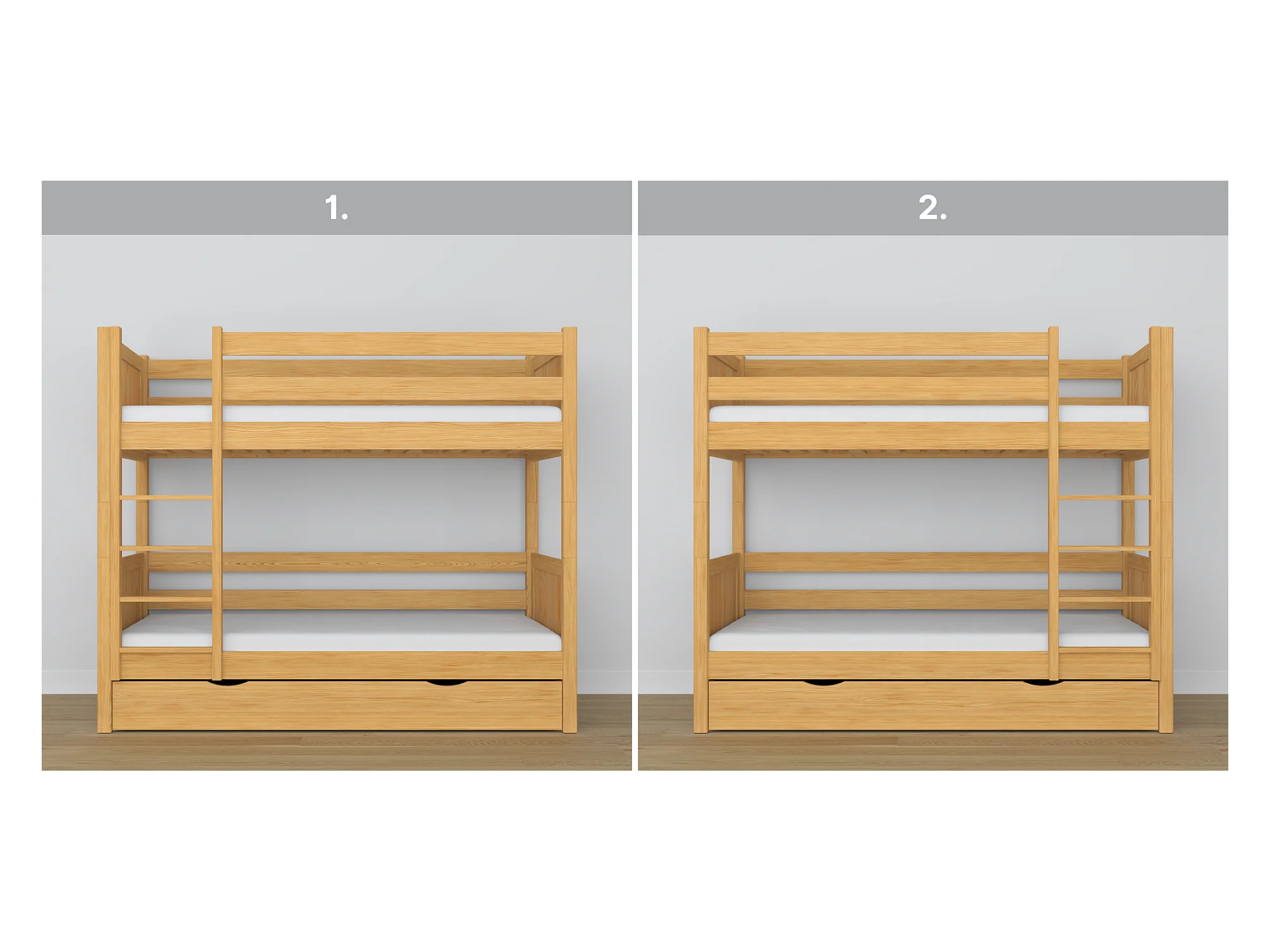 Lit superposé en bois - avec tiroir N02 Pin Naturel 80x190
