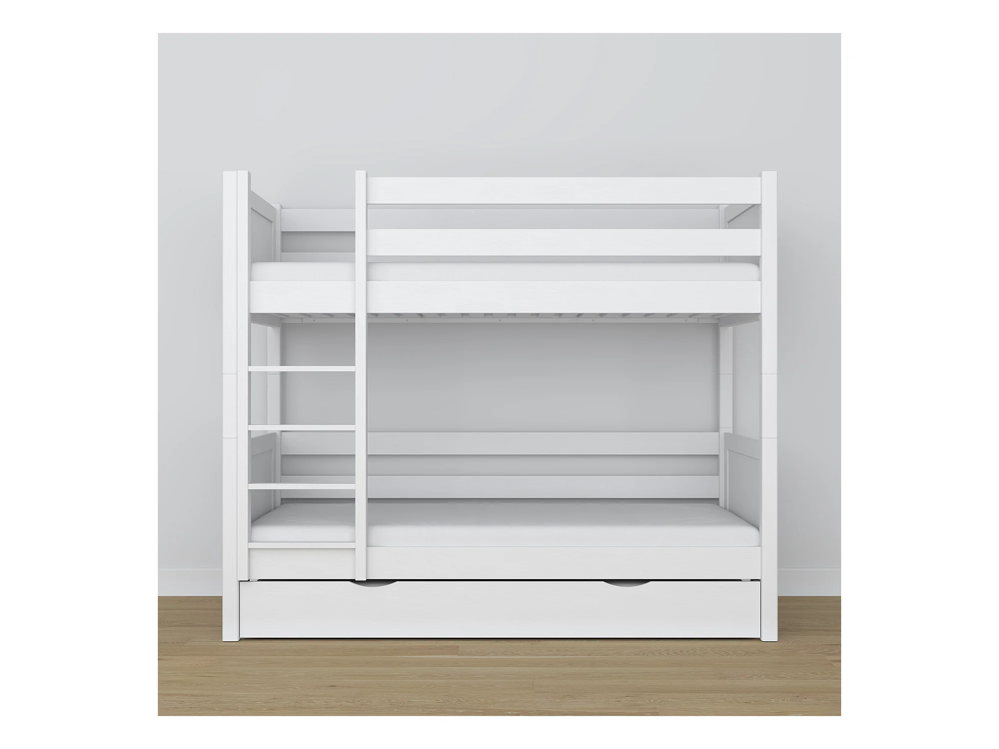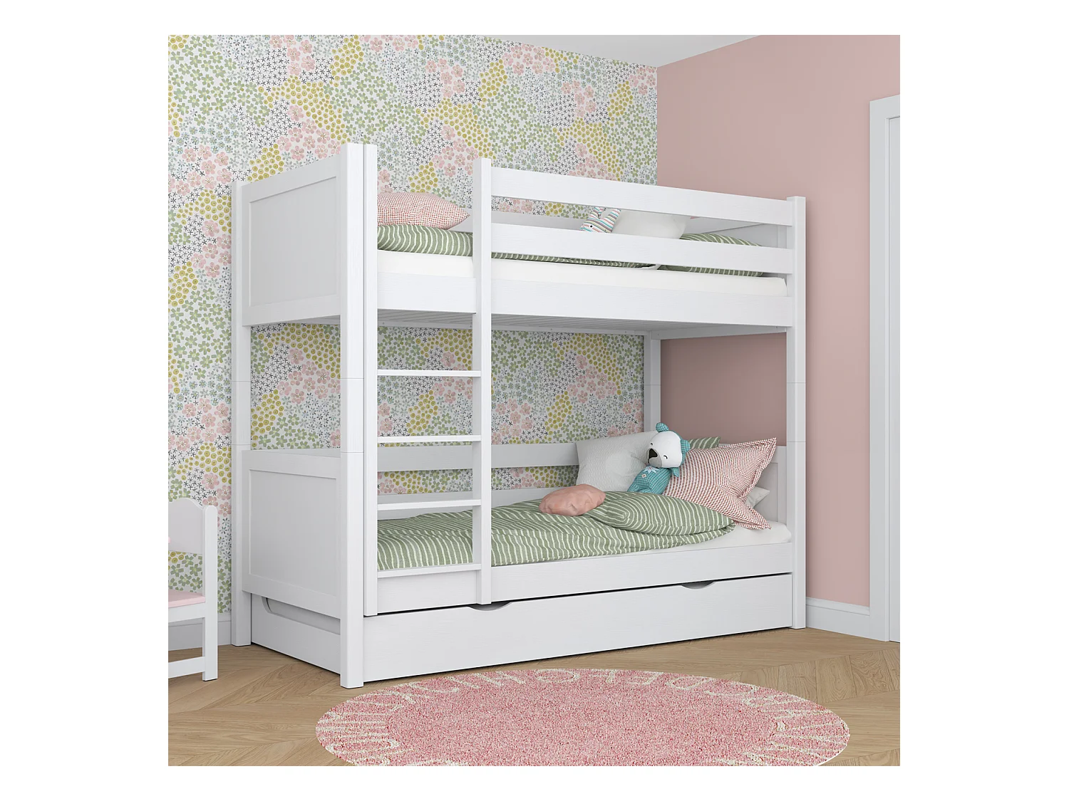 Lit superposé en bois - avec tiroir pour matelas N02 Blanc 100x200