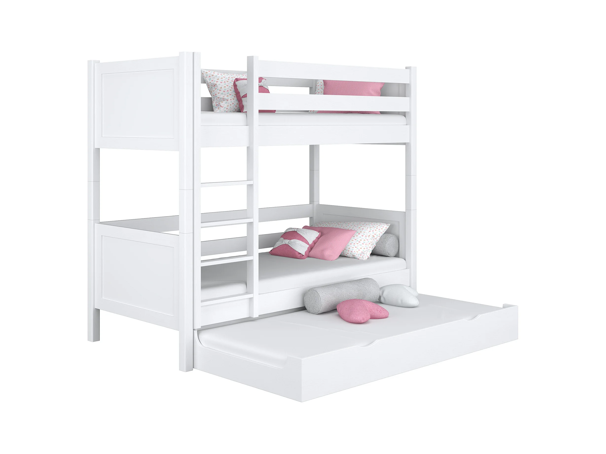 Lit superposé en bois - avec tiroir pour matelas N02 Blanc 120x180
