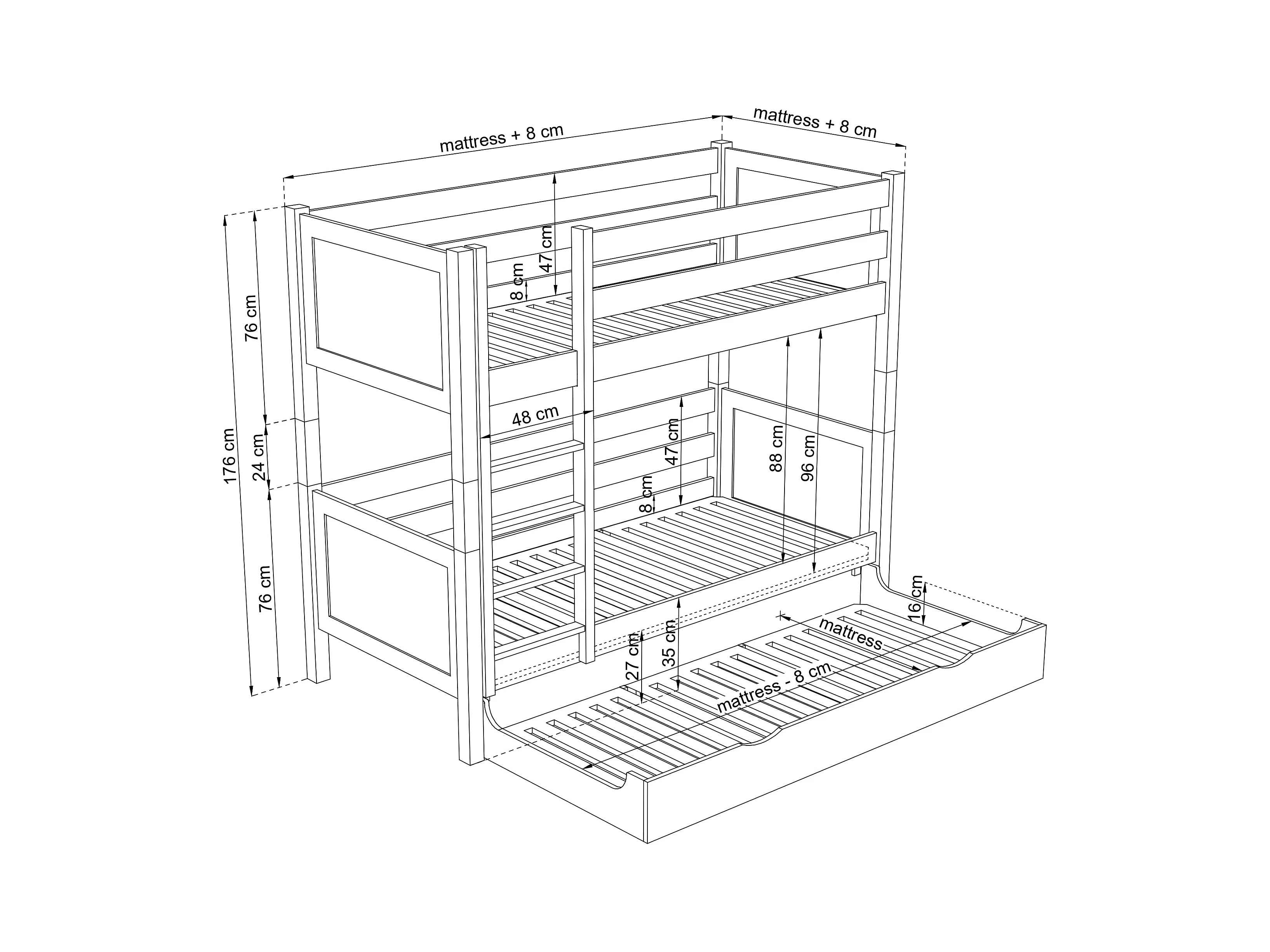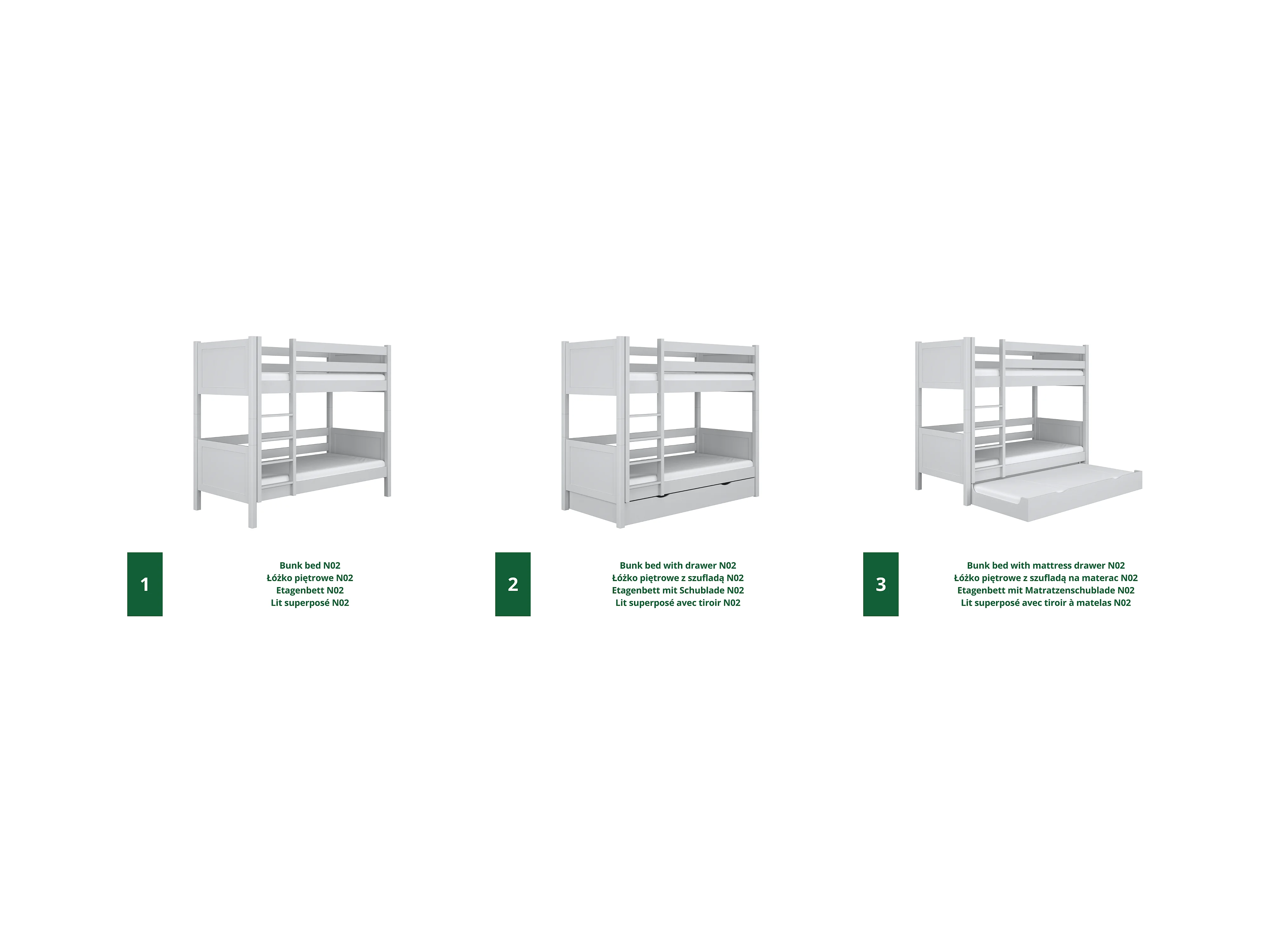 Lit superposé en bois - avec tiroir pour matelas N02 Gris 100x200