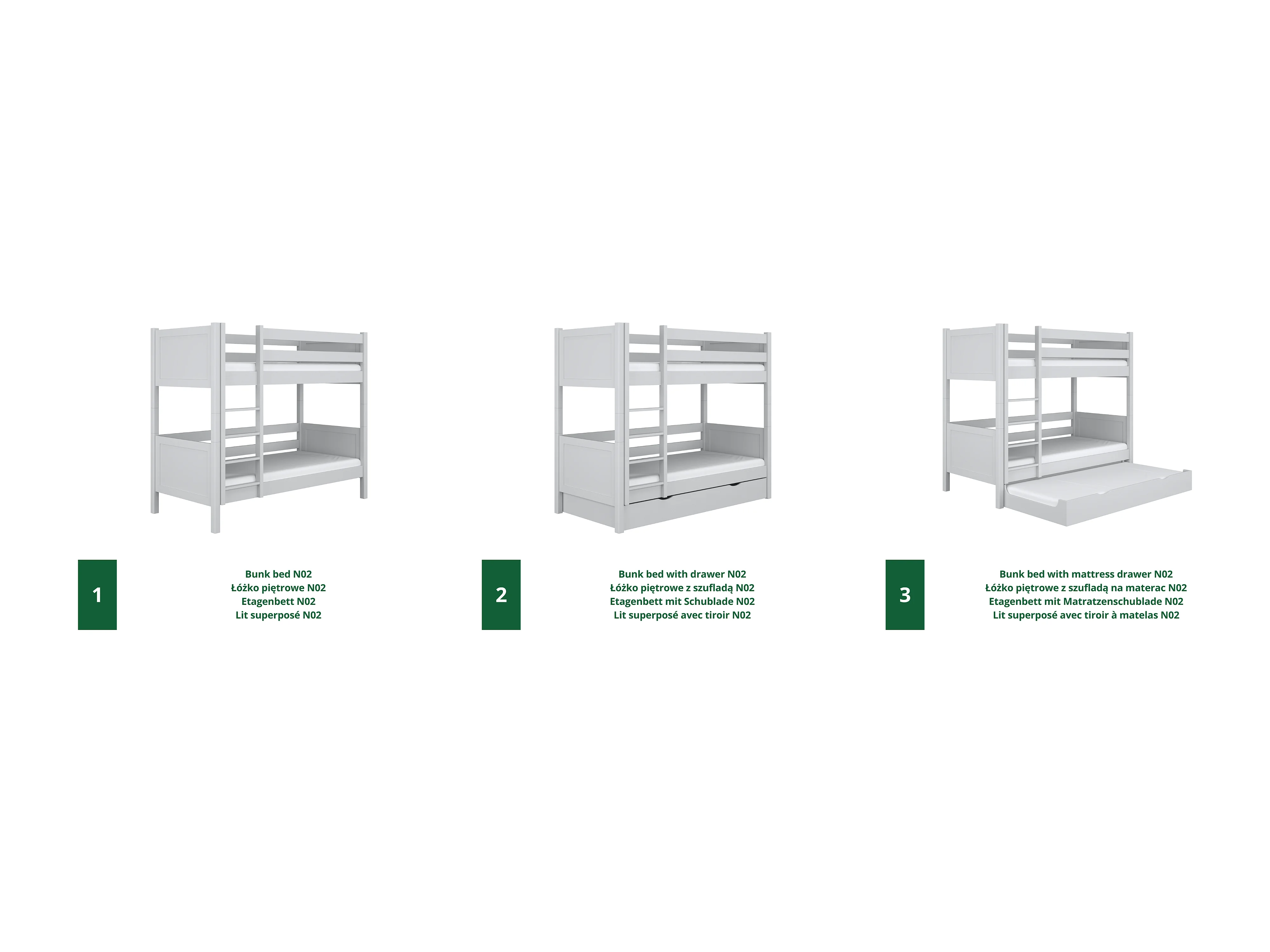 Lit superposé en bois - avec tiroir pour matelas N02 Gris 90x190