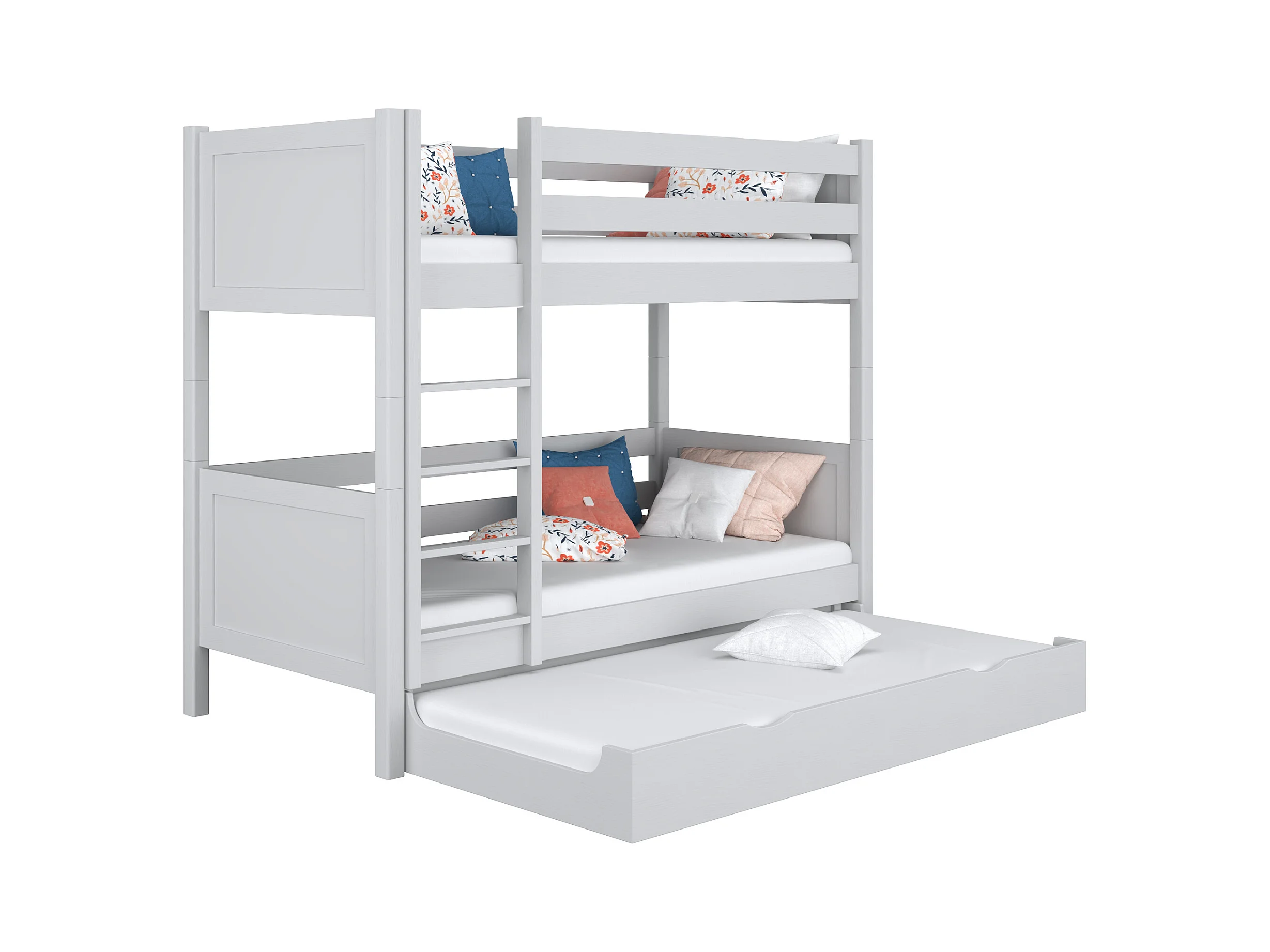 Lit superposé en bois - avec tiroir pour matelas N02 Gris 90x200
