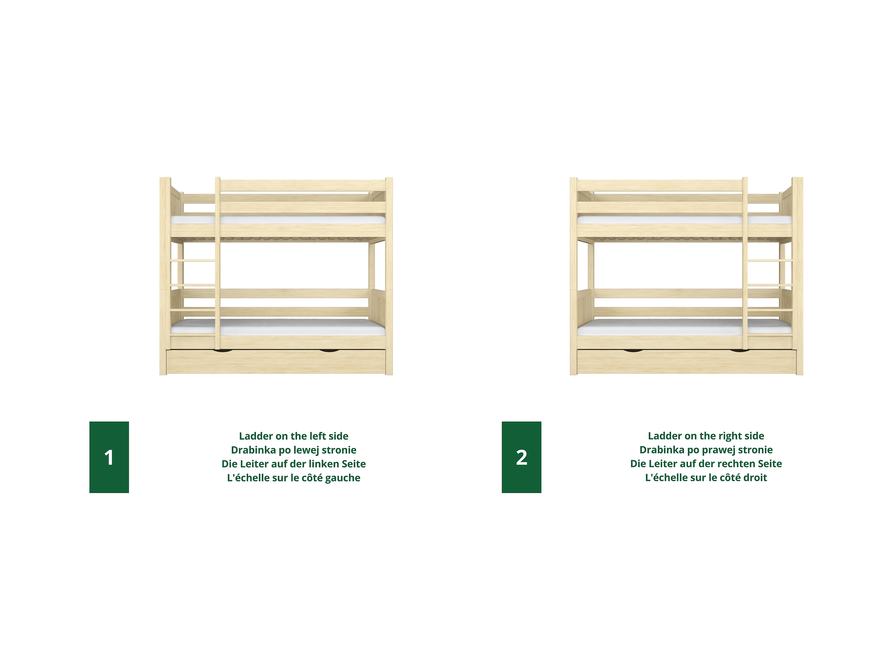 Lit superposé en bois - avec tiroir pour matelas N02 Pin Clair 80x190
