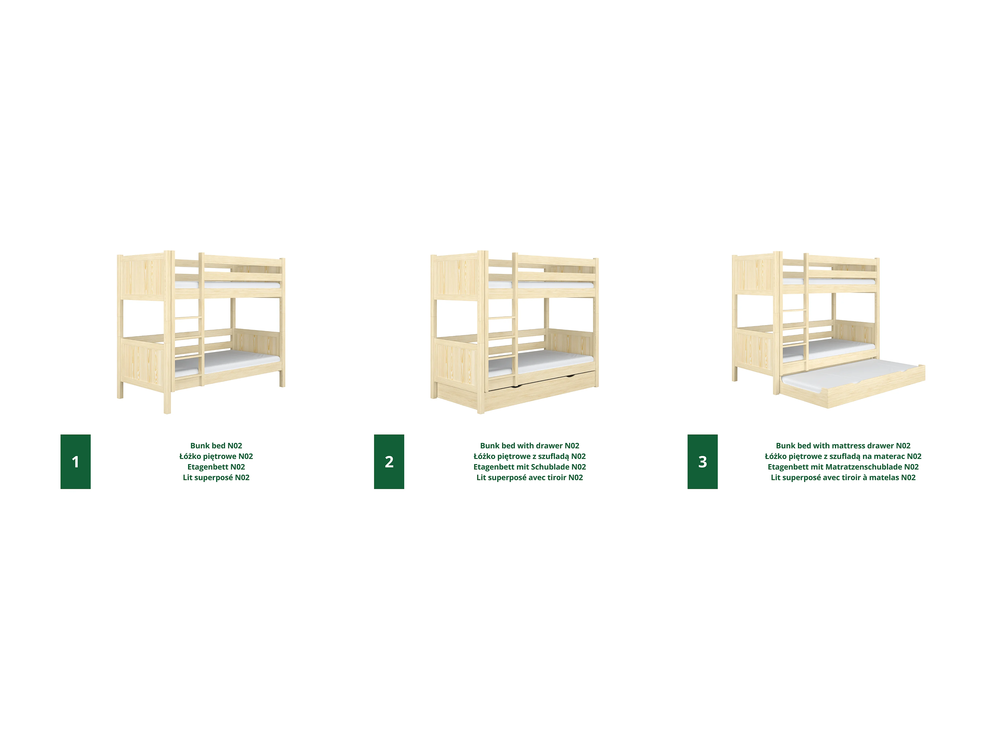 Lit superposé en bois - avec tiroir pour matelas N02 Pin Clair 90x190