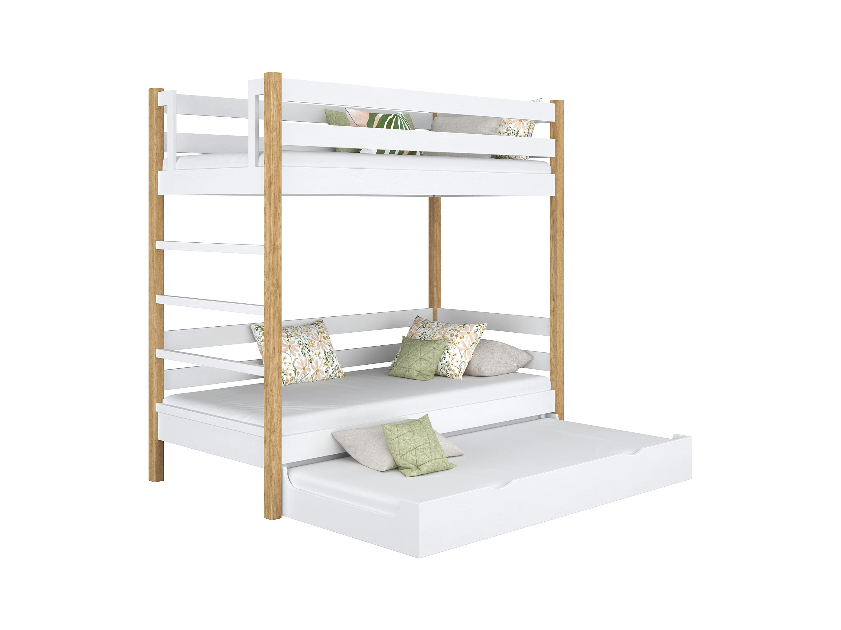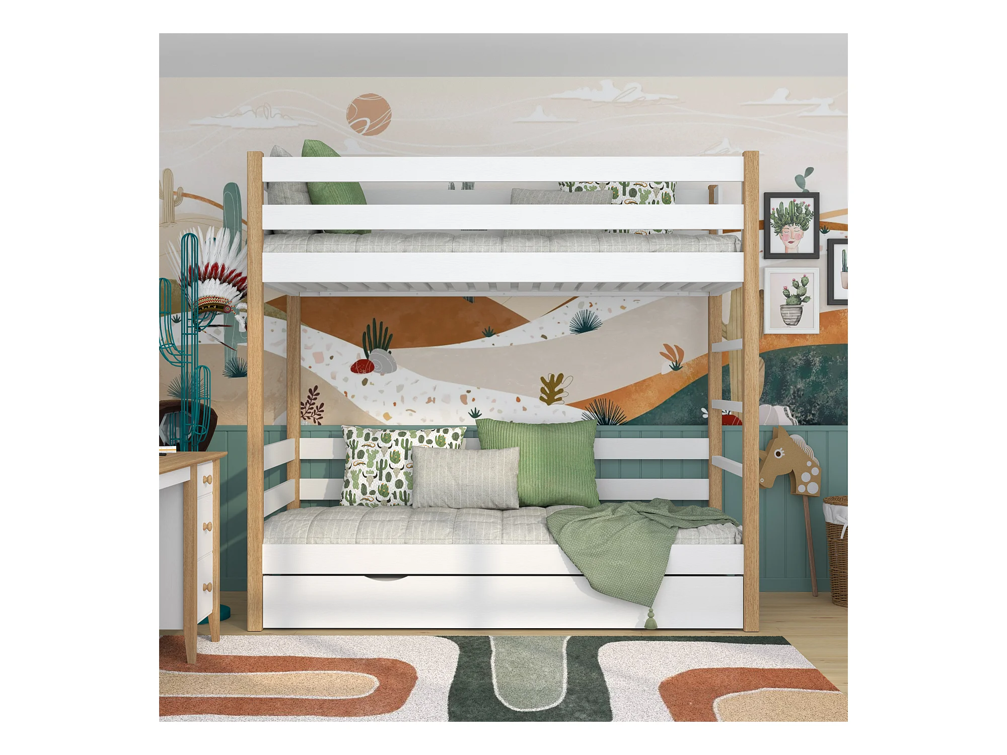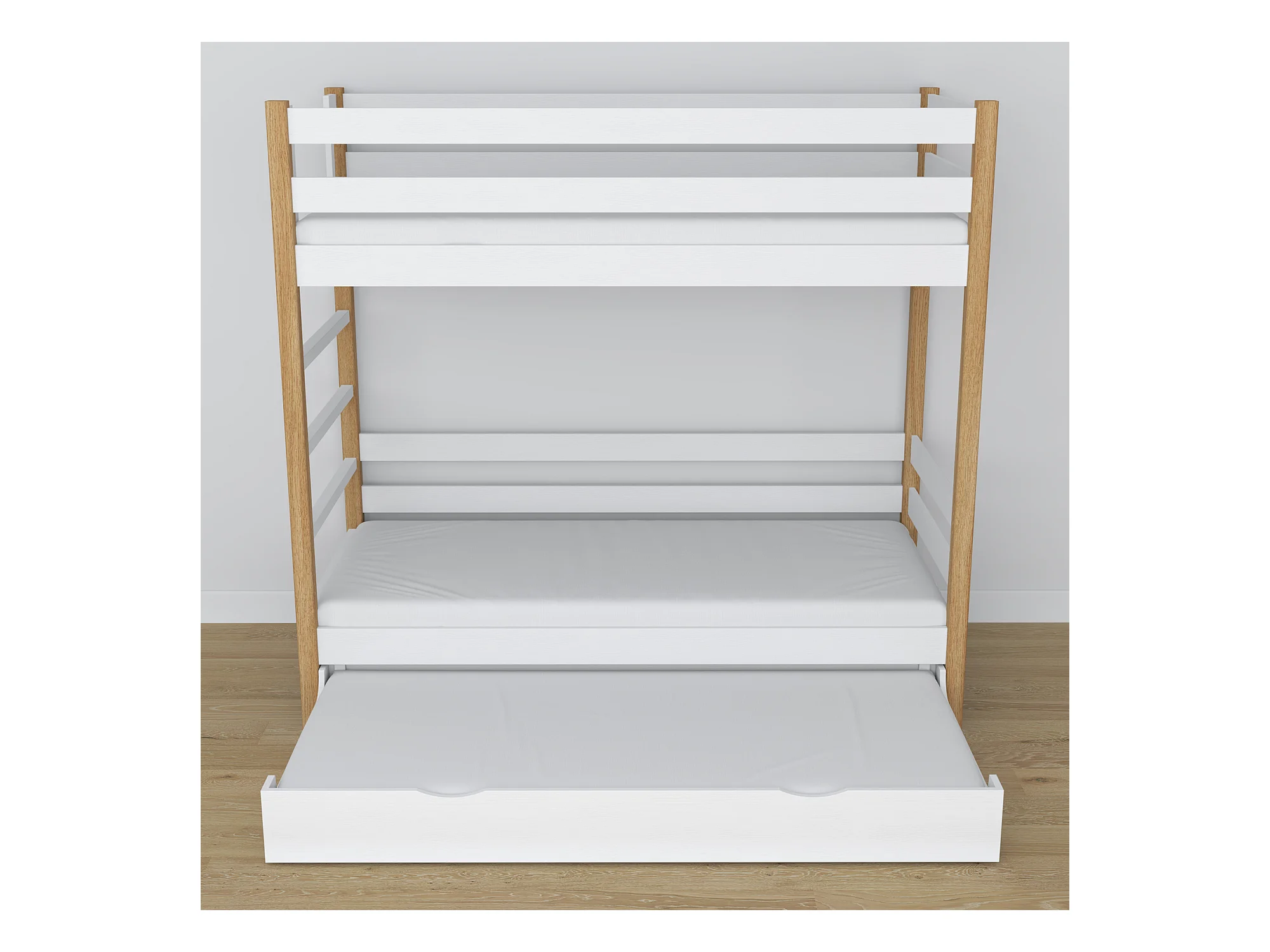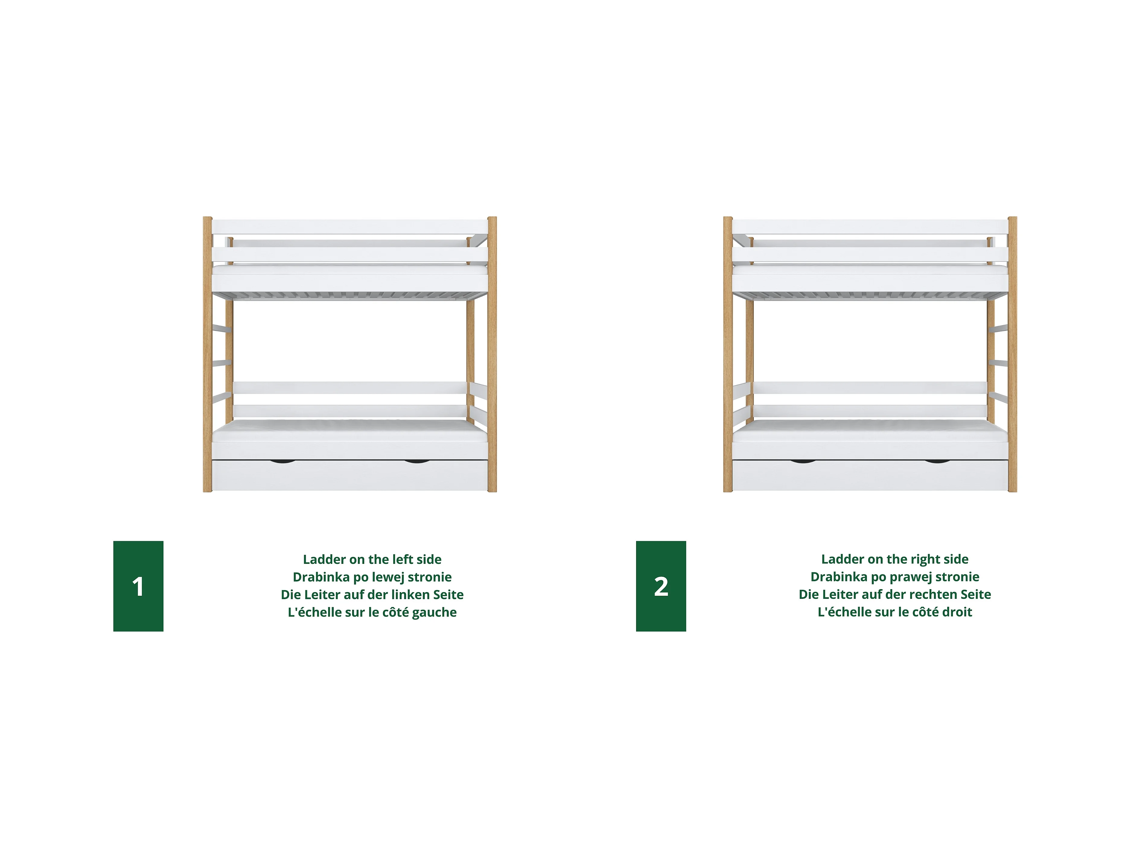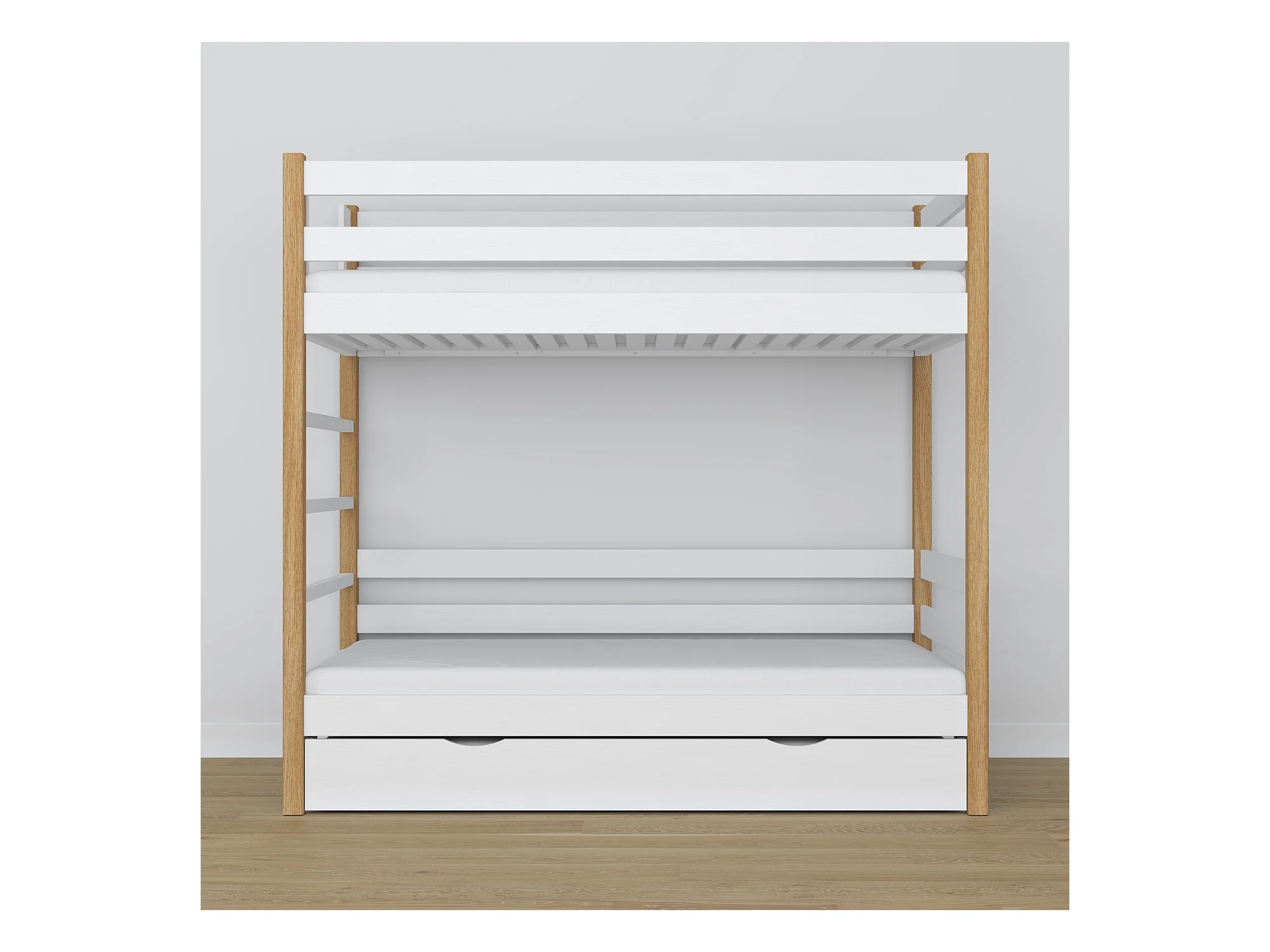 Lit superposé en bois - avec tiroir pour matelas N03 Blanc / Chêne Naturel 100x200