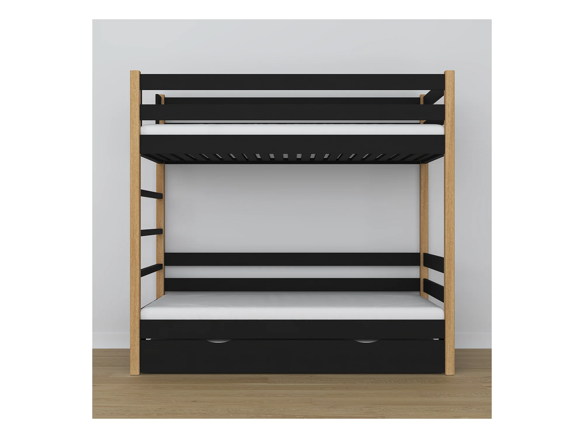 Lit superposé en bois - avec tiroir pour matelas N03 Noir / Chêne Naturel 120x190