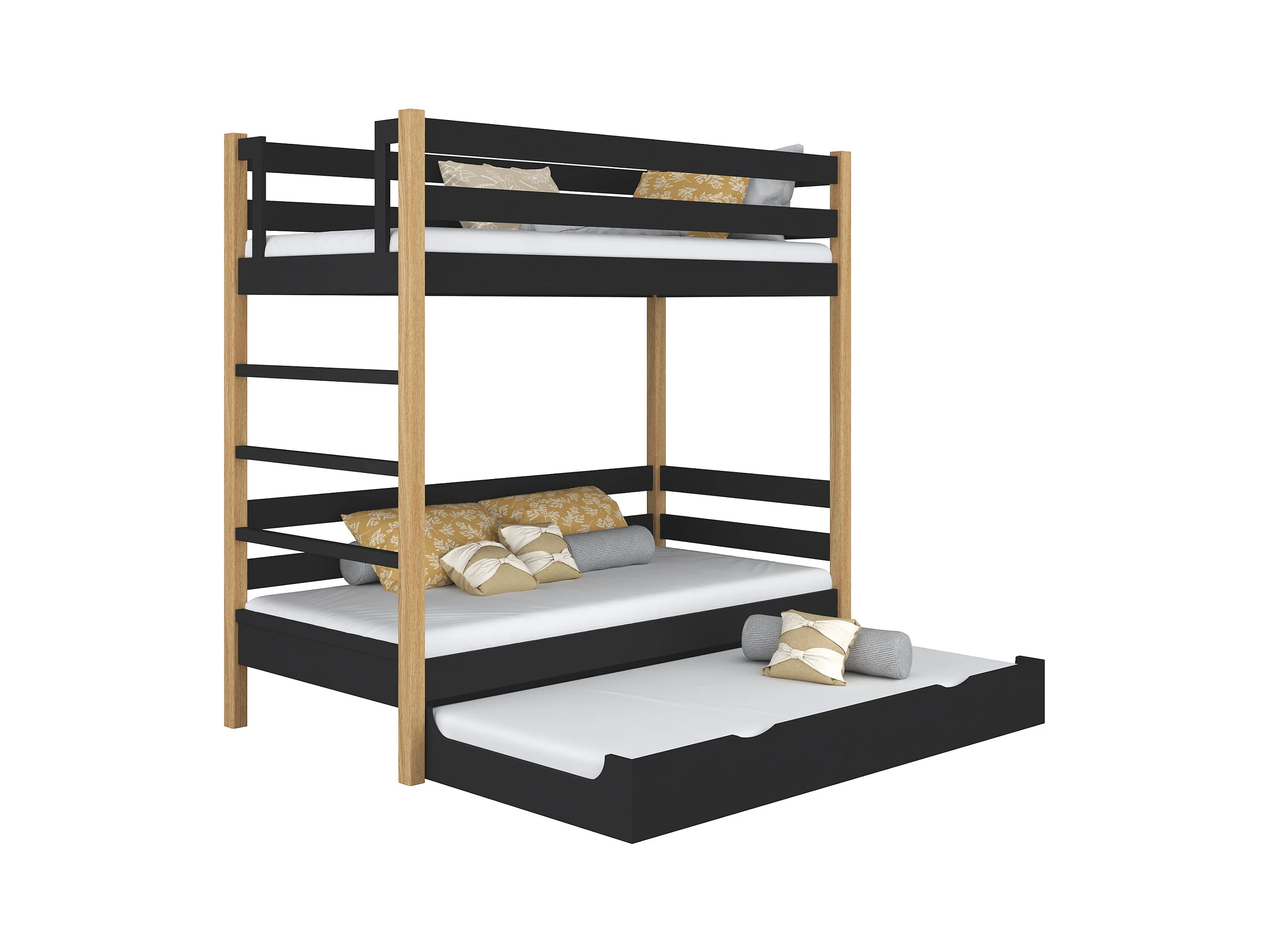 Lit superposé en bois - avec tiroir pour matelas N03 Noir / Chêne Naturel 80x190