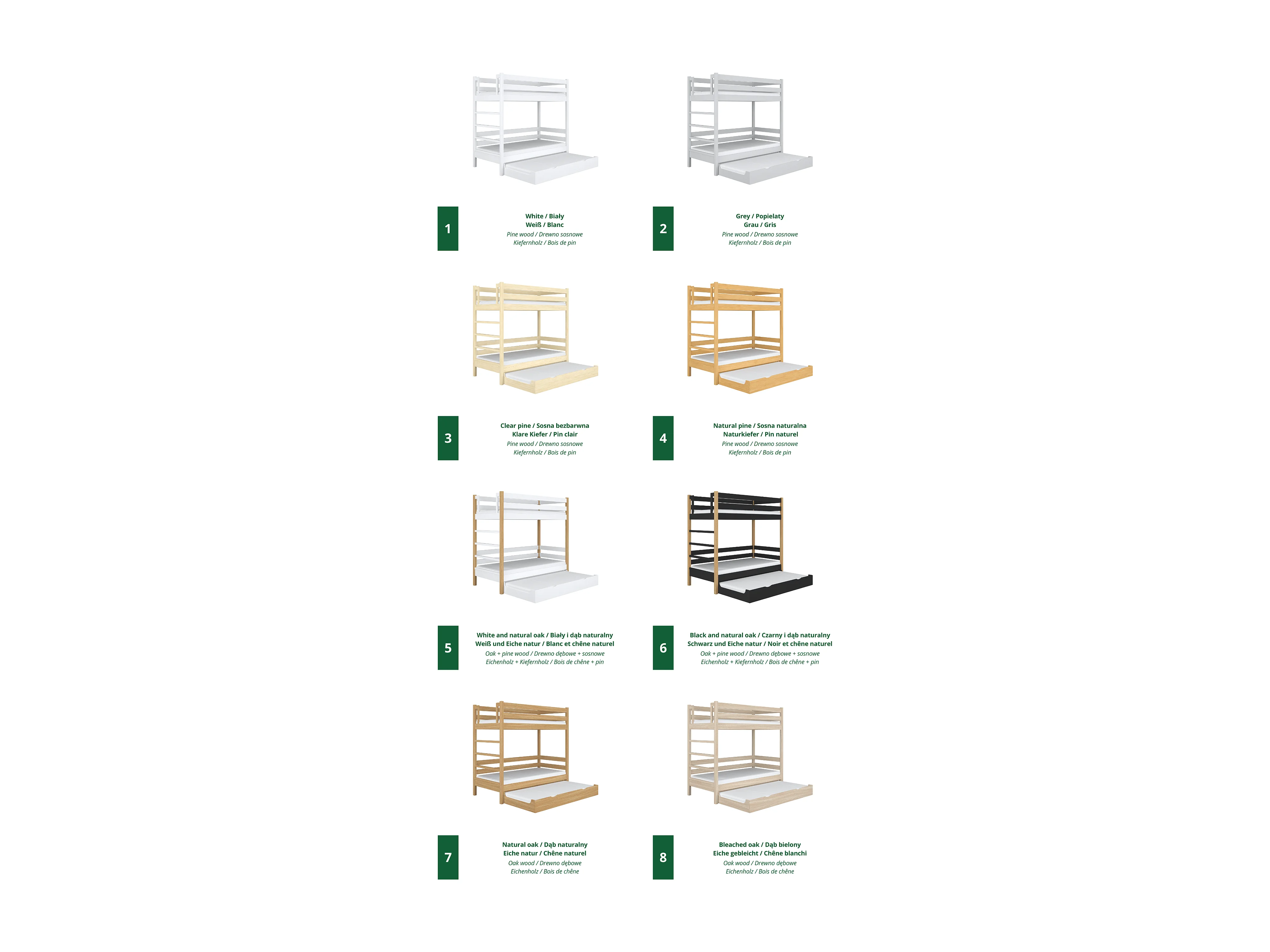 Lit superposé en bois - avec tiroir pour matelas N03 Pin Clair 90x190