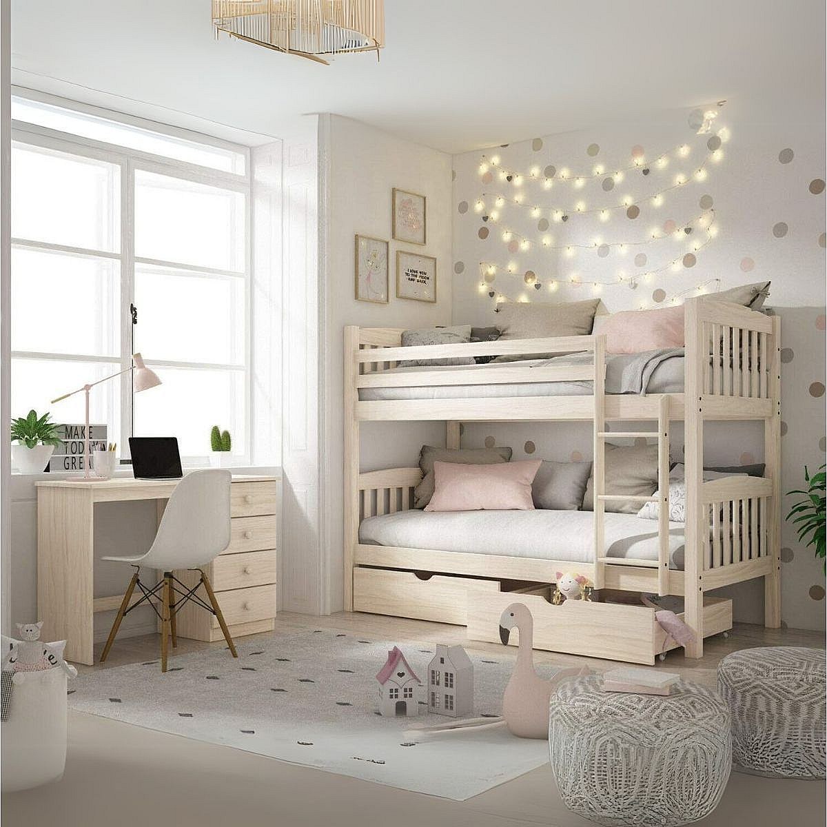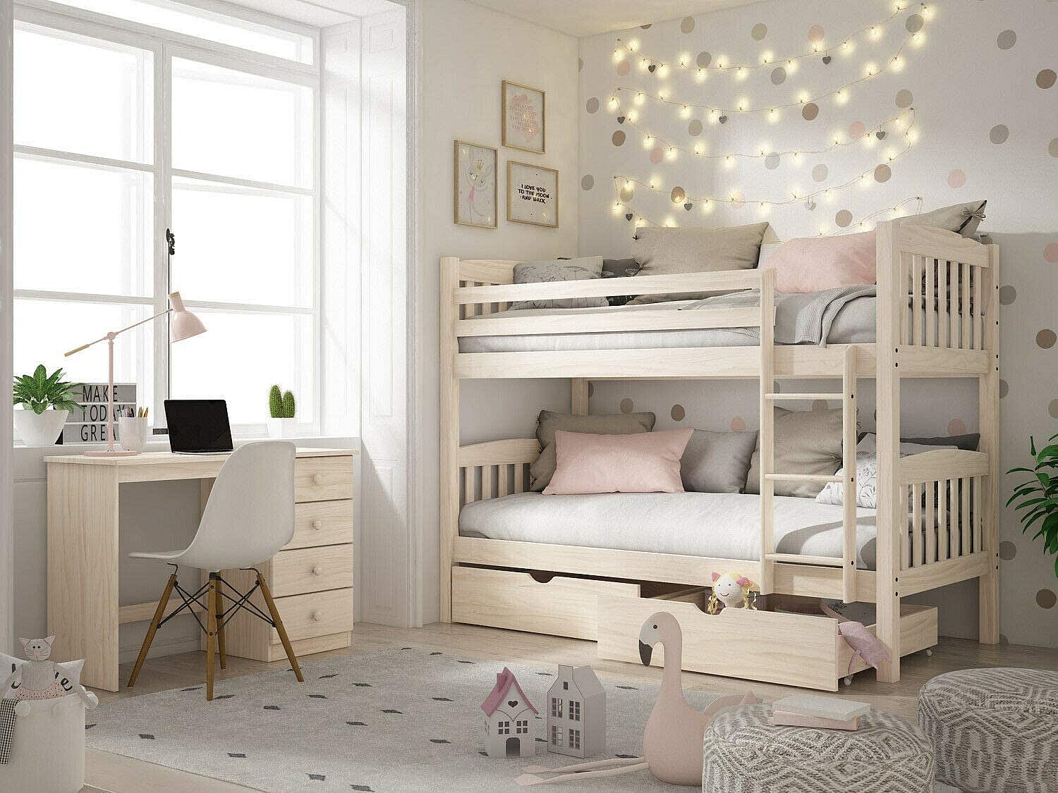 Lit superposé en bois de pin 156x205x100 cm White Wash - Venprodin
